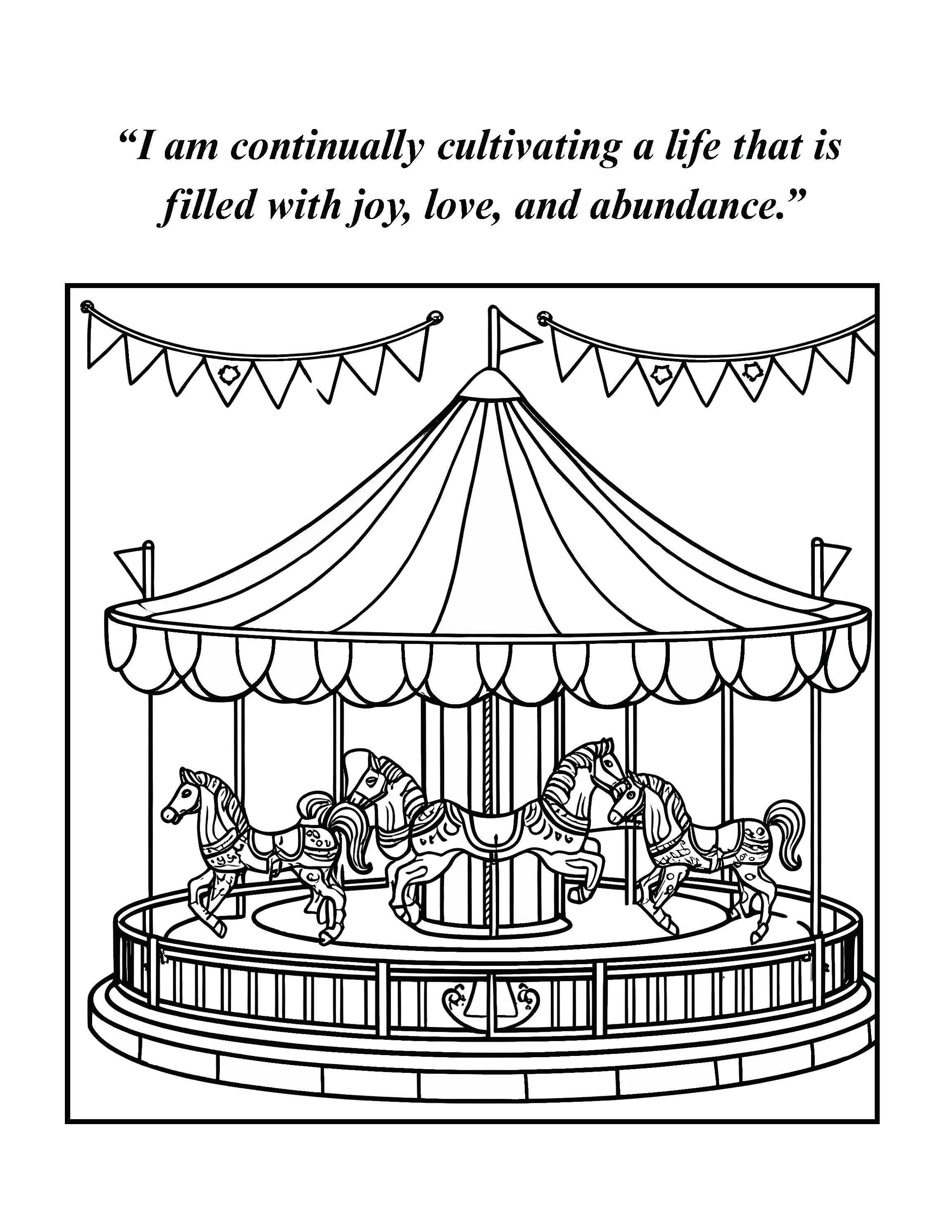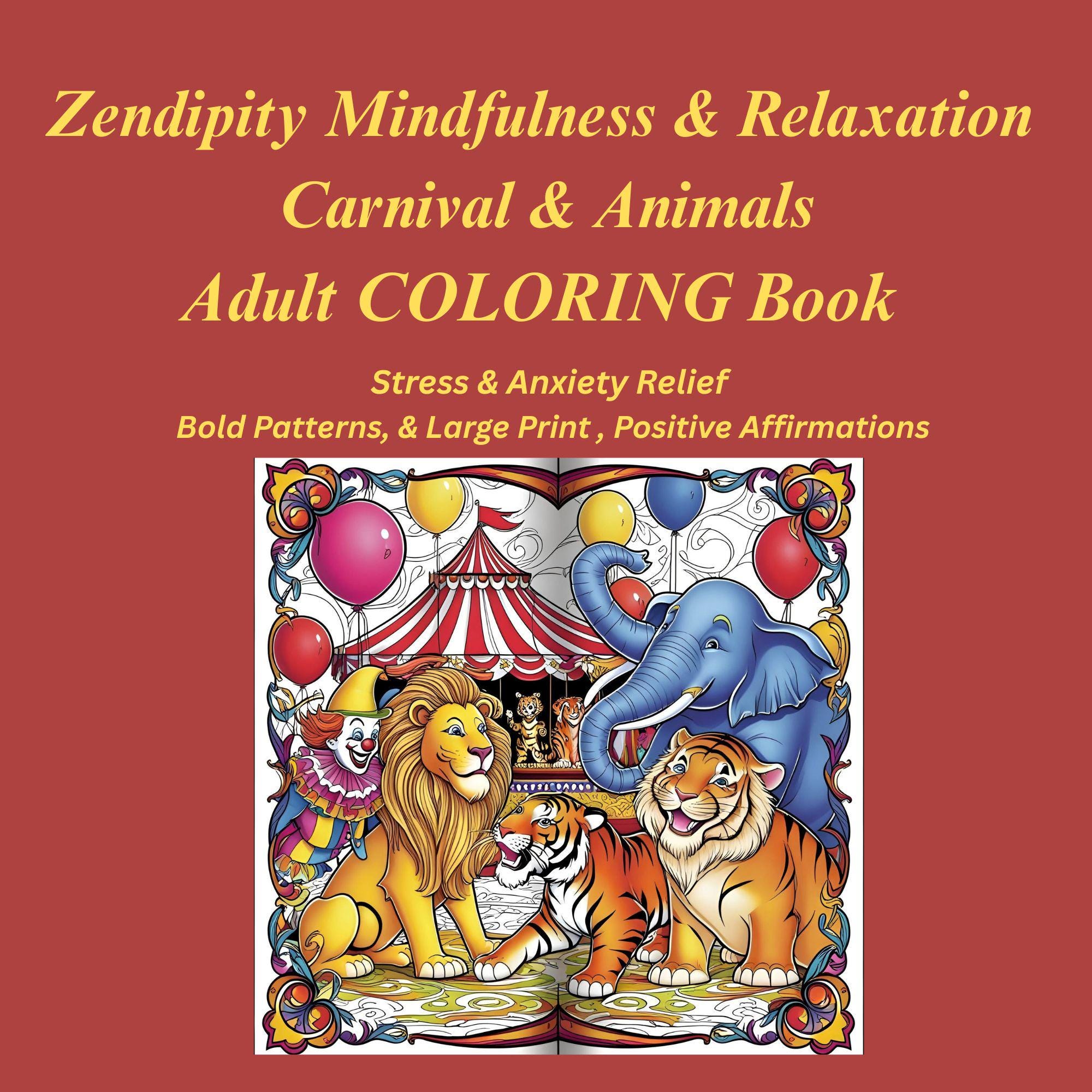 Indulge in the whimsical world of Zendipity Carnival & Animals adult coloring book! Let your creativity soar as you bring to life majestic animals, whimsical circus scenes, colorful clowns, trains, magic shows, lollipops, and so much more with Mindfulness coloring. Get your copy now and escape into a serene realm of color and imagination. It's art therapy for adults.
