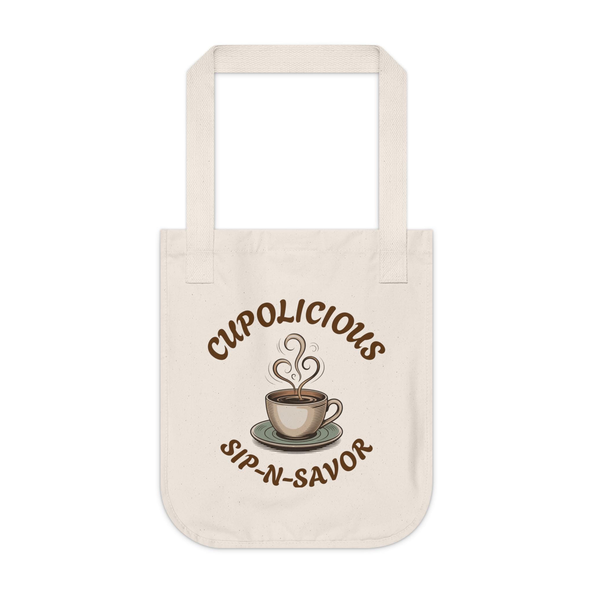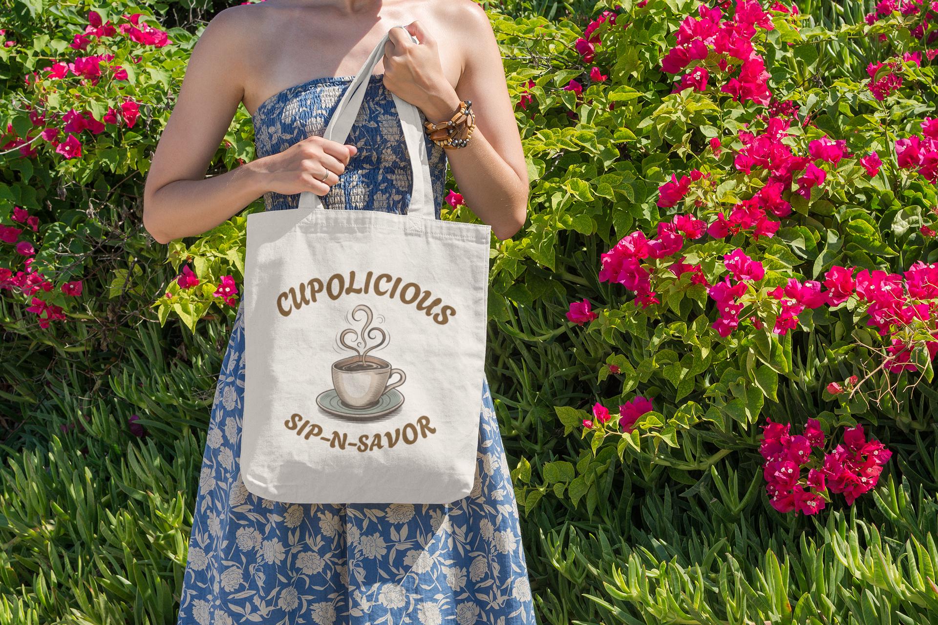 Sustainable and stylish Canvas Tote Bag with a Tea or Coffee Lover's Cupolicious theme. Perfect for eco-conscious individuals who love to carry their essentials in a fashionable and environmentally friendly way. Ideal for everyday use, shopping trips, farmers' market visits, and as a thoughtful gift for holidays and birthdays.