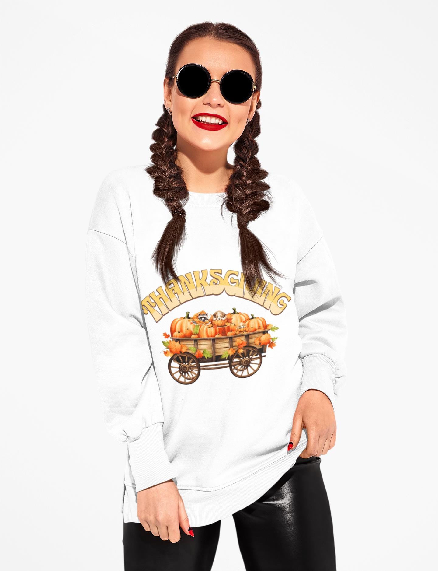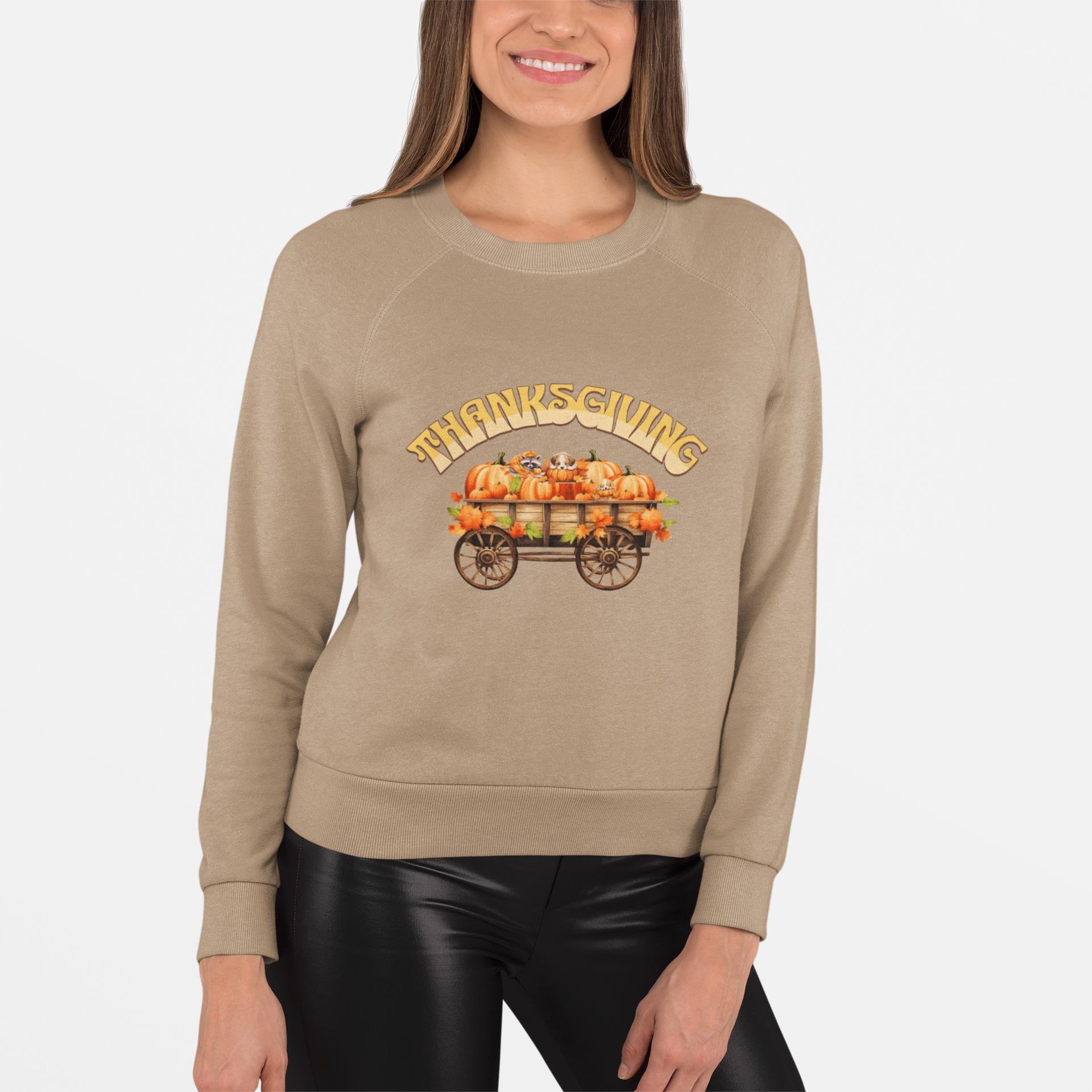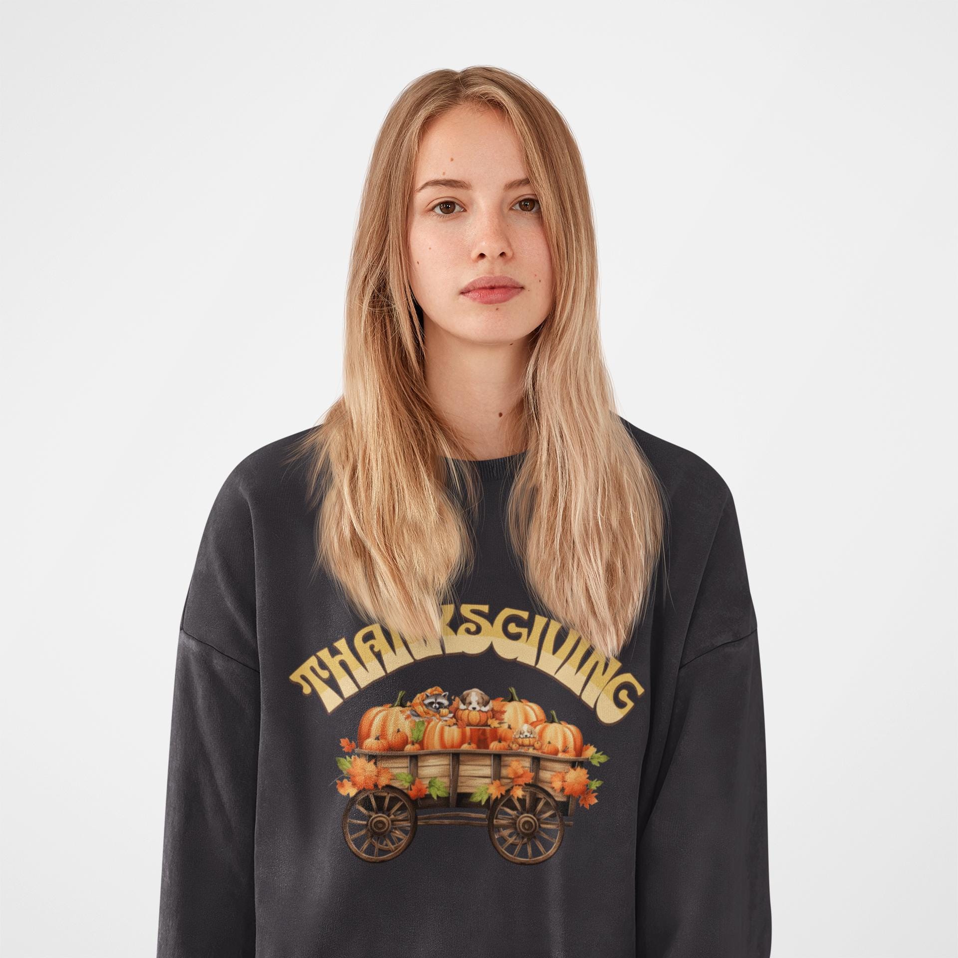 Thanksgiving Pumpkin Wagon Sweatshirt, Puppies and Raccoon, Fall Harvest