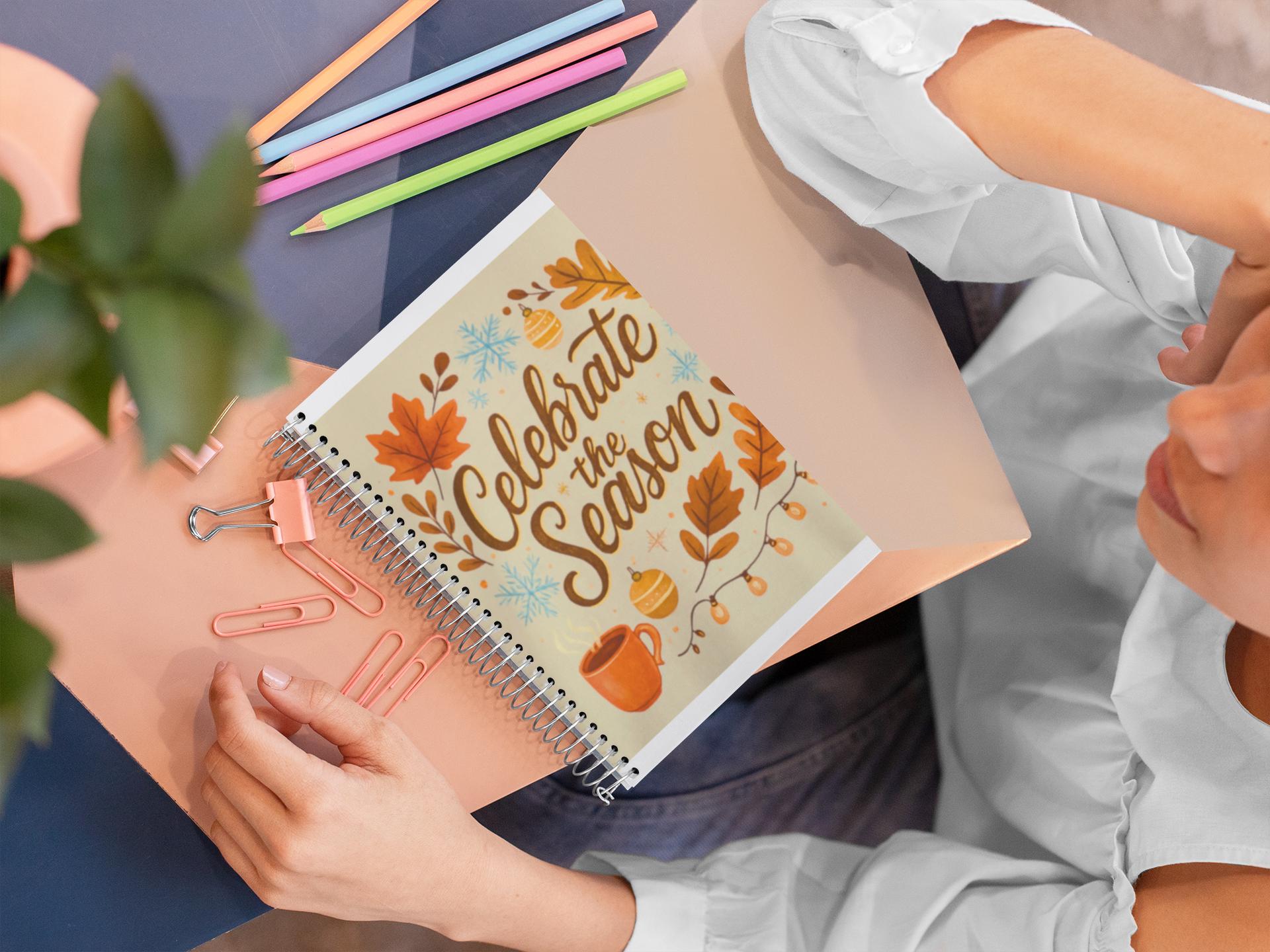 Autumn Theme Spiral Notebook, Festive Holiday Planner, Lined Paper