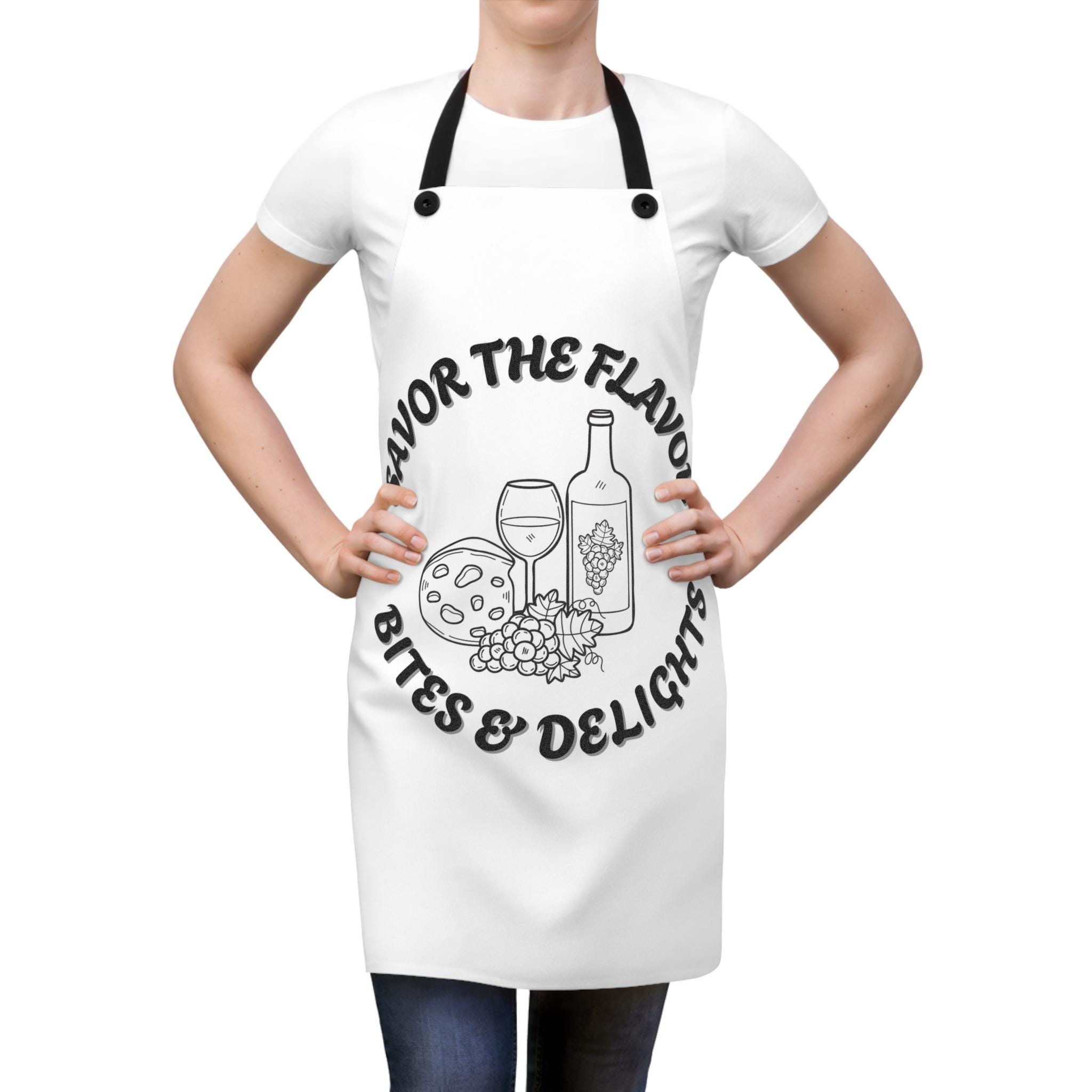 Savor the Flavor Bites & Delights Apron | Wine Cheese Kitchen, Bold Writing Deisign