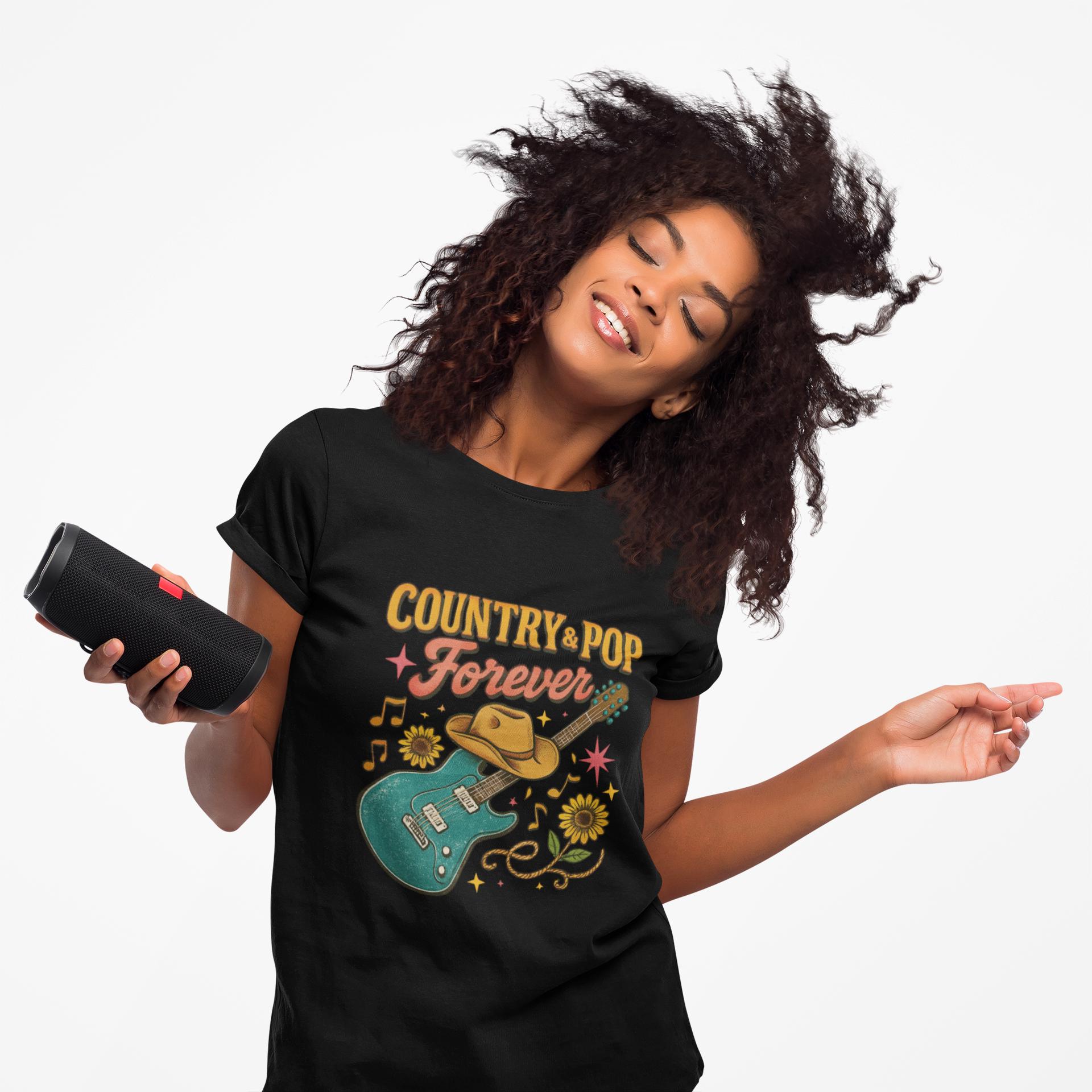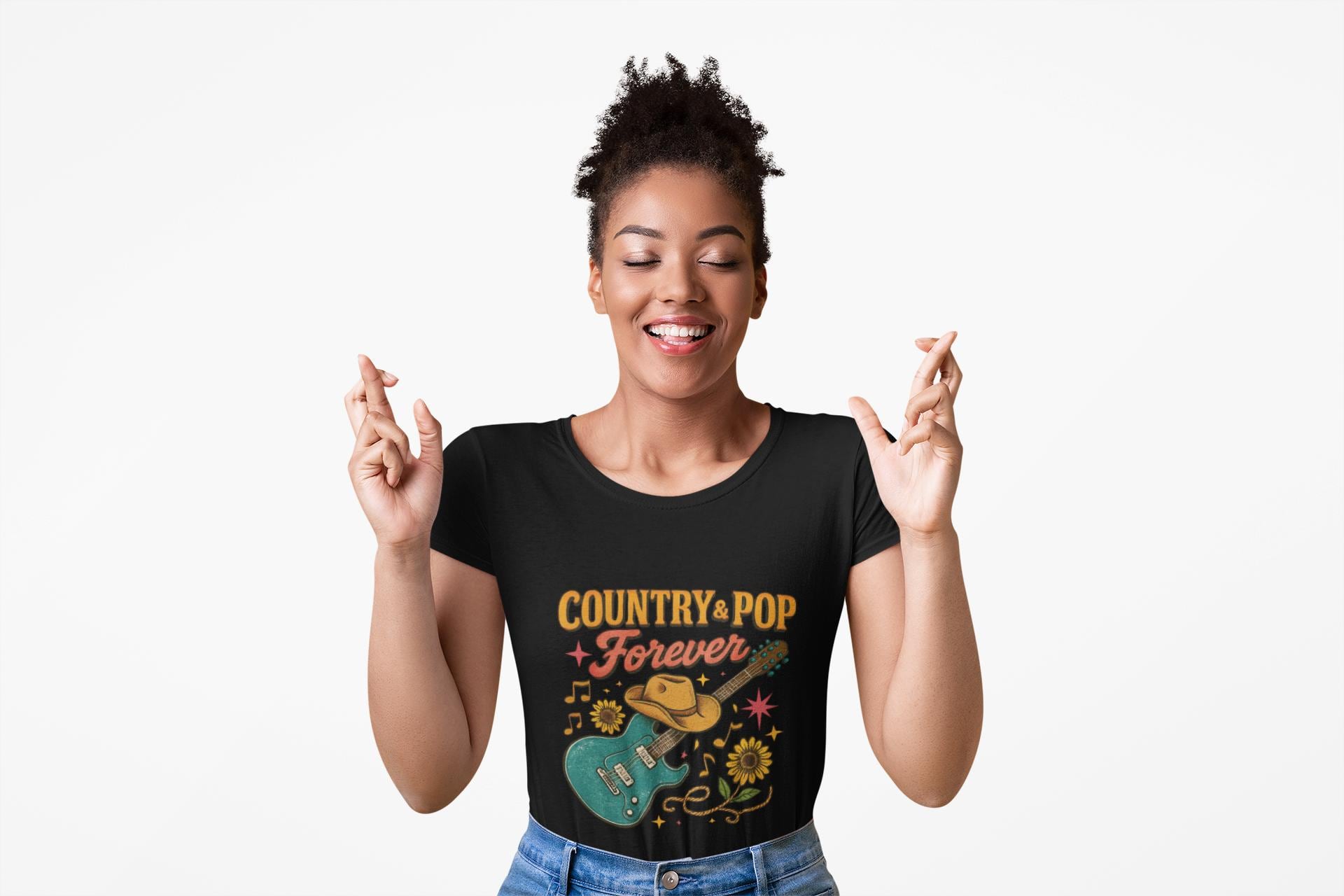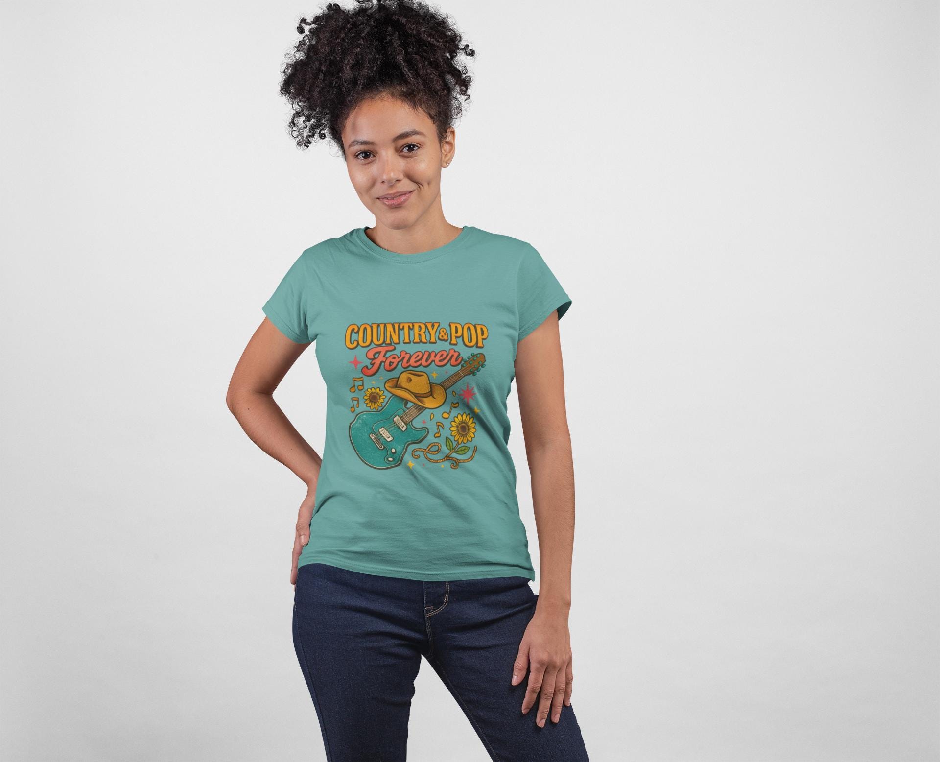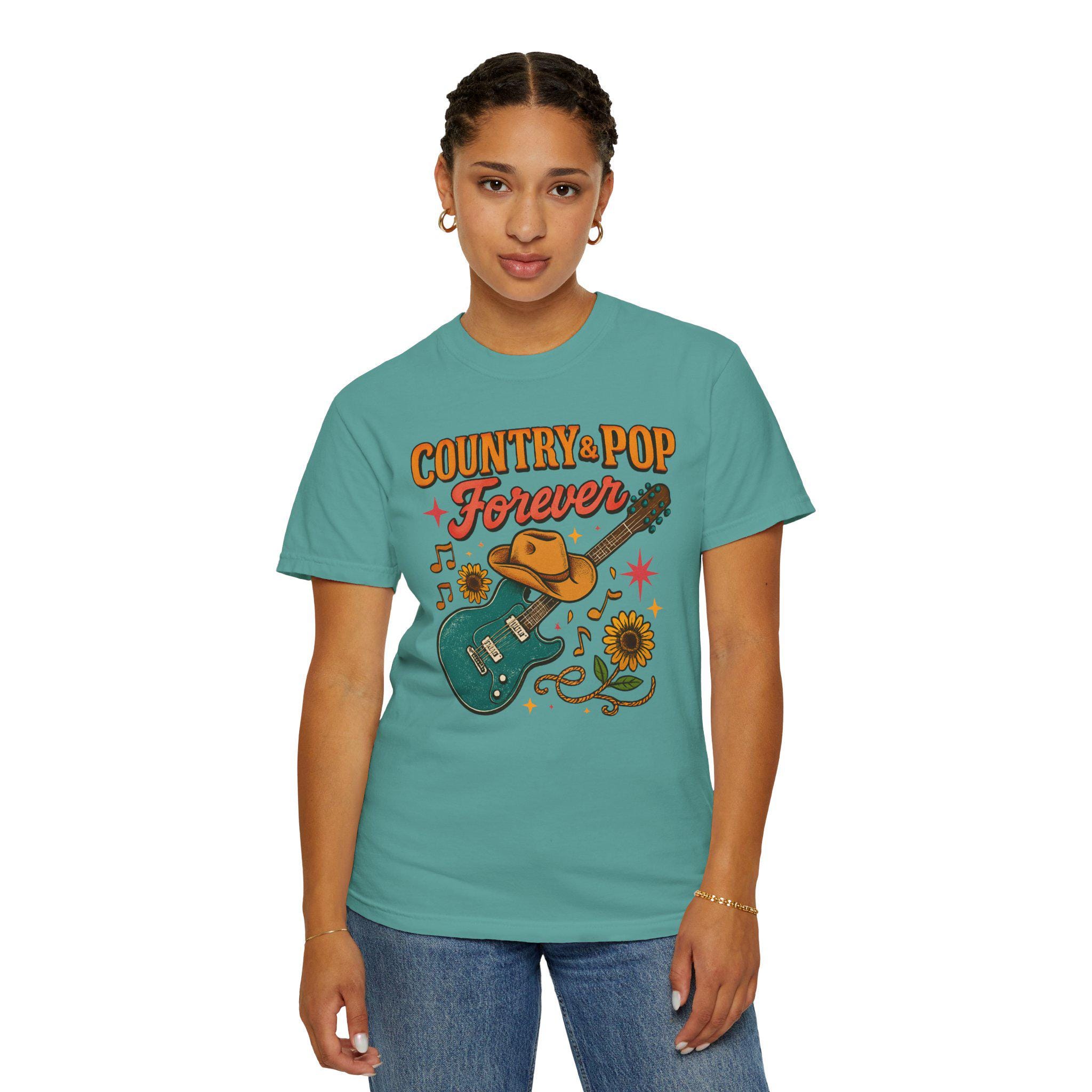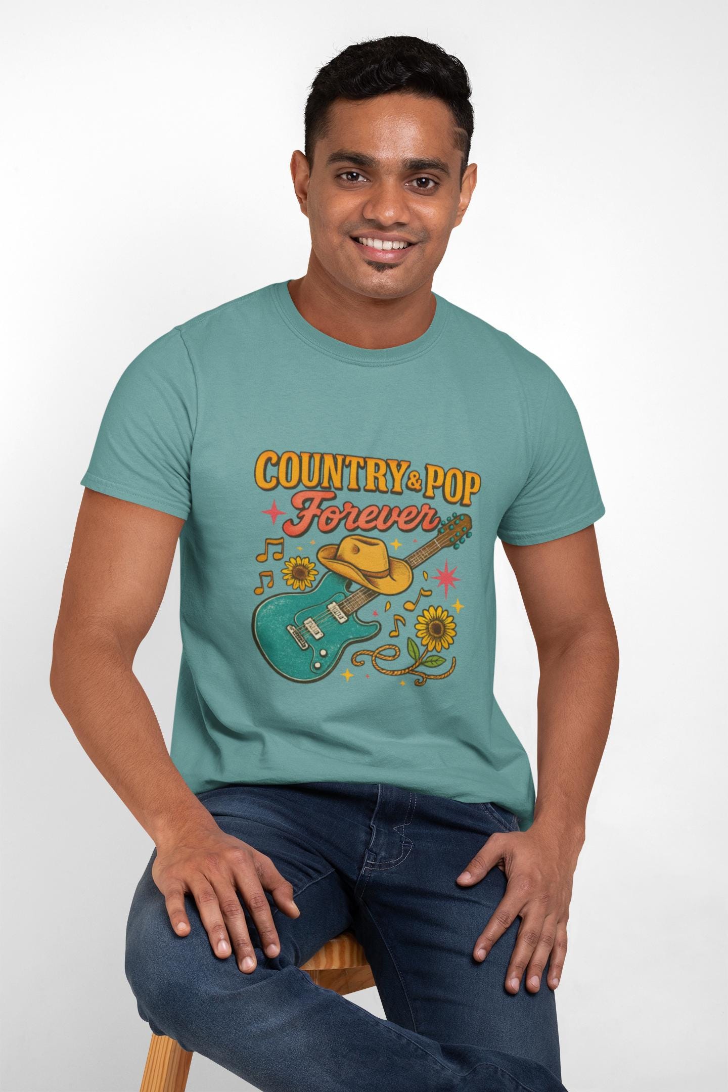 This lightweight-but-sturdy tee carries a retro country energy—worn-in sun-bleached color, a vintage guitar silhouette, a tilted cowboy hat, and a bright sunflower that feels like a roadside memory. It sits loose and easy on the body, the garment-dyed fabric softening with every wash so the print looks lived-in, not new. Slip it on for dusk drives with the windows down, local shows under string lights, or mornings wandering a farmers’ market. The design reads like a small story: music, wide skies, and the patient optimism of late summer. For people who collect nights by the bonfire and playlists that smell like hay and gasoline, this tee slides into that rotation and becomes one of those reliably comfortable pieces you reach for first.