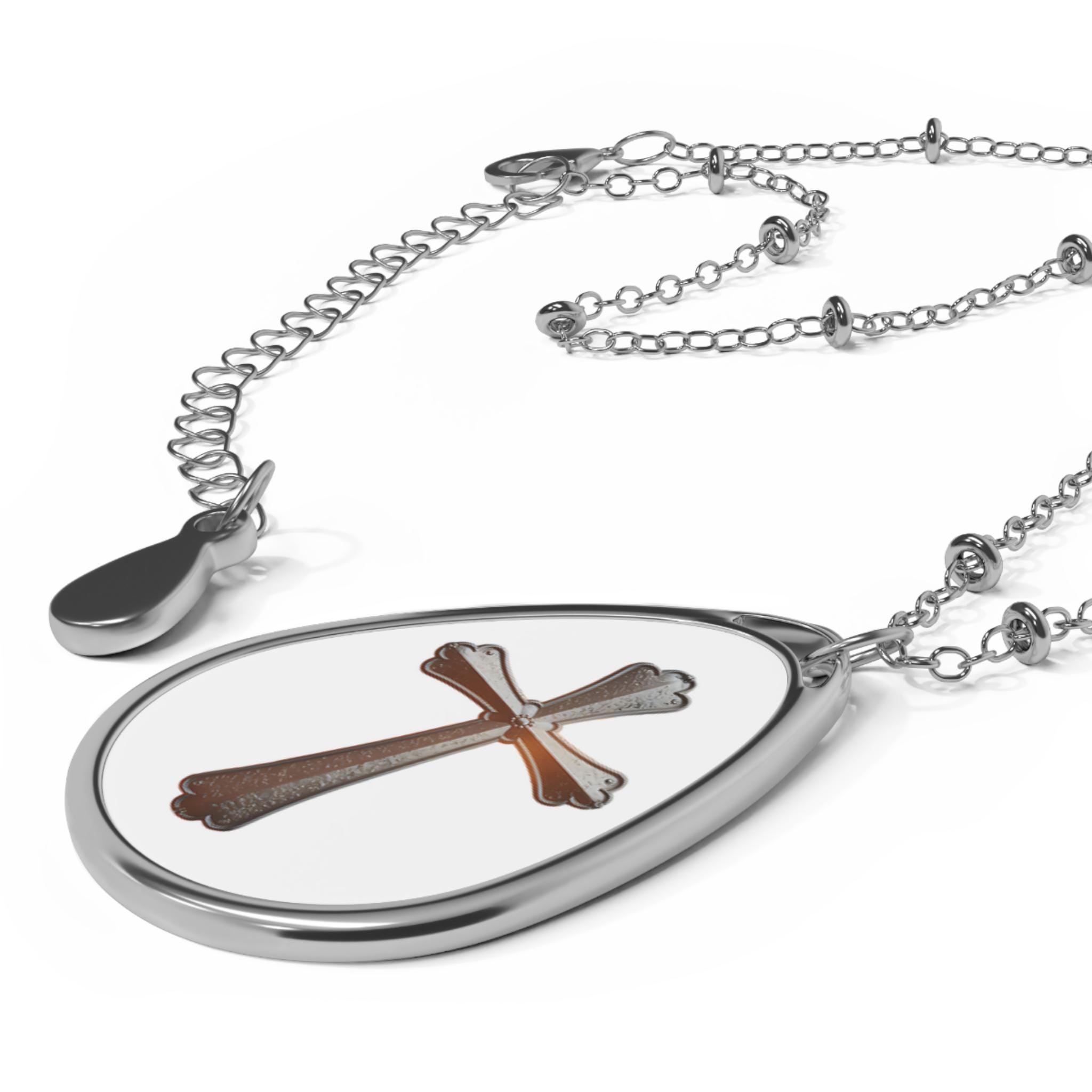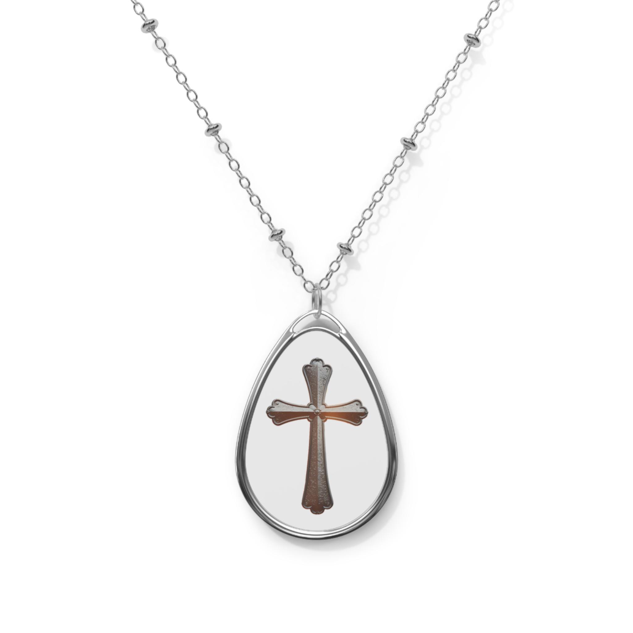 Cross Pendant Oval Necklace | Religious Teardrop Pendant