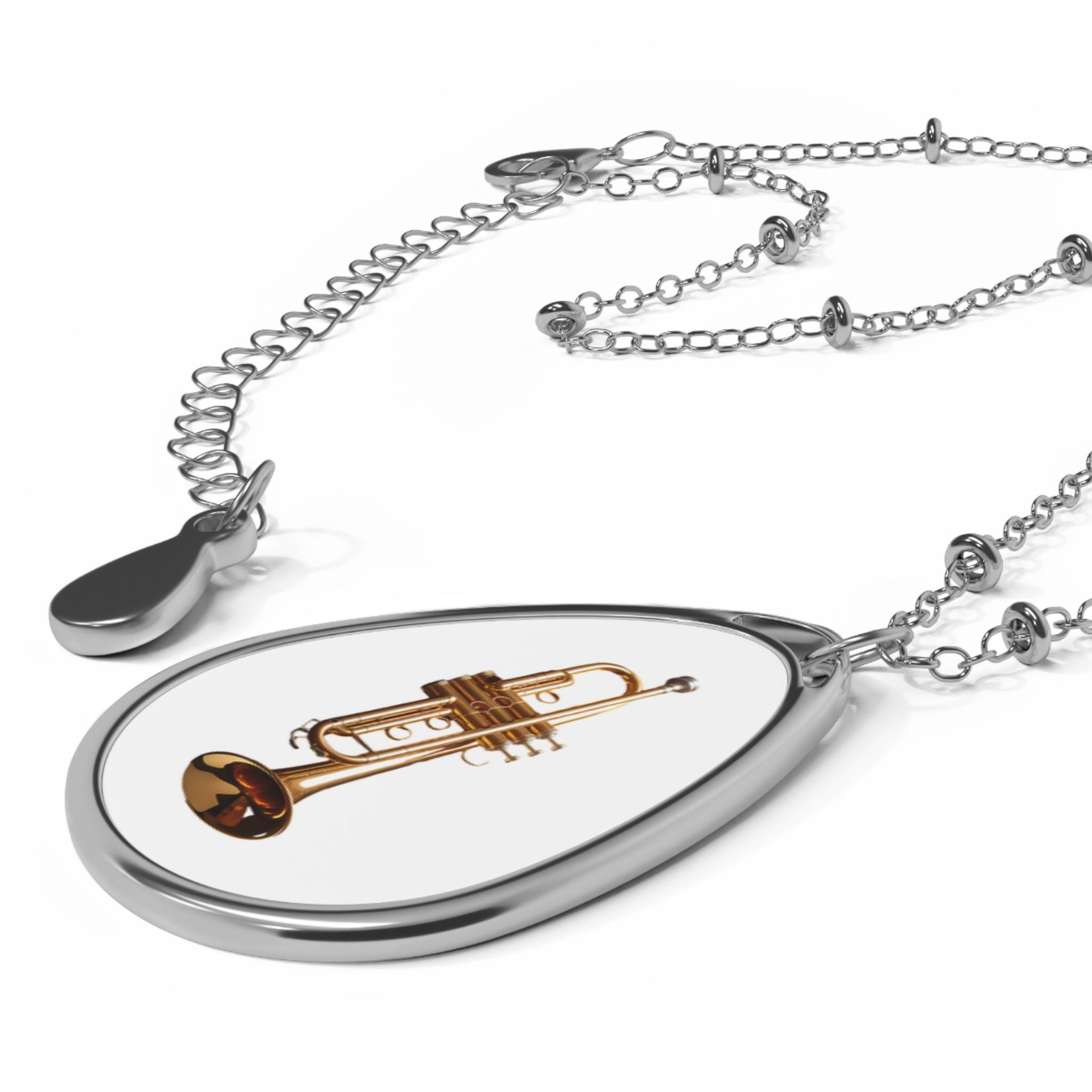 This Gold Trumpet Oval Necklace is a stunning music-inspired pendant that brings a touch of elegance and sophistication to any outfit. Perfect for musicians, music lovers, and anyone who appreciates unique accessories. Ideal for music concerts, recitals, music festivals, and everyday wear.
