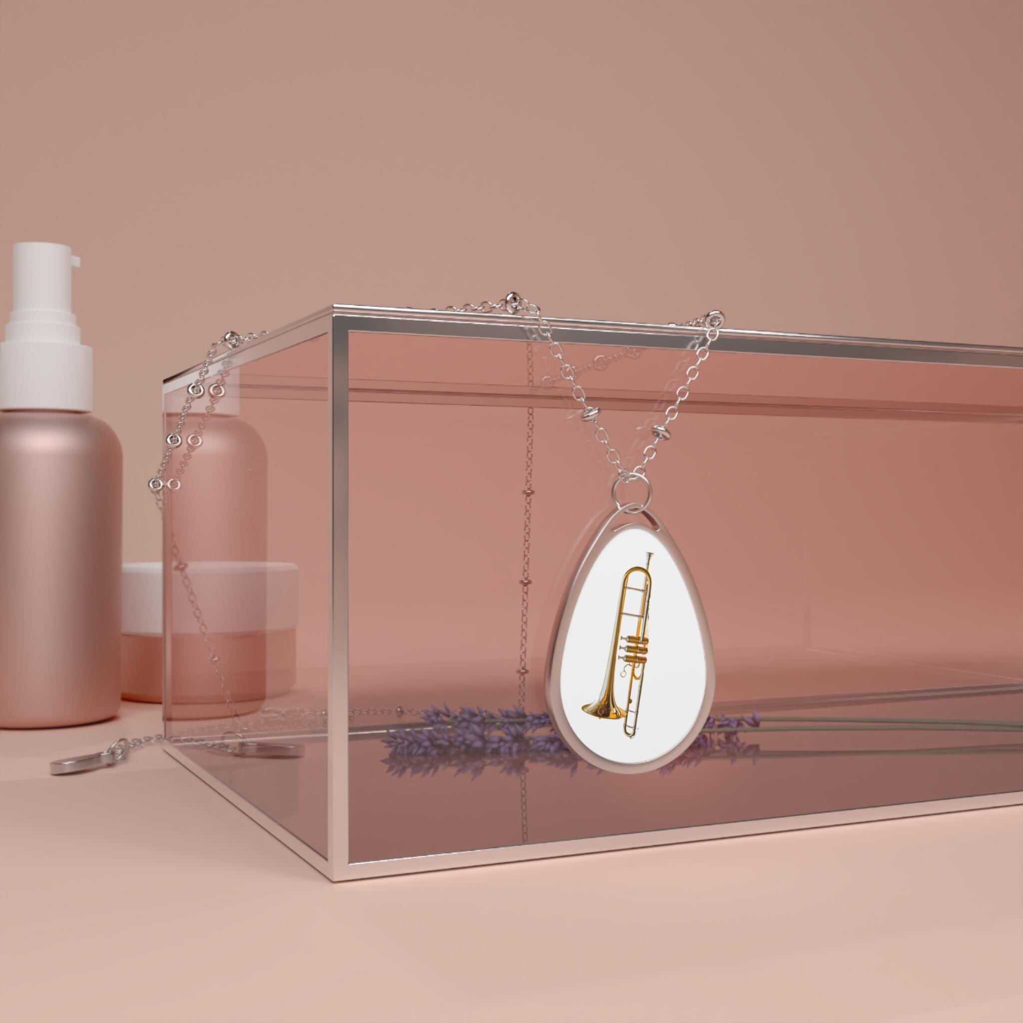 Trombone Illustration Oval Necklace | Music Instrument Pendant