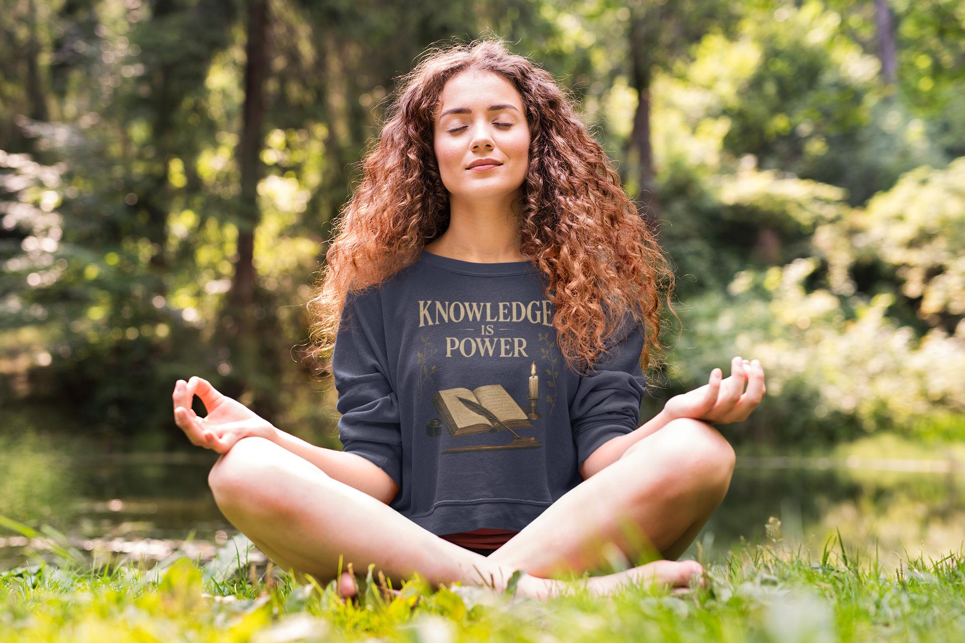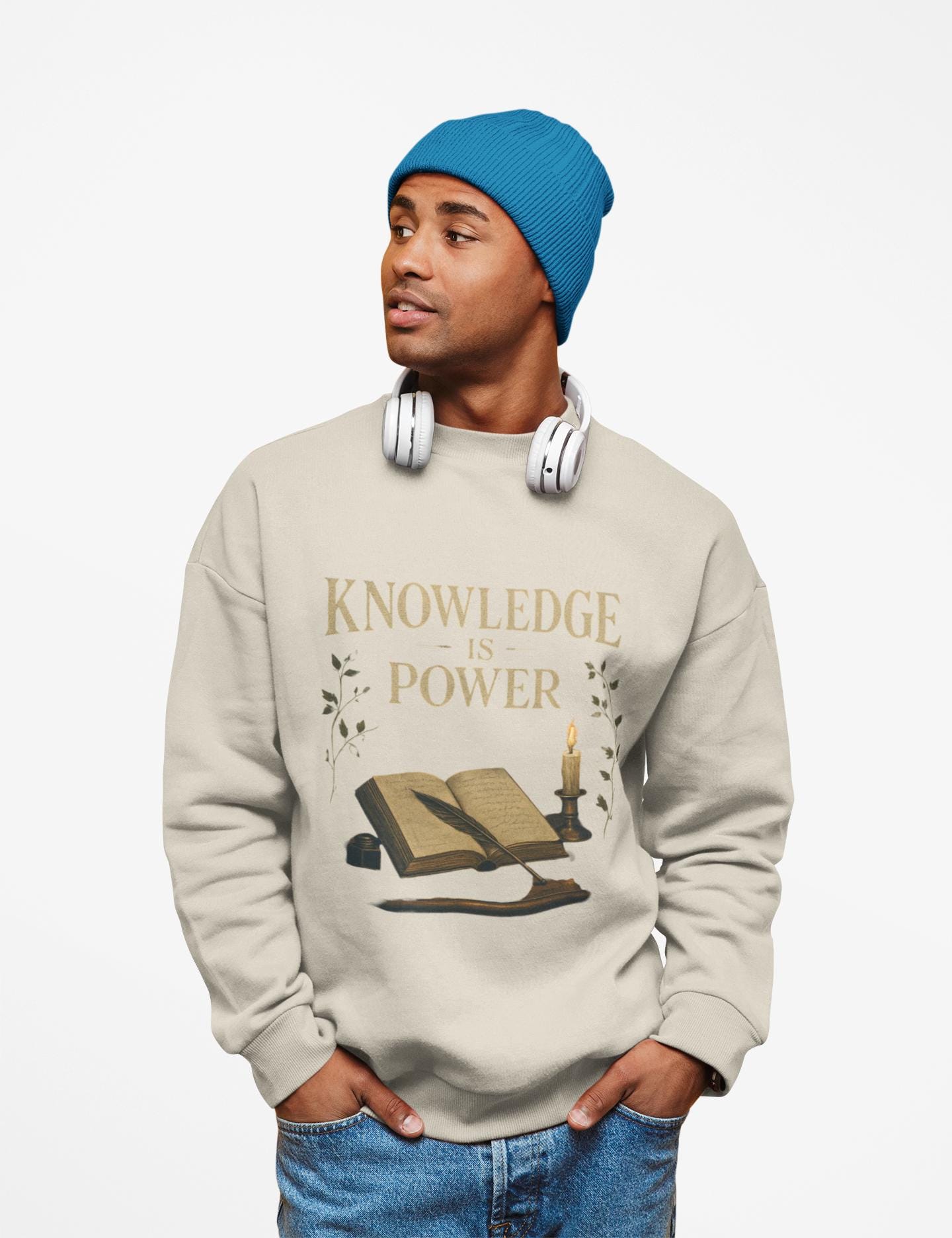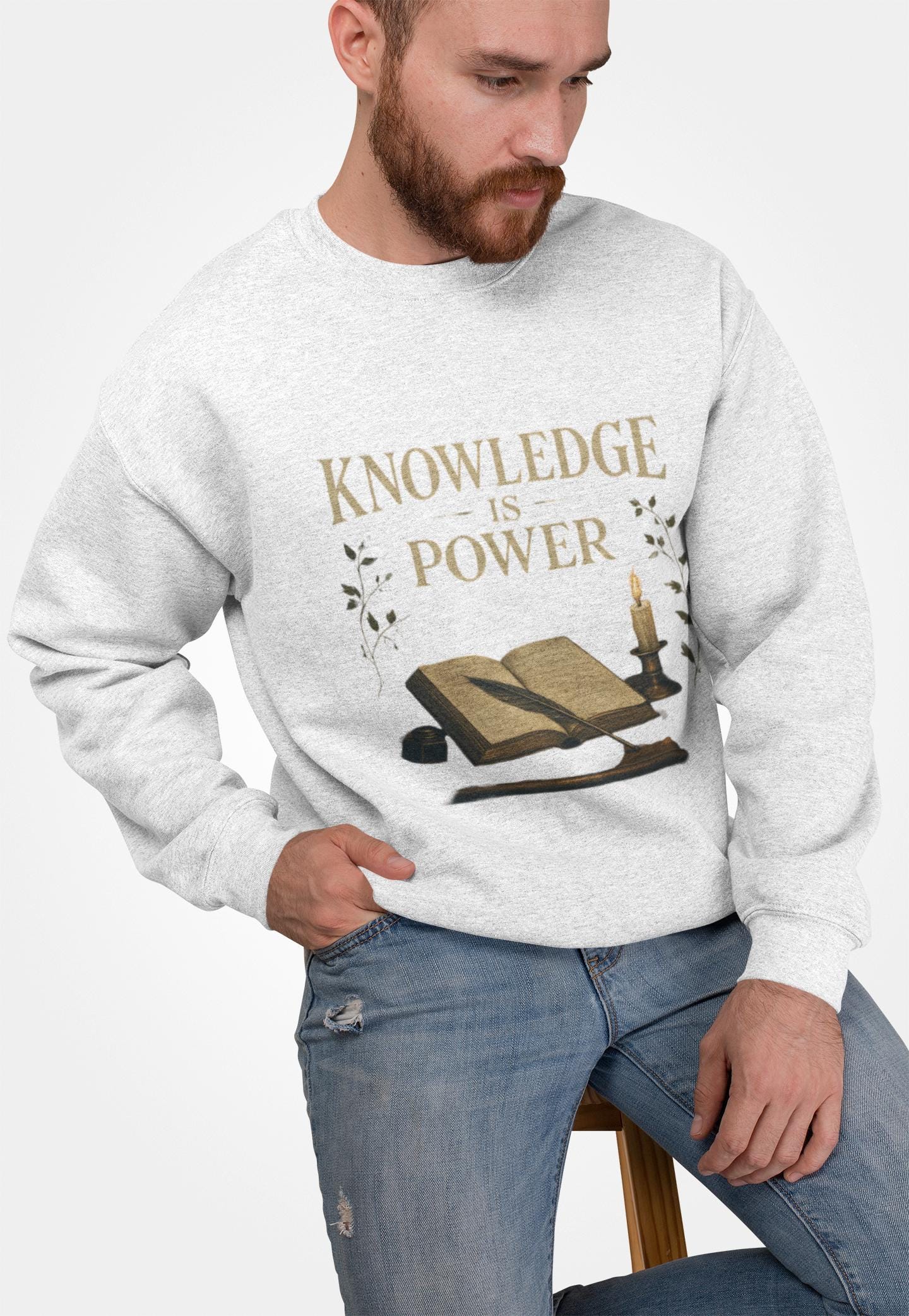 Soft, warm, and quietly confident — this crewneck wraps you in a calm that says you value thoughtfulness. Creamy off-white fabric and a muted gold-and-brown design show an open book, candlelight, and the words “KNOWLEDGE IS POWER.” Wear it while curled up with late-night reading, grading papers, or walking to a small town cafe. The classic fit and medium-heavy 50/50 cotton-poly blend keep the shape while the ribbed collar and double-needle stitching stand up to repeated wear. It’s for people who prefer quiet strength — scholars, teachers, students, and lifelong learners who want clothing that reflects an inner life without shouting. Subtle enough for daily wear, it carries an autumnal, study-night mood whenever you put it on.