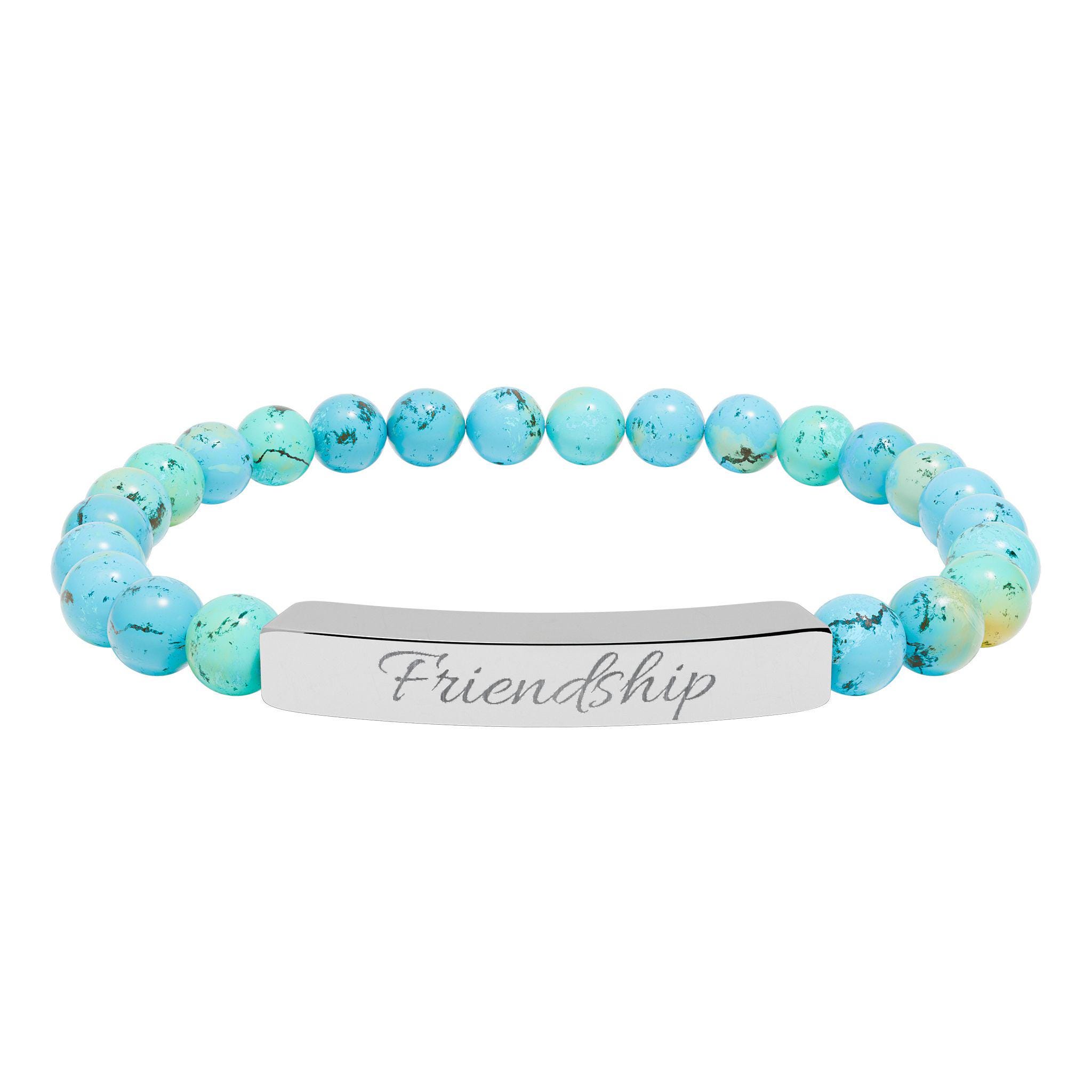 Bead Bracelet, Engraved Friendship Natural Stone Stretch Bar Bracelet, Personalized Boho Jewelry