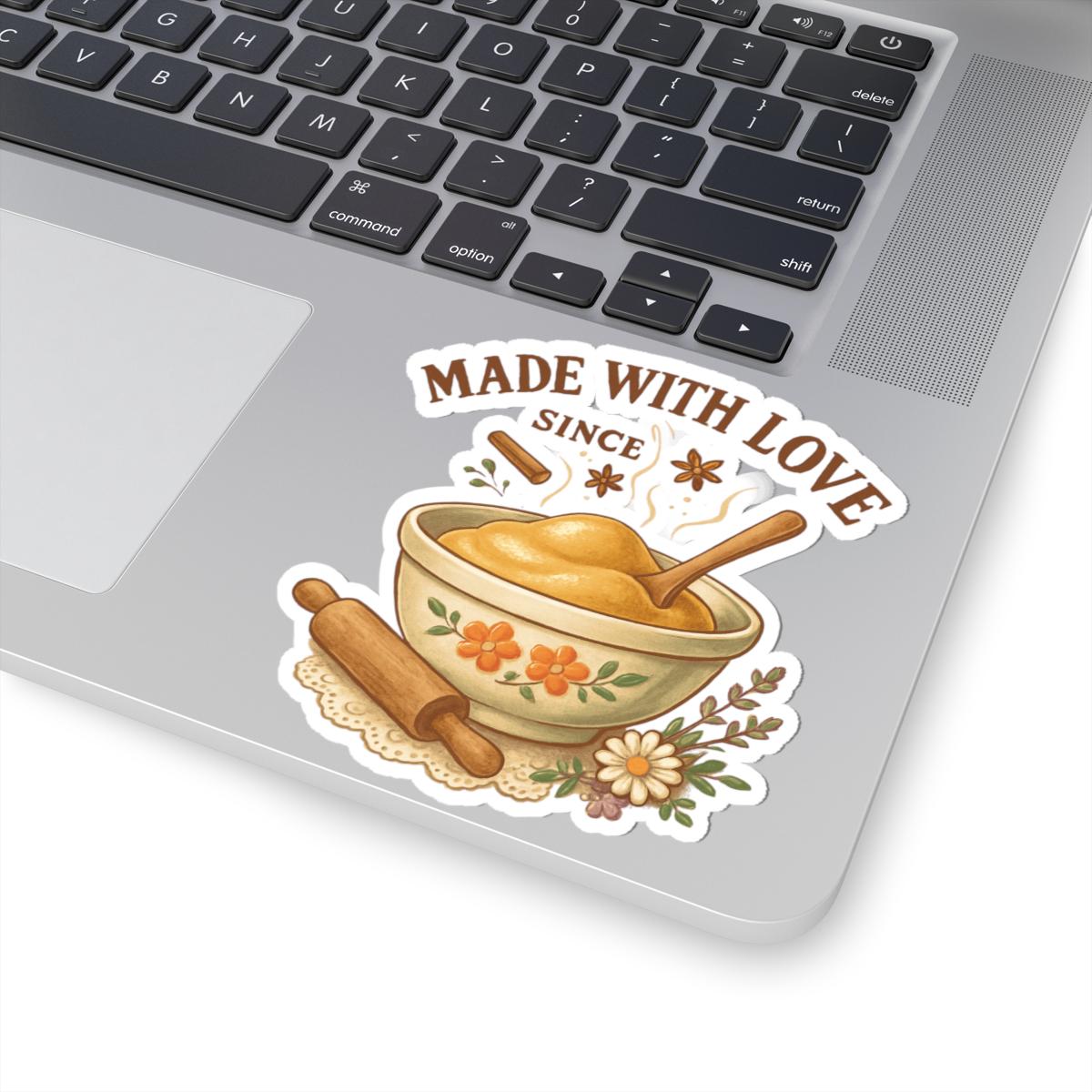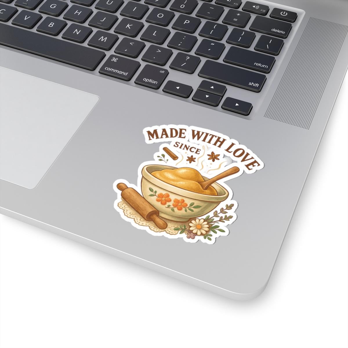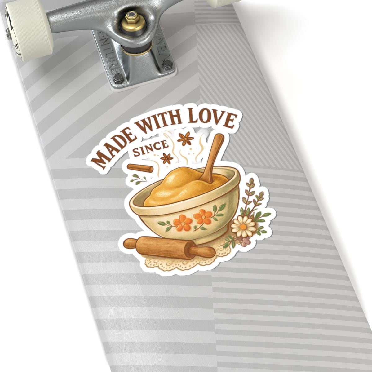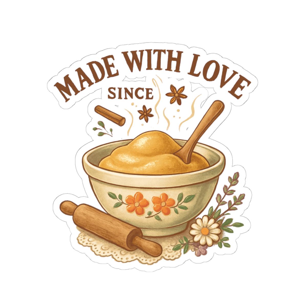 Made With Love bowl illustration Kiss-Cut Stickers | baking mortar design