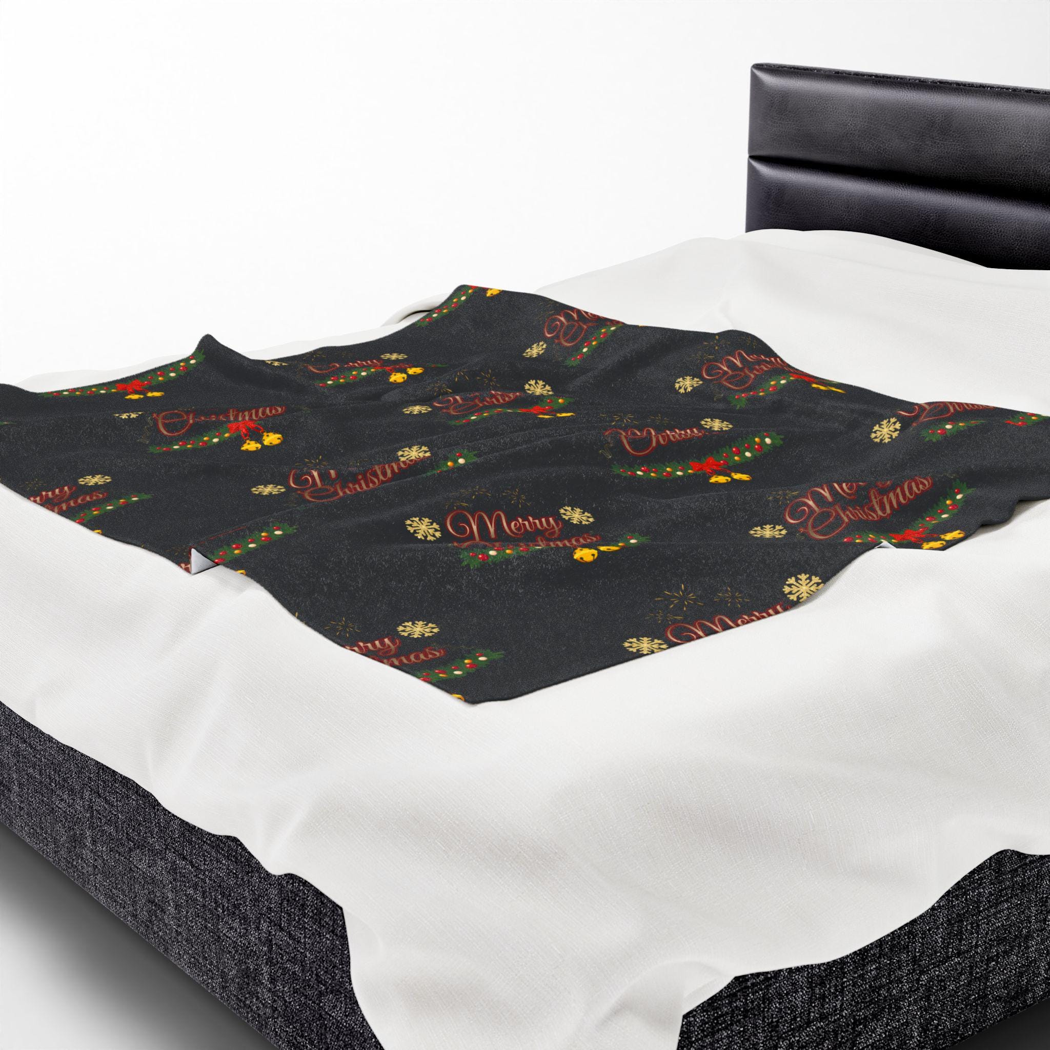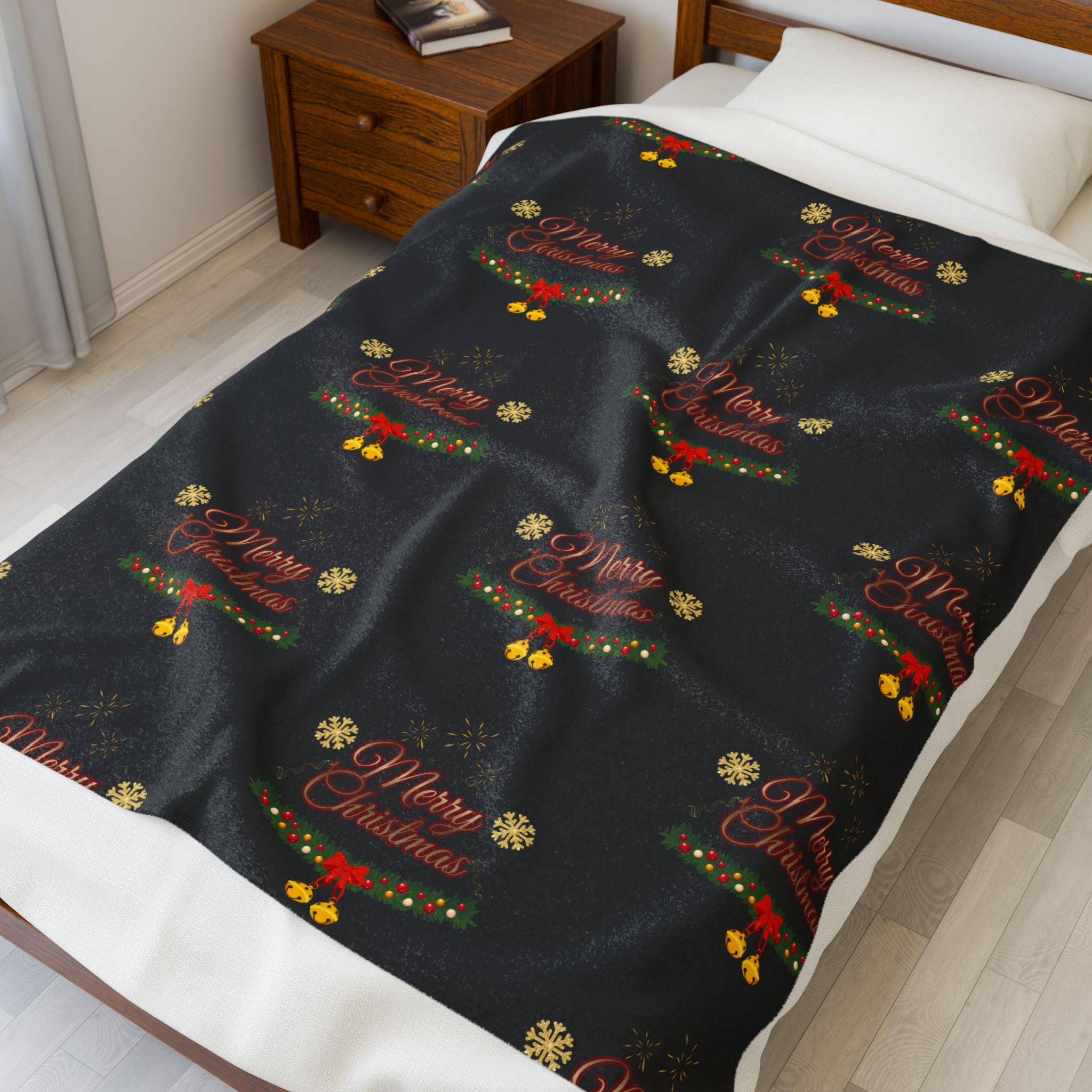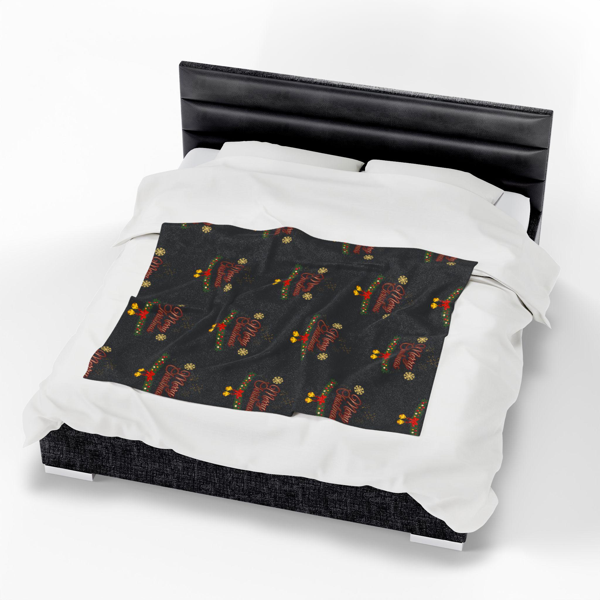 Wrap yourself in quiet holiday warmth. This velveteen plush blanket pairs a deep, soft pile with a festive repeat motif—gold bells, holly accents and a handwritten-style “Merry Christmas” on a rich black field—to create a cozy accent that reads both classic and a little mischievous. It settles across the lap on late-night movie nights, drapes over the arm of a reading chair, or tucks around shoulders during tree-decorating and cookie exchanges. The fabric is silky to the touch and holds vibrant printed color on one side, so the design stays bright while the reverse keeps a neutral, relaxed look. Lightweight enough to carry between rooms but substantial enough to feel comforting, it’s built to be used and to last.