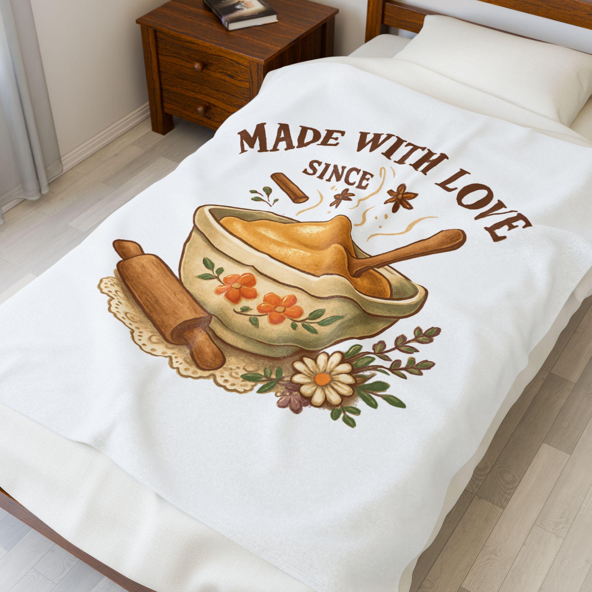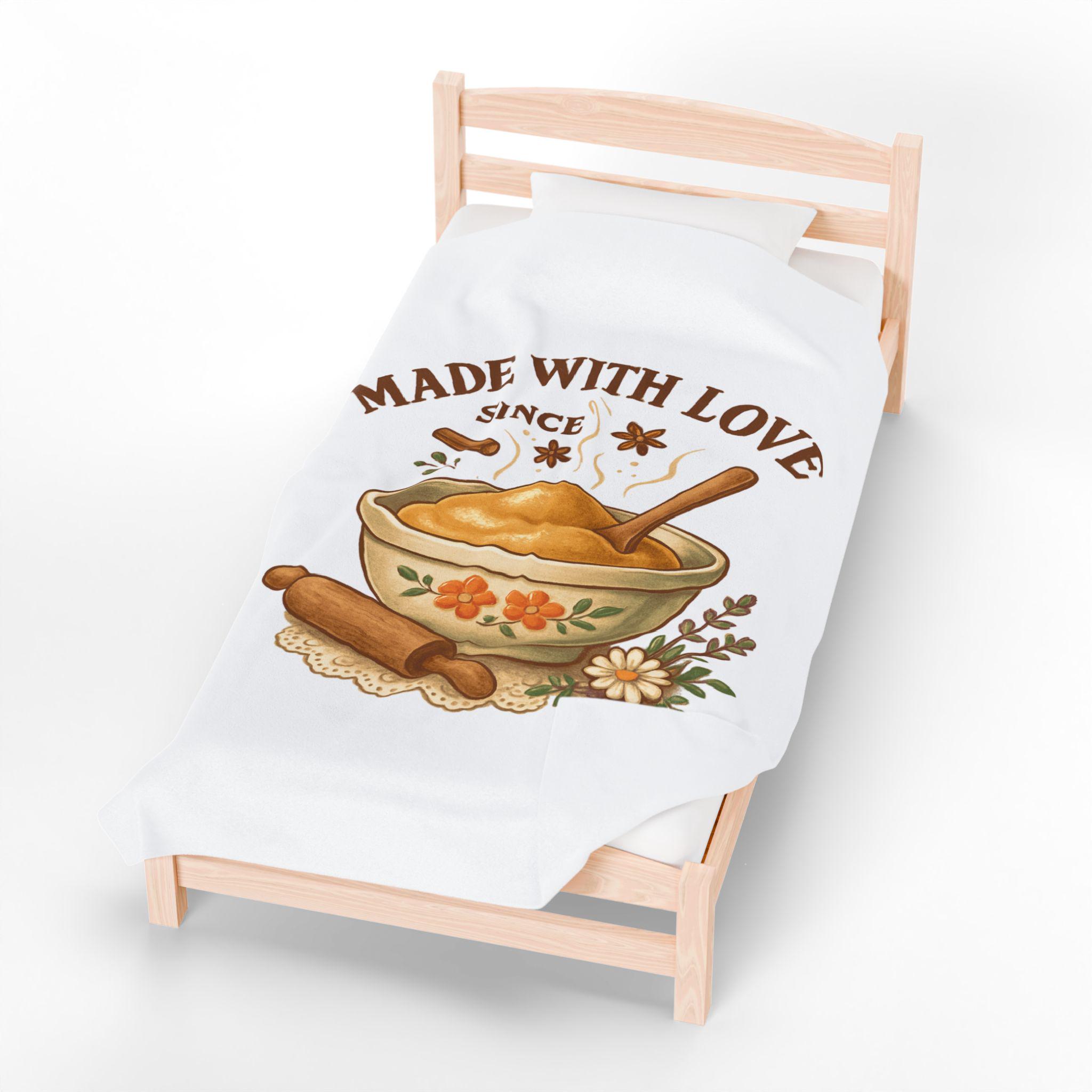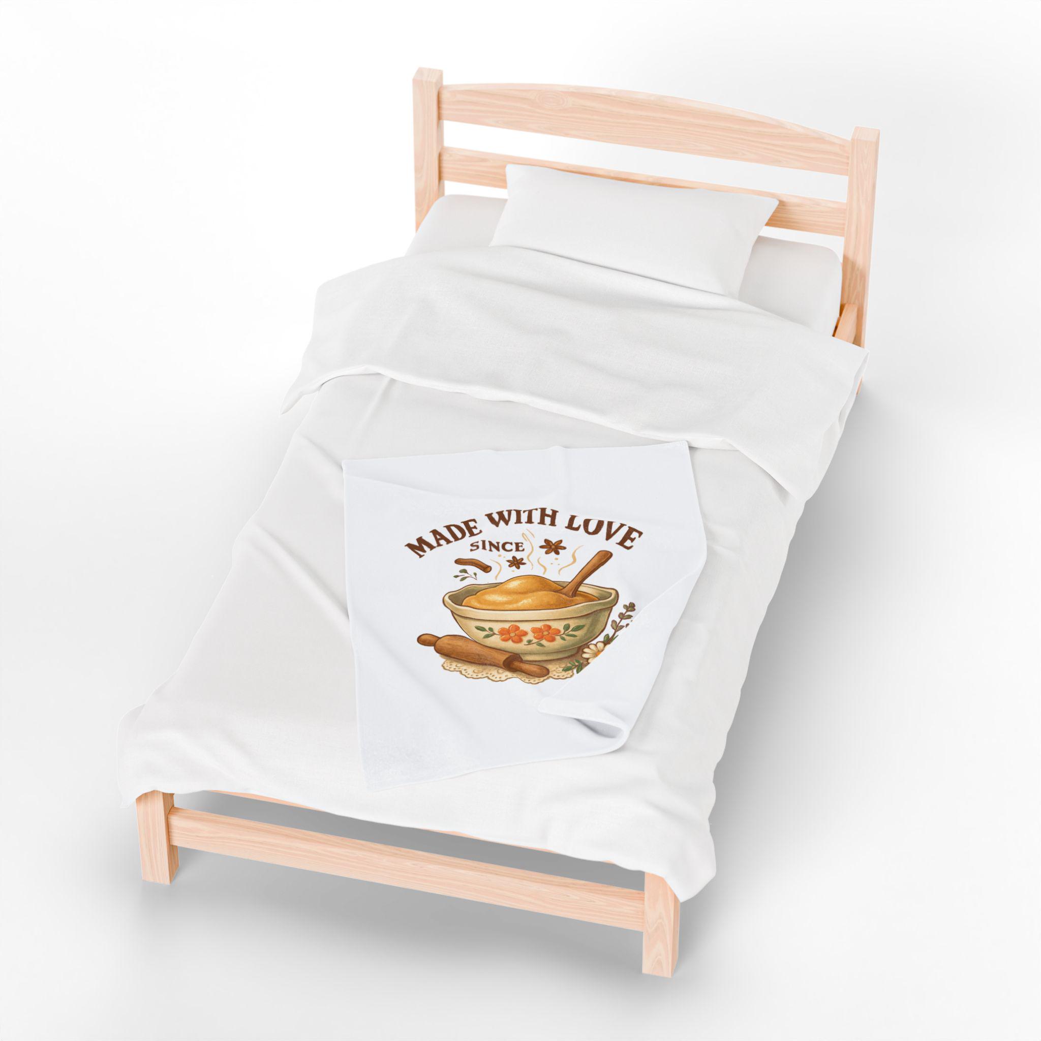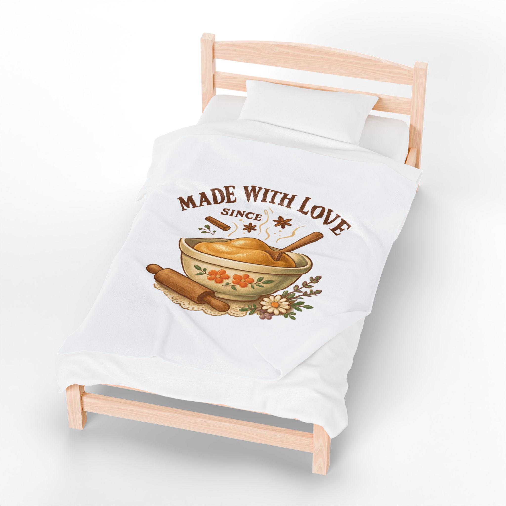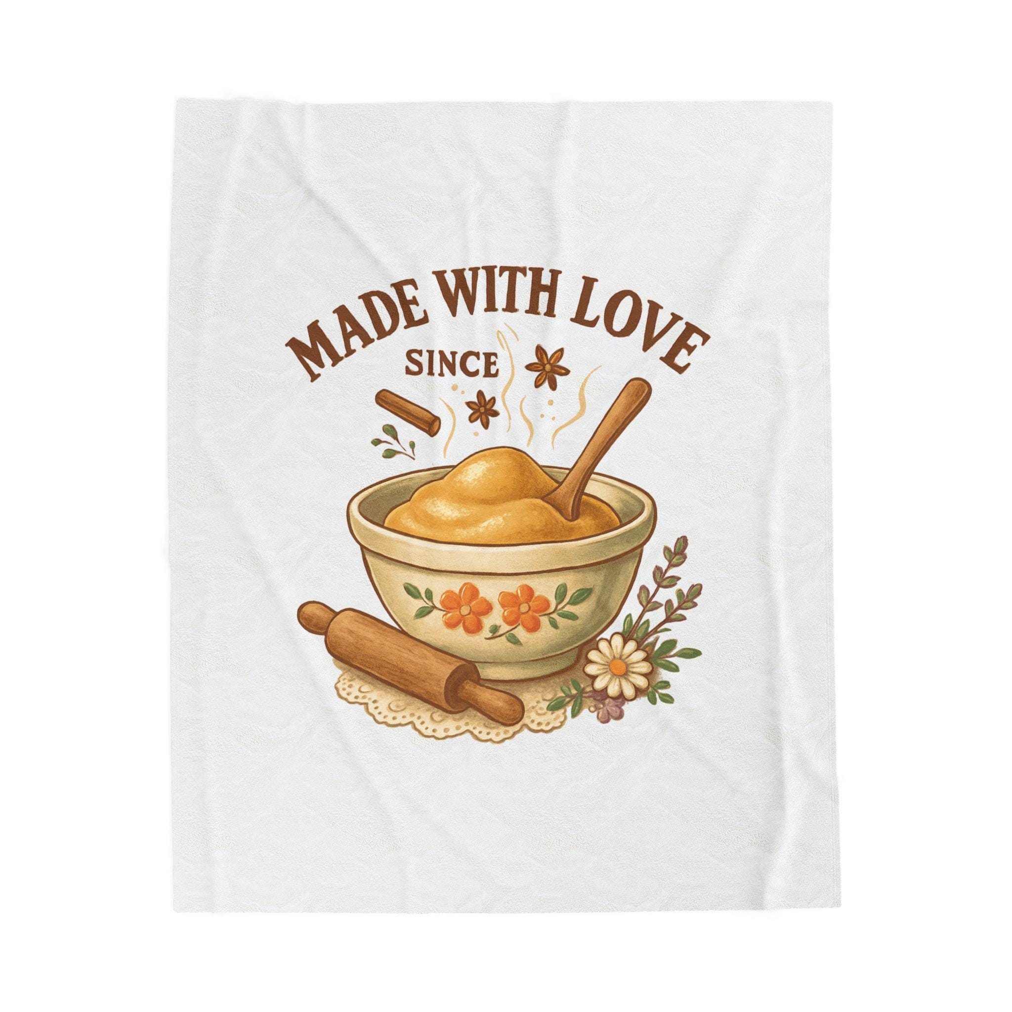 Made With Love bowl illustration Velveteen Plush Blanket | cozy kitchen bake theme