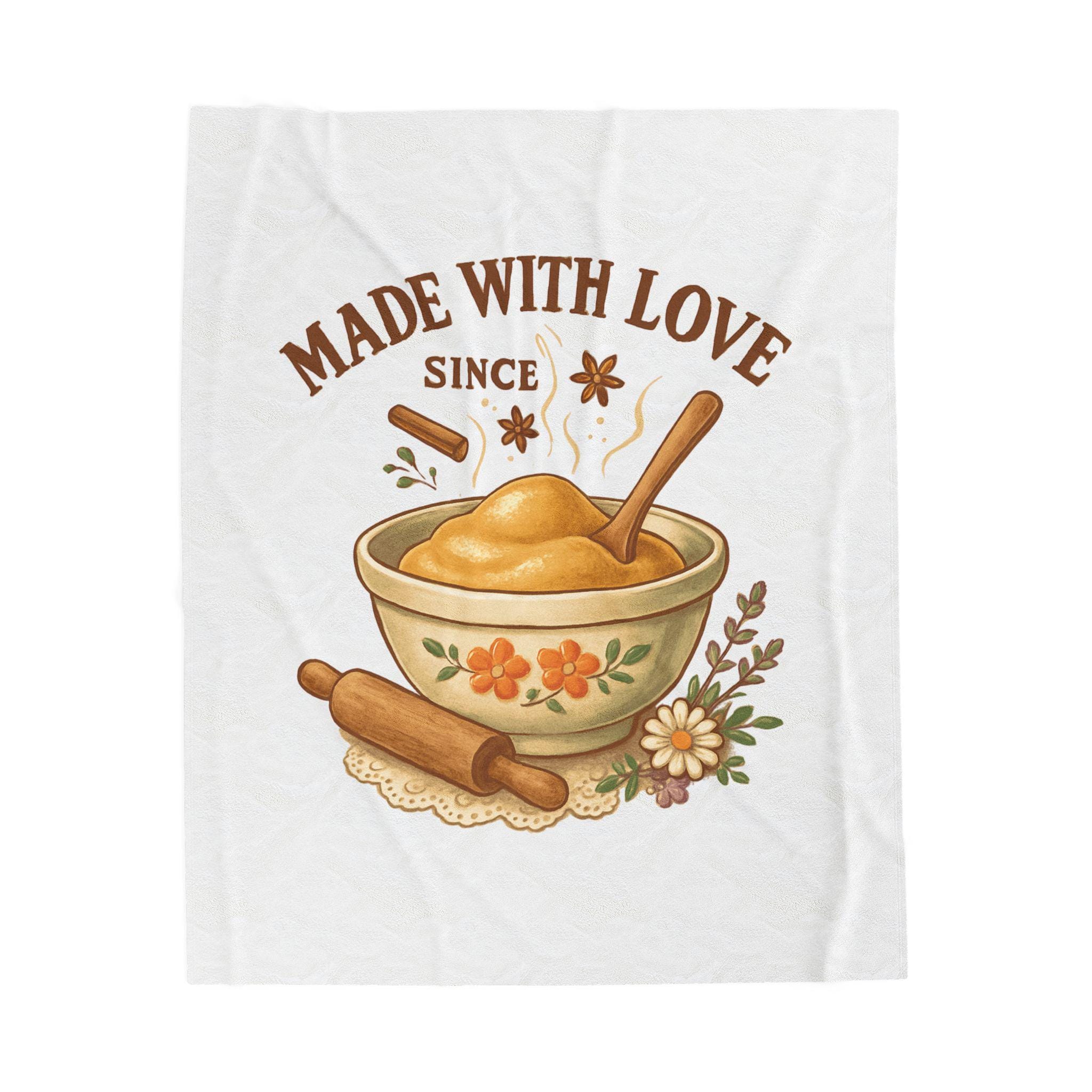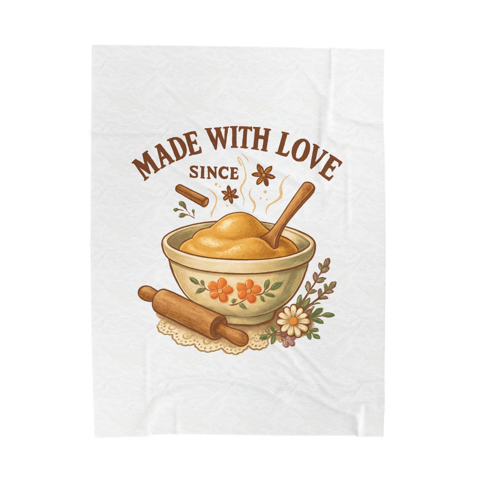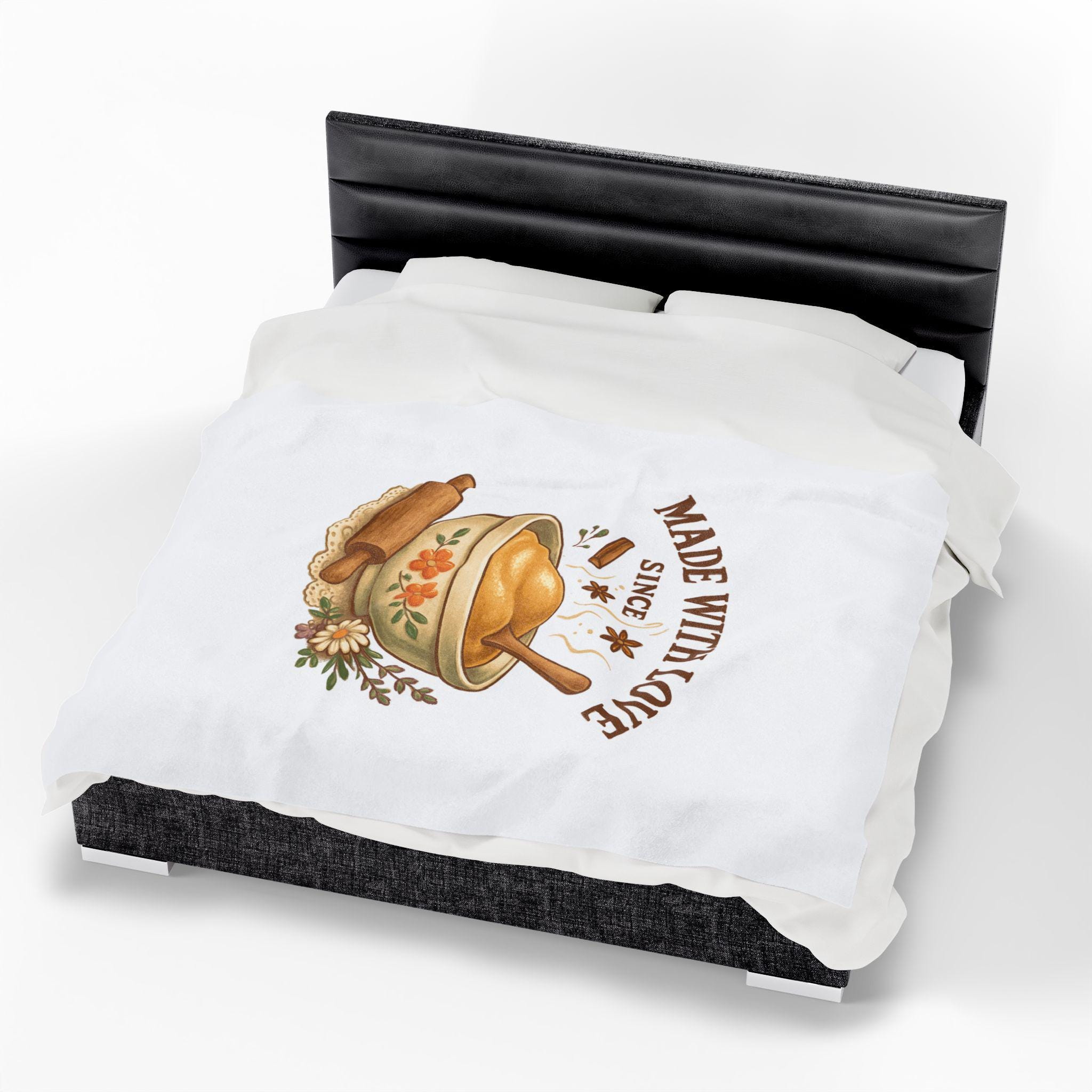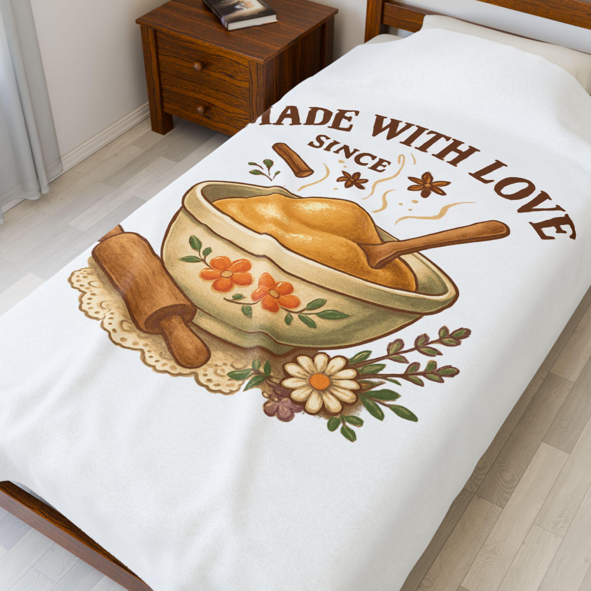 Made With Love bowl illustration Velveteen Plush Blanket | cozy kitchen bake theme