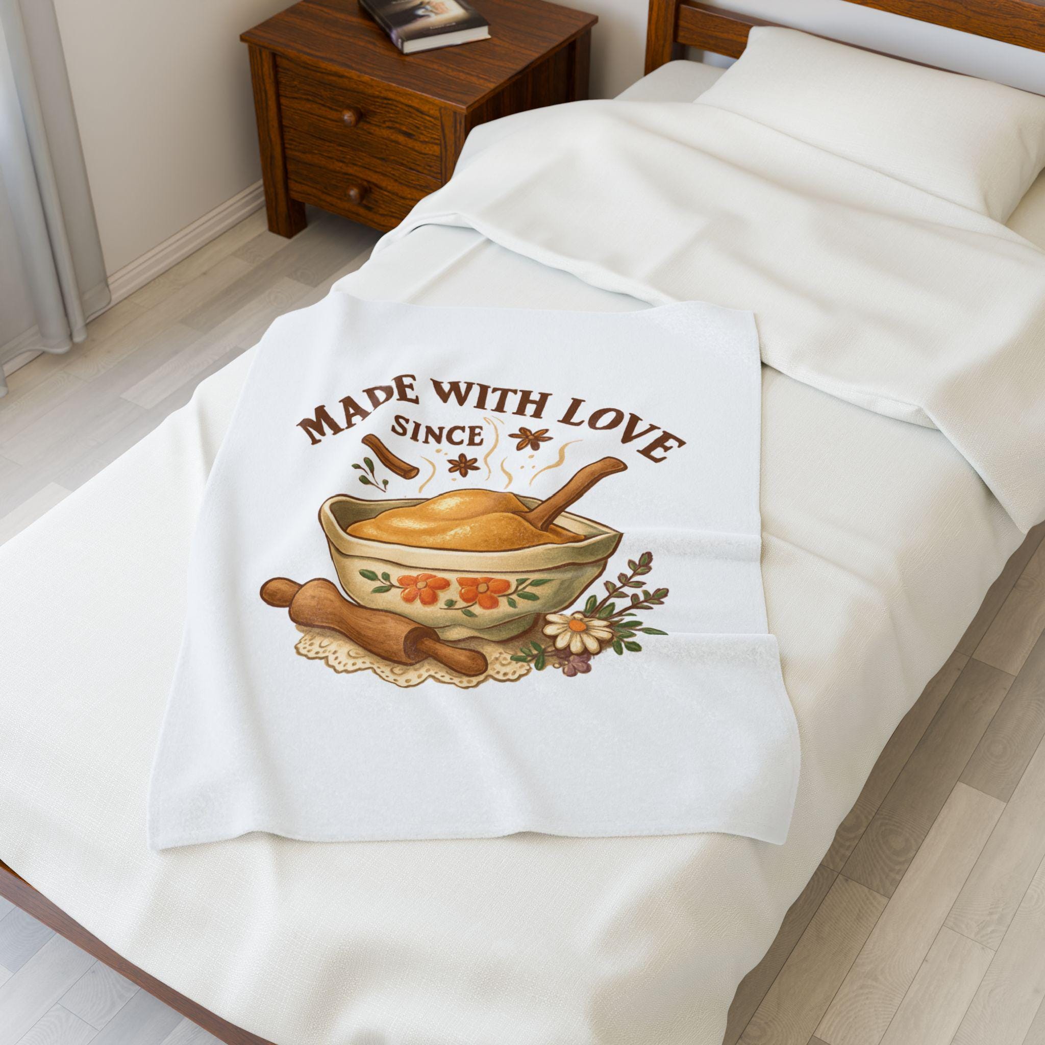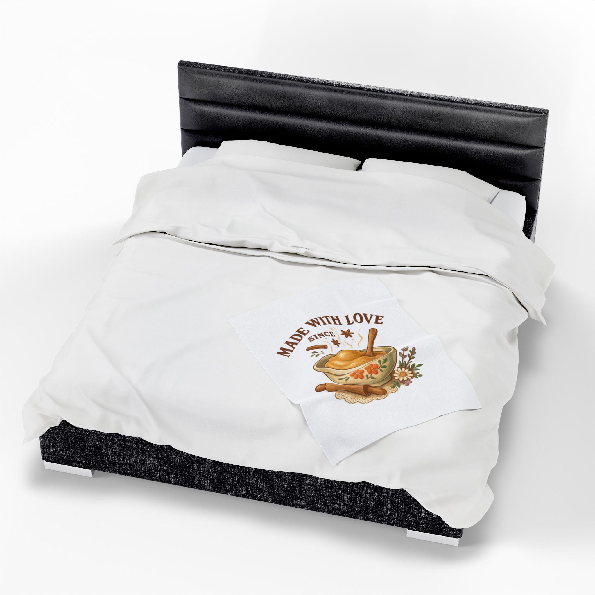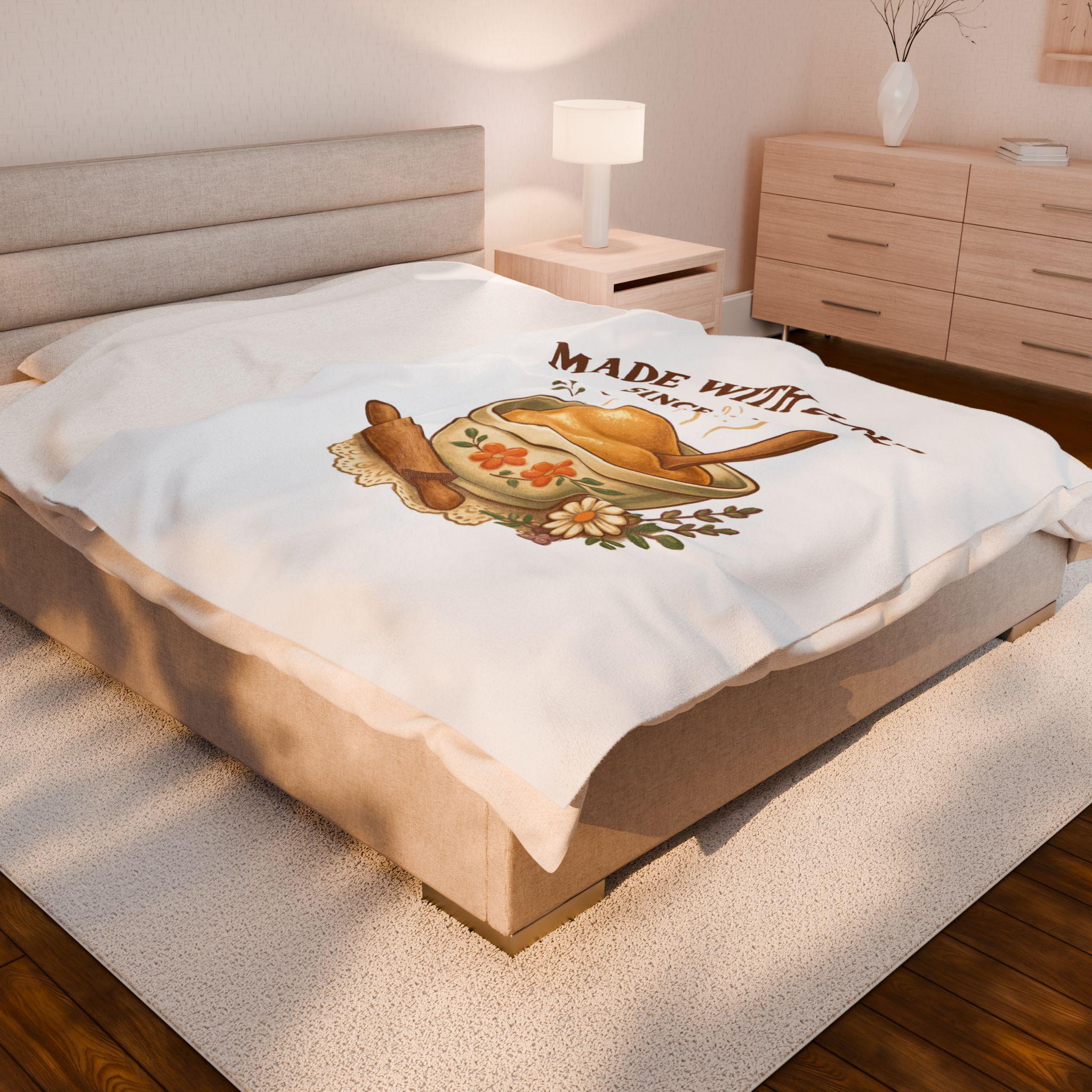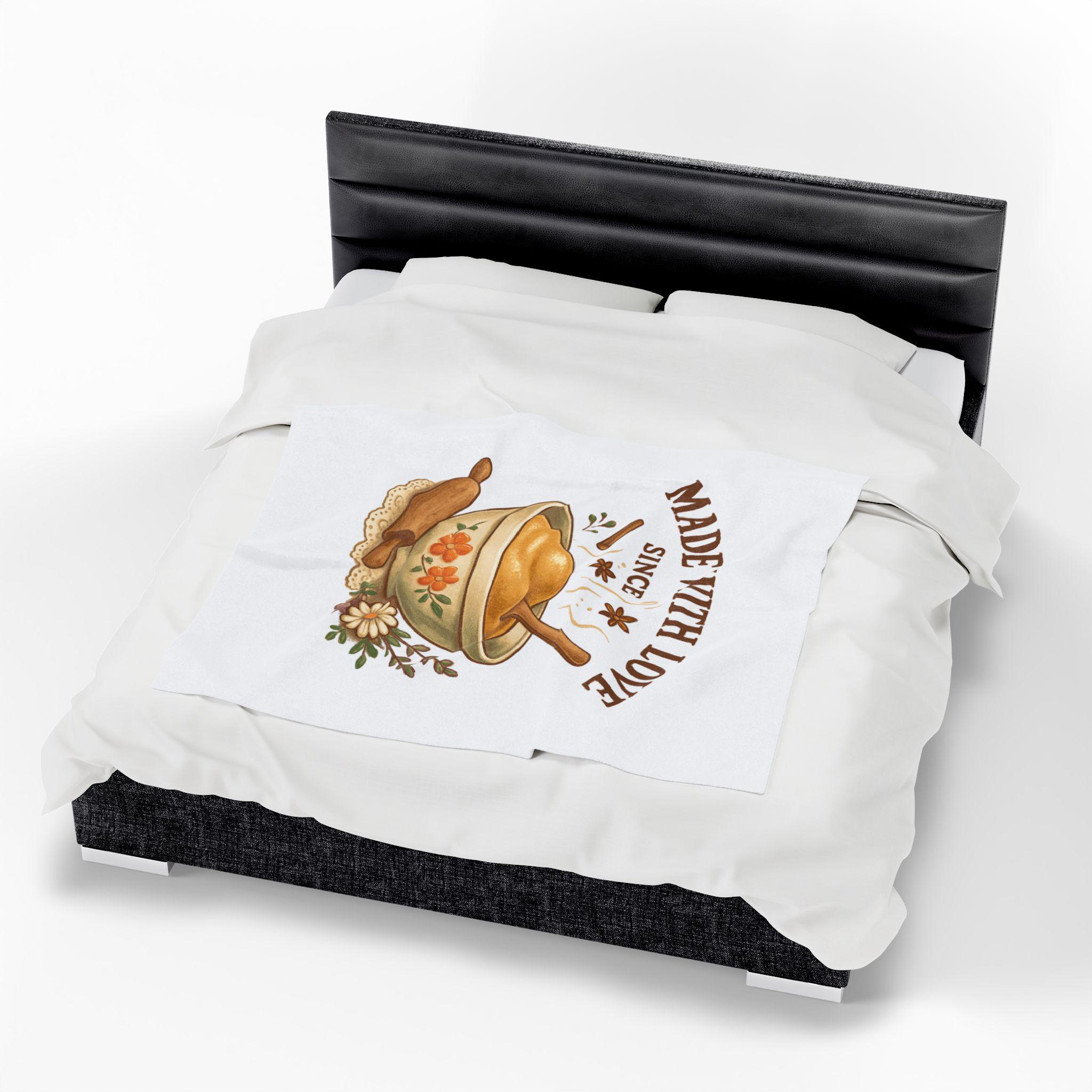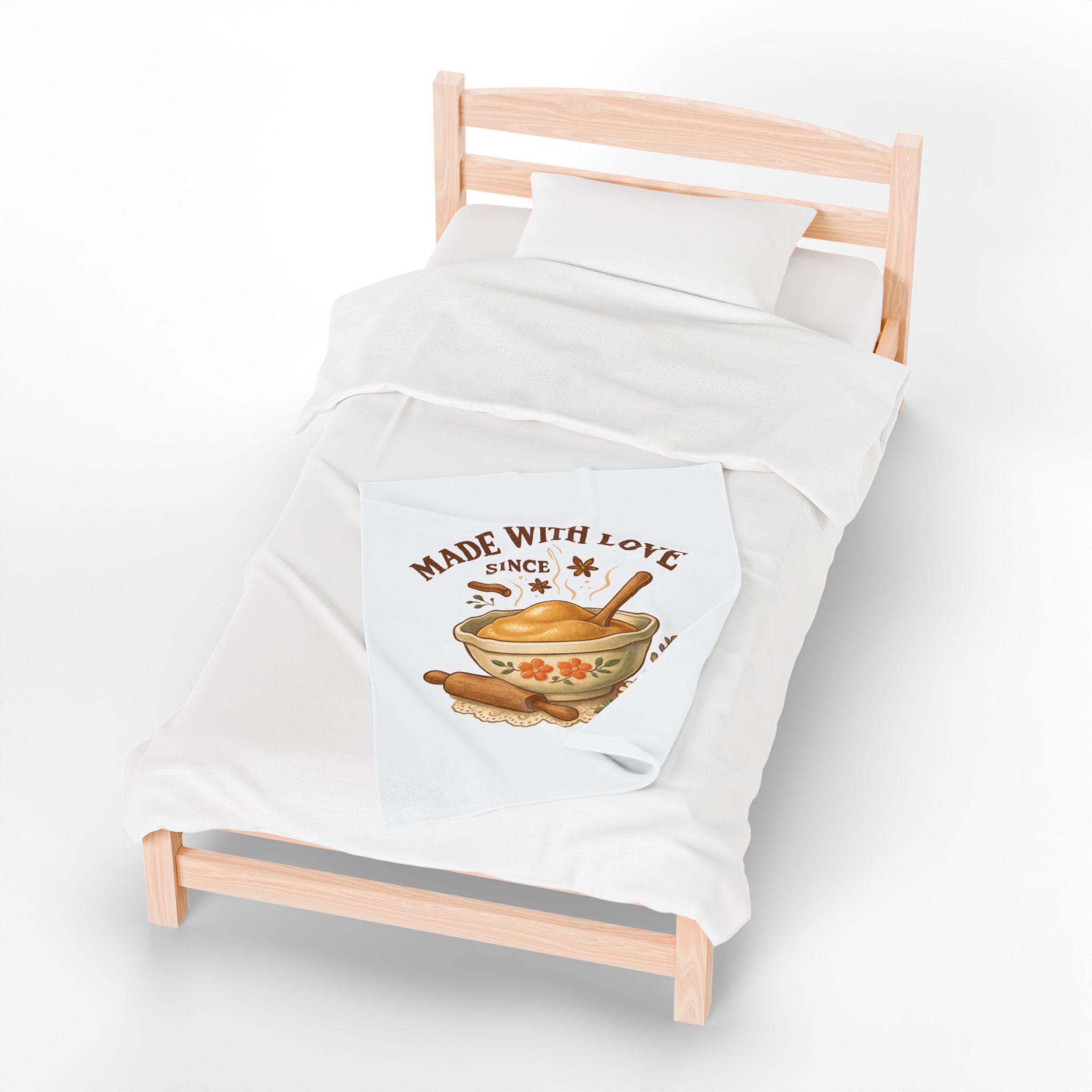 Made With Love bowl illustration Velveteen Plush Blanket | cozy kitchen bake theme