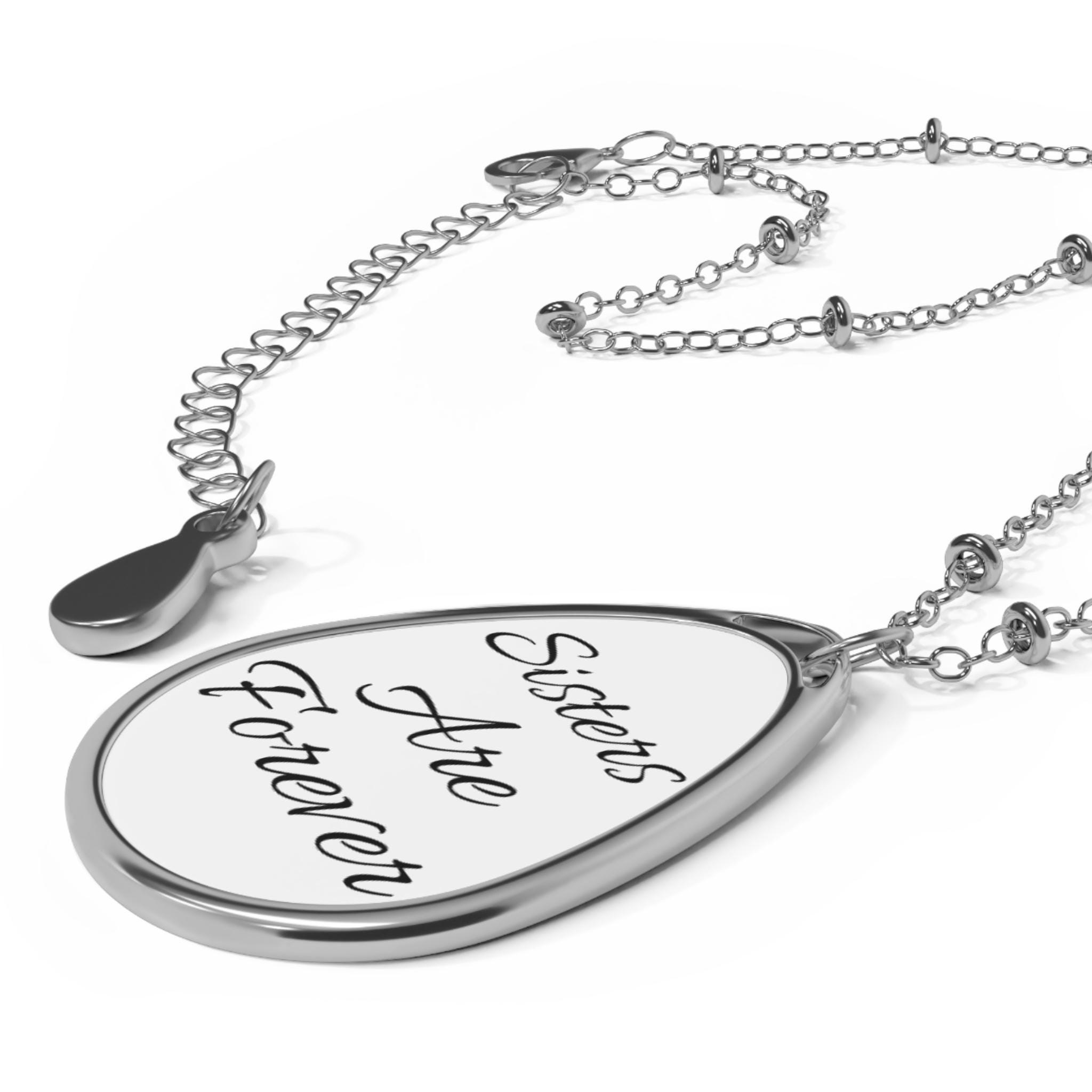 Sisters Are Forever Oval Necklace | Engraved Teardrop Pendant
