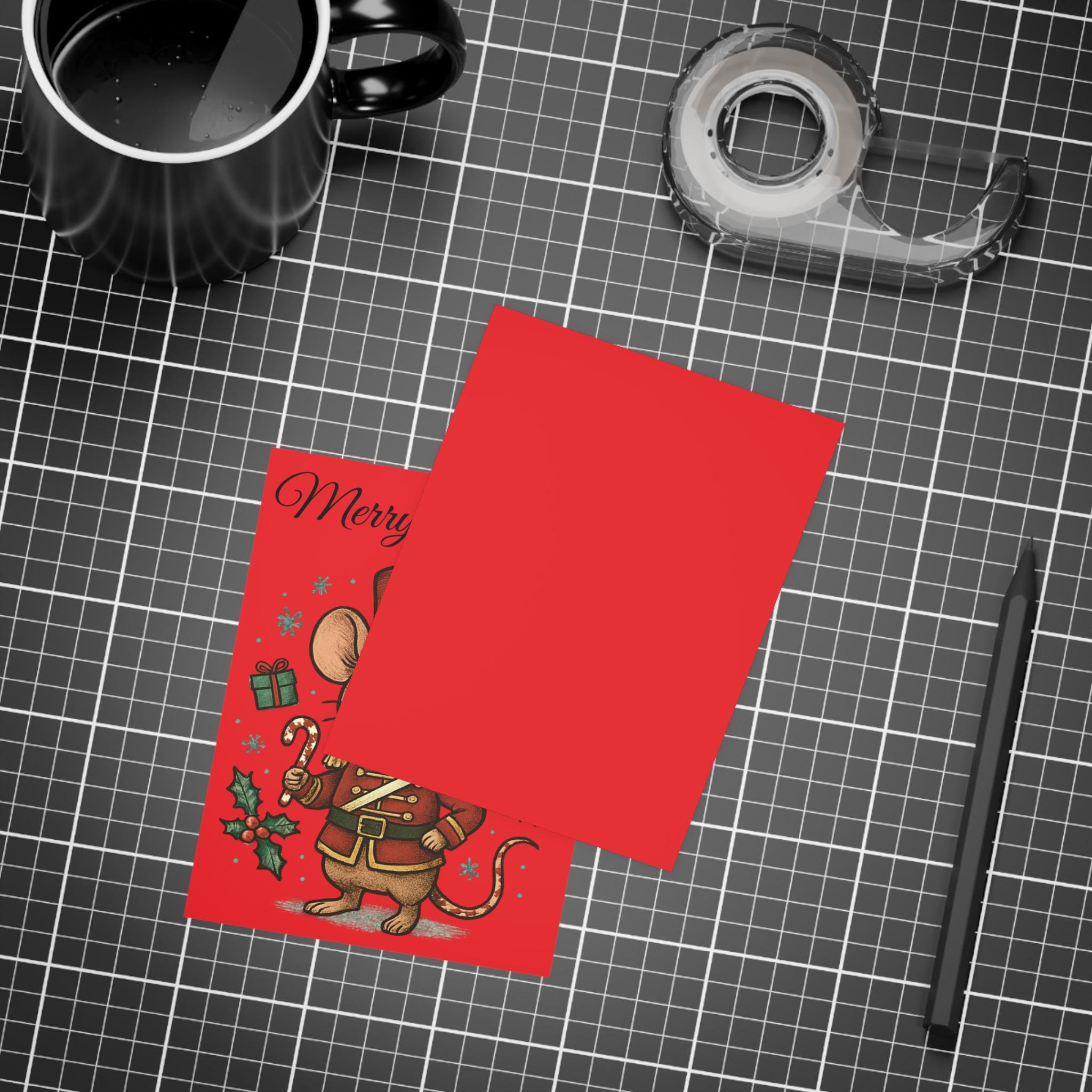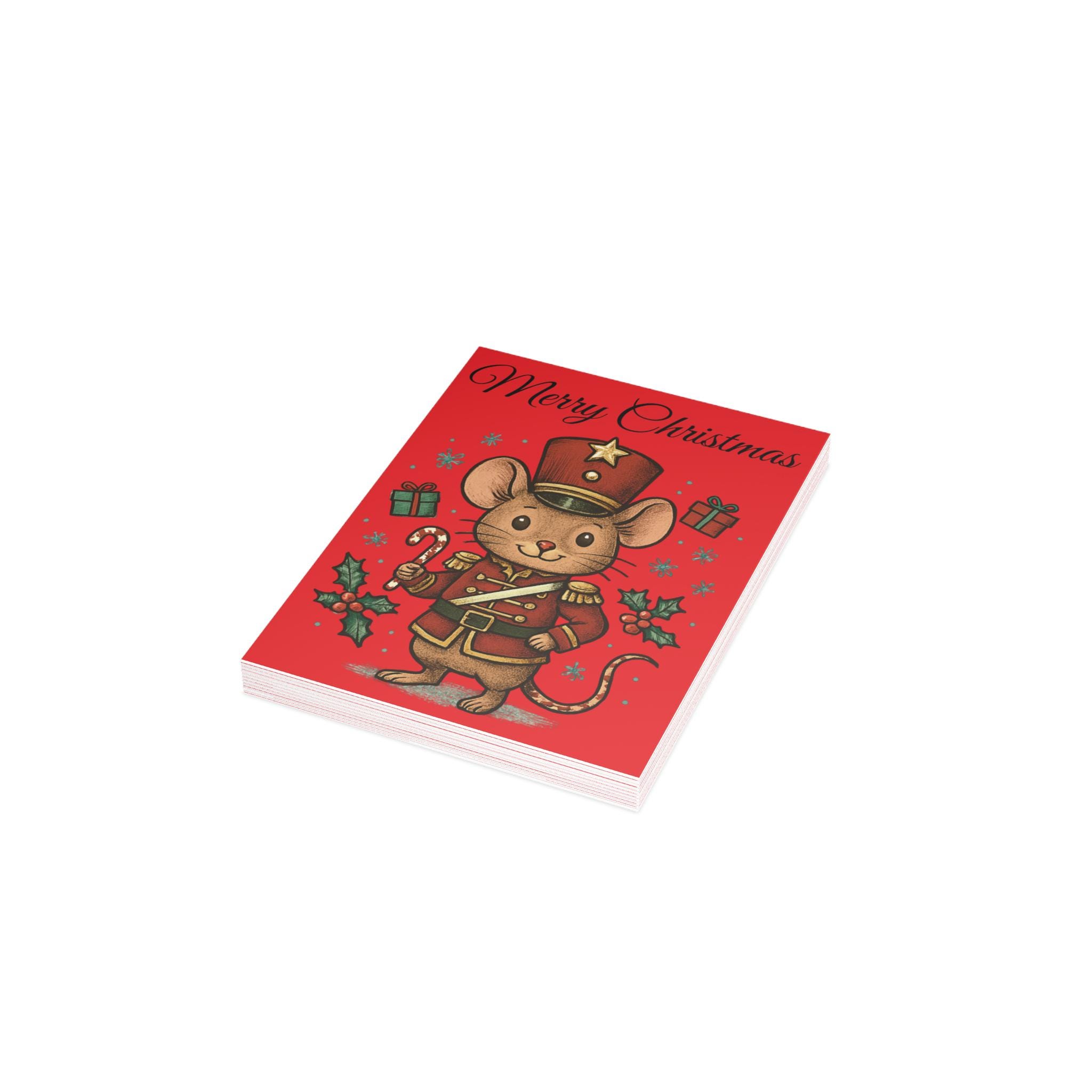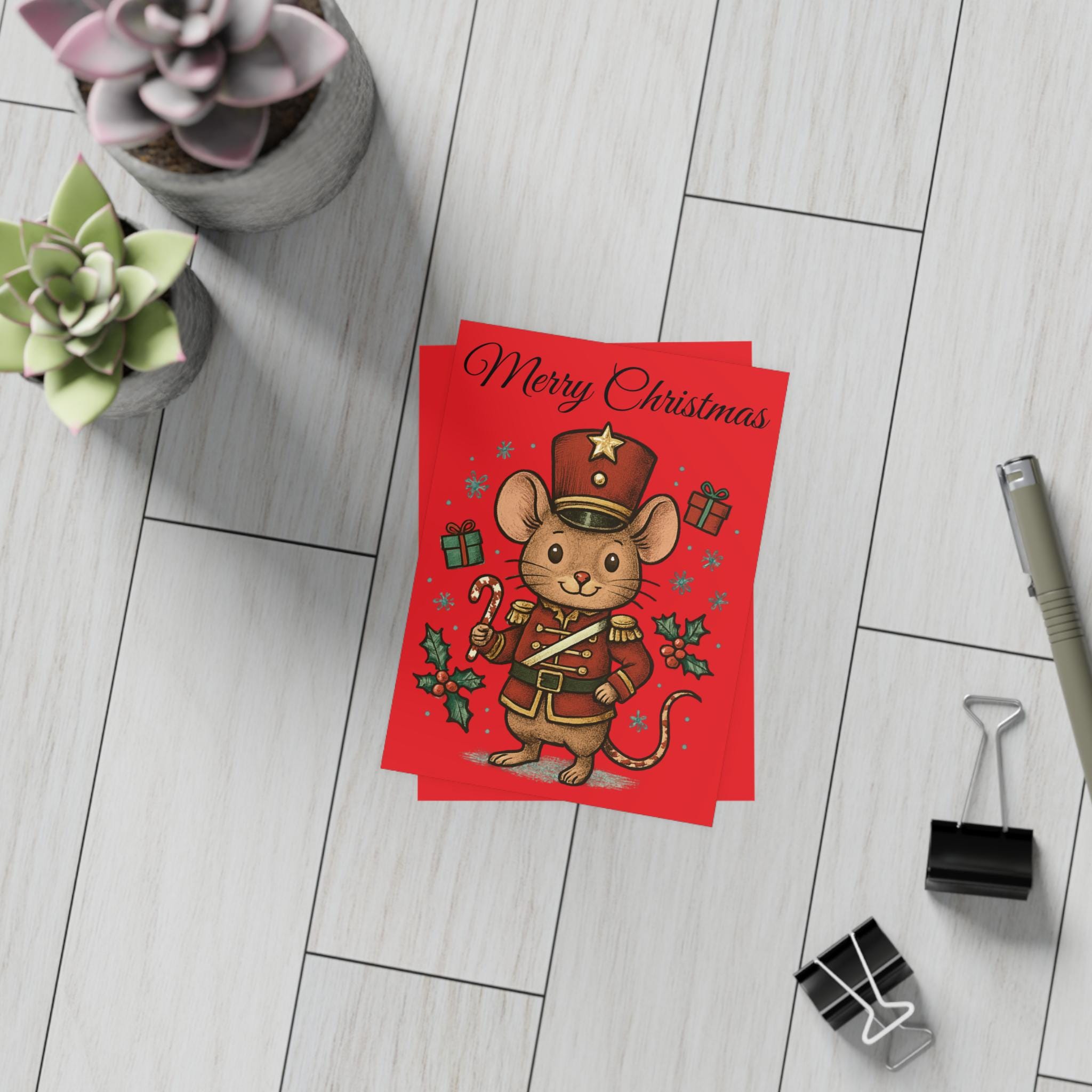 A set of cheerful, collectible postcards that bring a vintage holiday scene to life. Each card features a toy-soldier mouse illustration rendered in bright, crisp color—small, joyful details that feel like an old-fashioned Christmas morning. Slip a note inside and send a quick hello, tuck a card into a stocking, or use them as whimsical gift tags for friends who love holiday storytelling. The included envelopes keep each card ready to mail or tuck into a present, and multiple size and orientation options let you pick the look that fits your message. Choose your preferred paper finish—matte, uncoated, coated, or one-side coated—to set the feel: velvety and soft, naturally textured, sleek and glossy, or glossy on the image side with a writable back. These postcards sit comfortably in festive rituals: writing a warm line while the tree lights glow, sliding a note into a neighbour’s mailbox, or leaving a tiny keepsake for a host after holiday dinner.