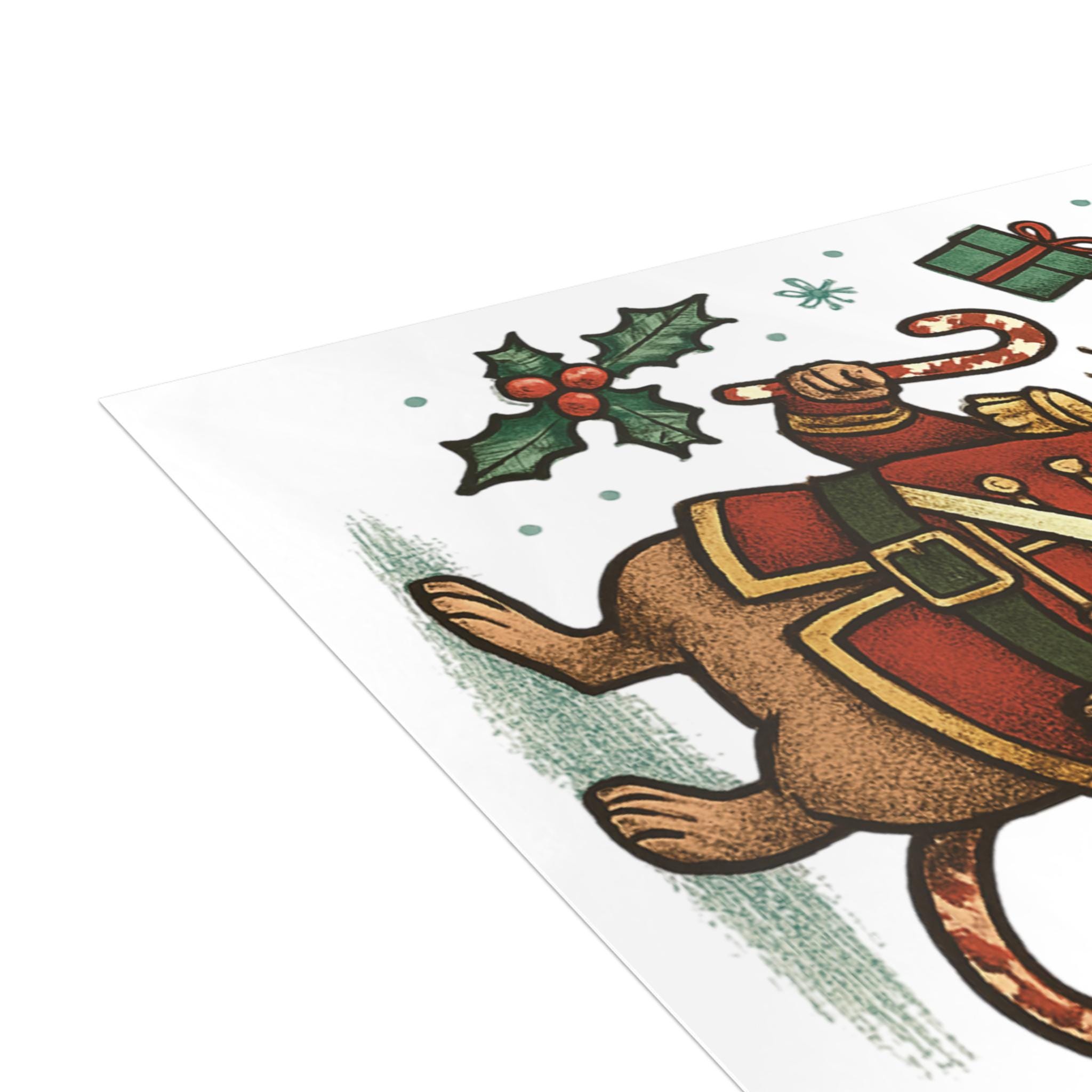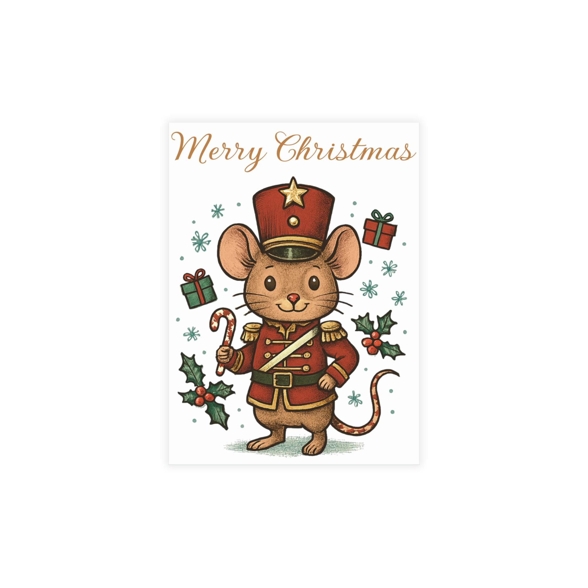 A set of cheerful, collectible postcards that bring a vintage holiday scene to life. Each card features a toy-soldier mouse illustration rendered in bright, crisp color—small, joyful details that feel like an old-fashioned Christmas morning. Slip a note inside and send a quick hello, tuck a card into a stocking, or use them as whimsical gift tags for friends who love holiday storytelling. The included envelopes keep each card ready to mail or tuck into a present, and multiple size and orientation options let you pick the look that fits your message. Choose your preferred paper finish—matte, uncoated, coated, or one-side coated—to set the feel: velvety and soft, naturally textured, sleek and glossy, or glossy on the image side with a writable back. These postcards sit comfortably in festive rituals: writing a warm line while the tree lights glow, sliding a note into a neighbour’s mailbox, or leaving a tiny keepsake for a host after holiday dinner.