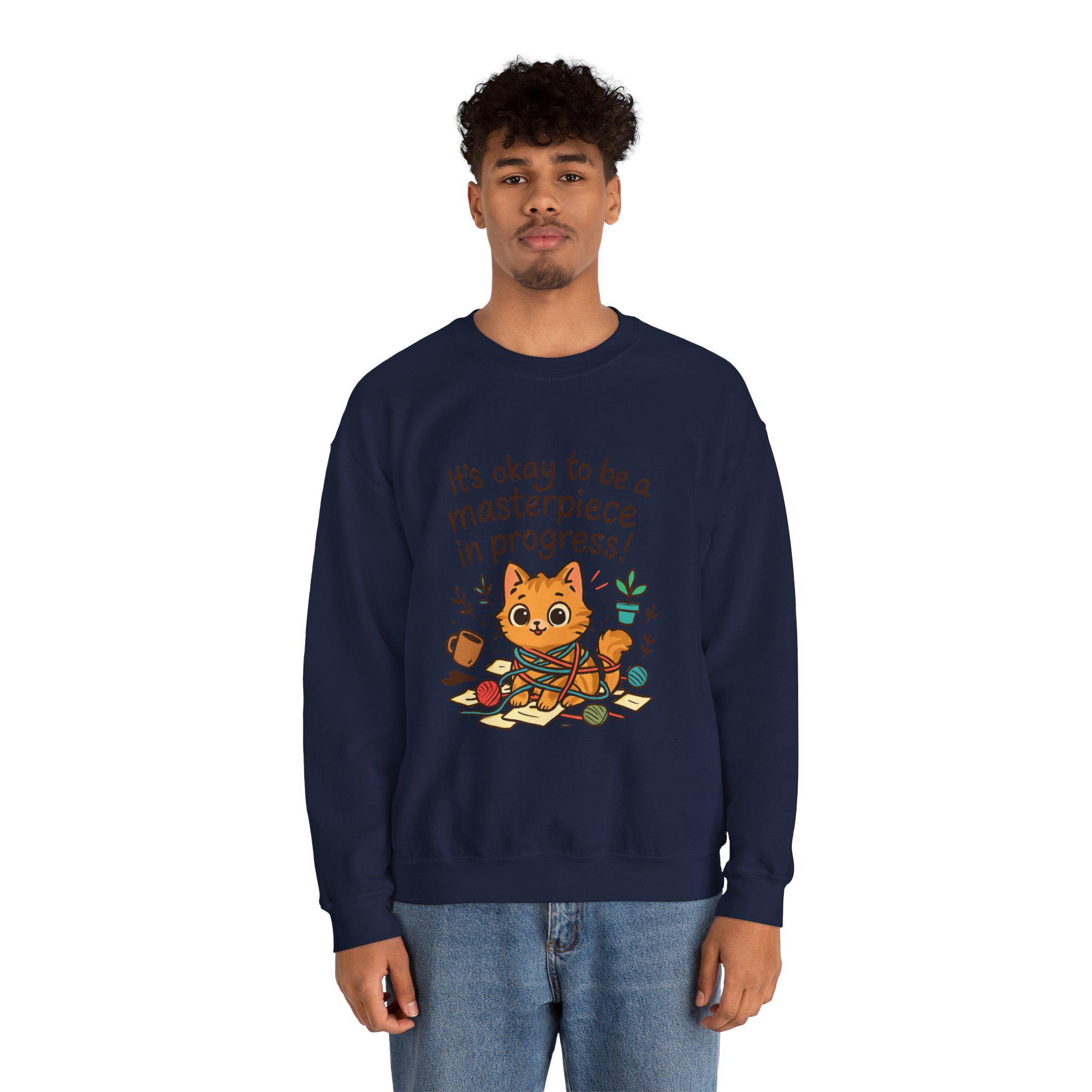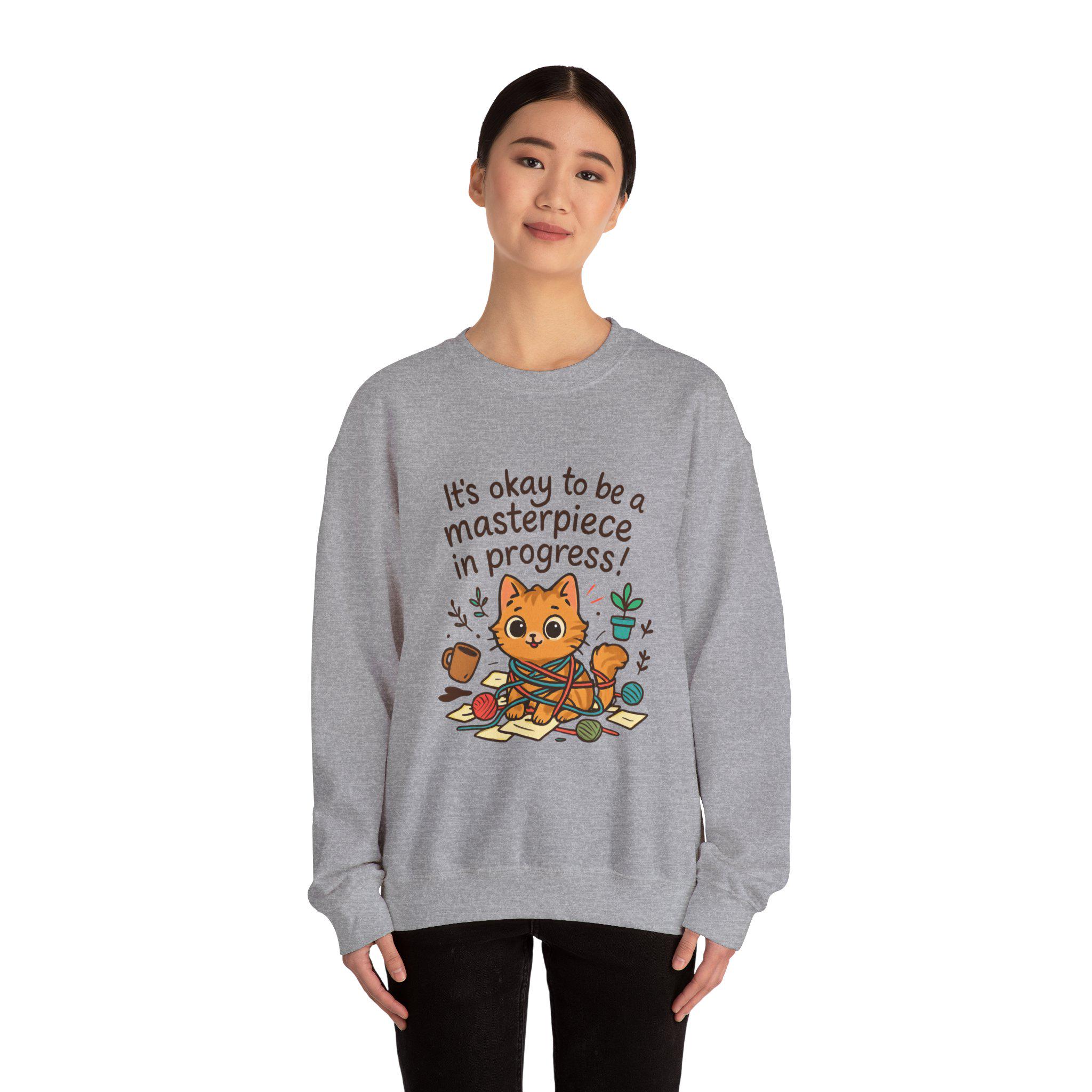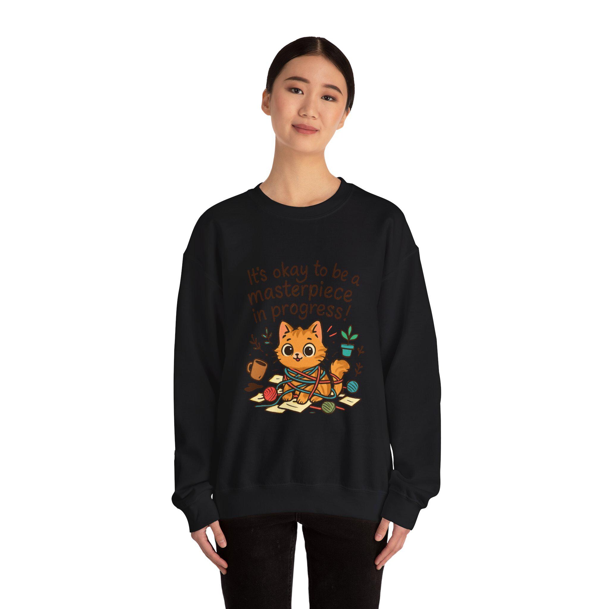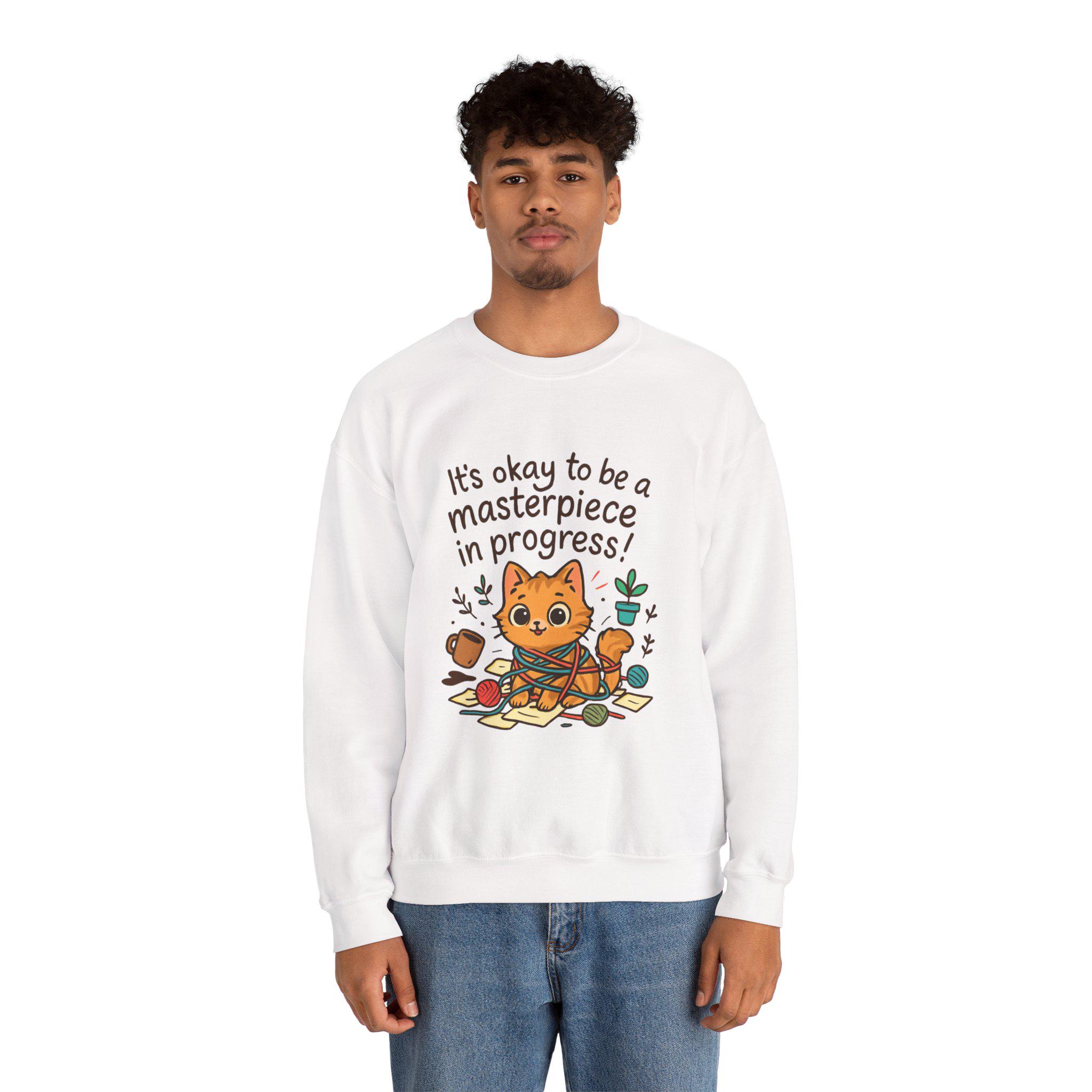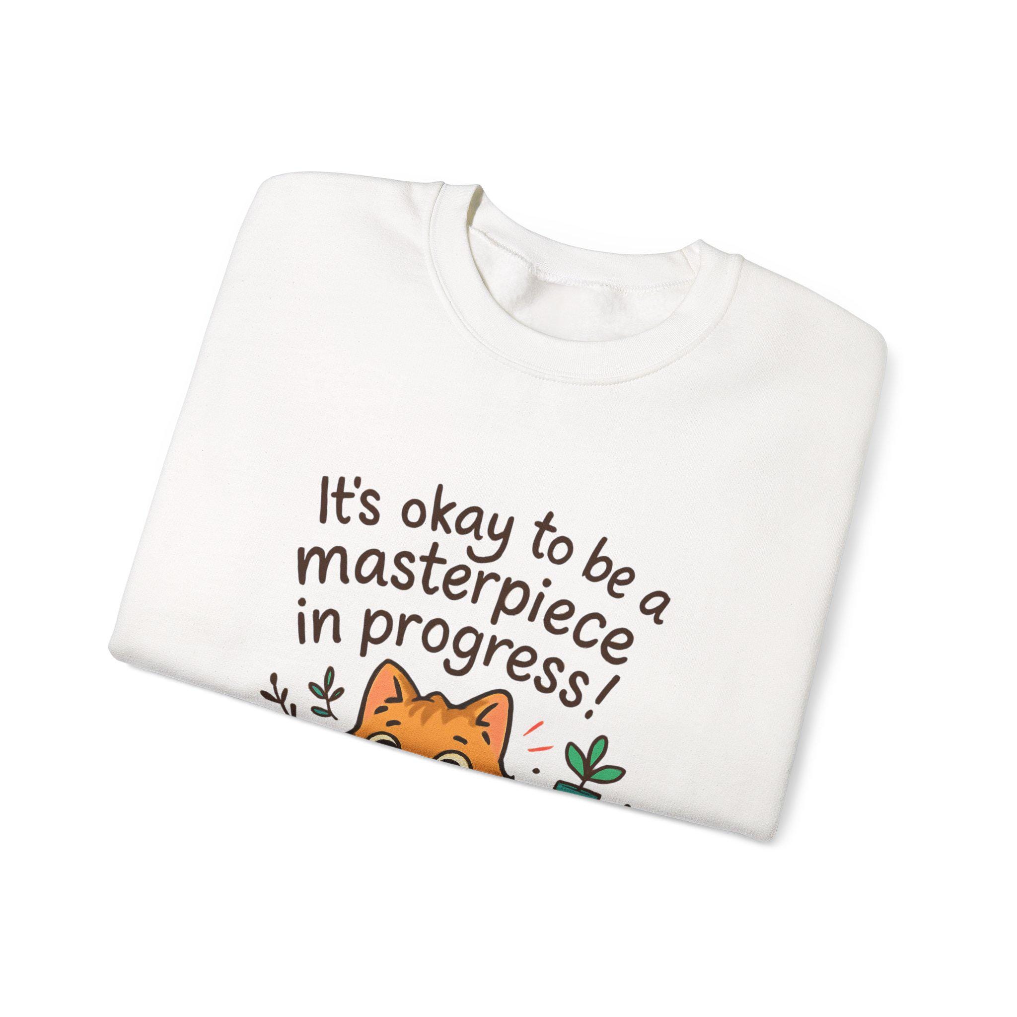 It's okay to be a masterpiece in progress Cat Sweatshirt | Positive Quote