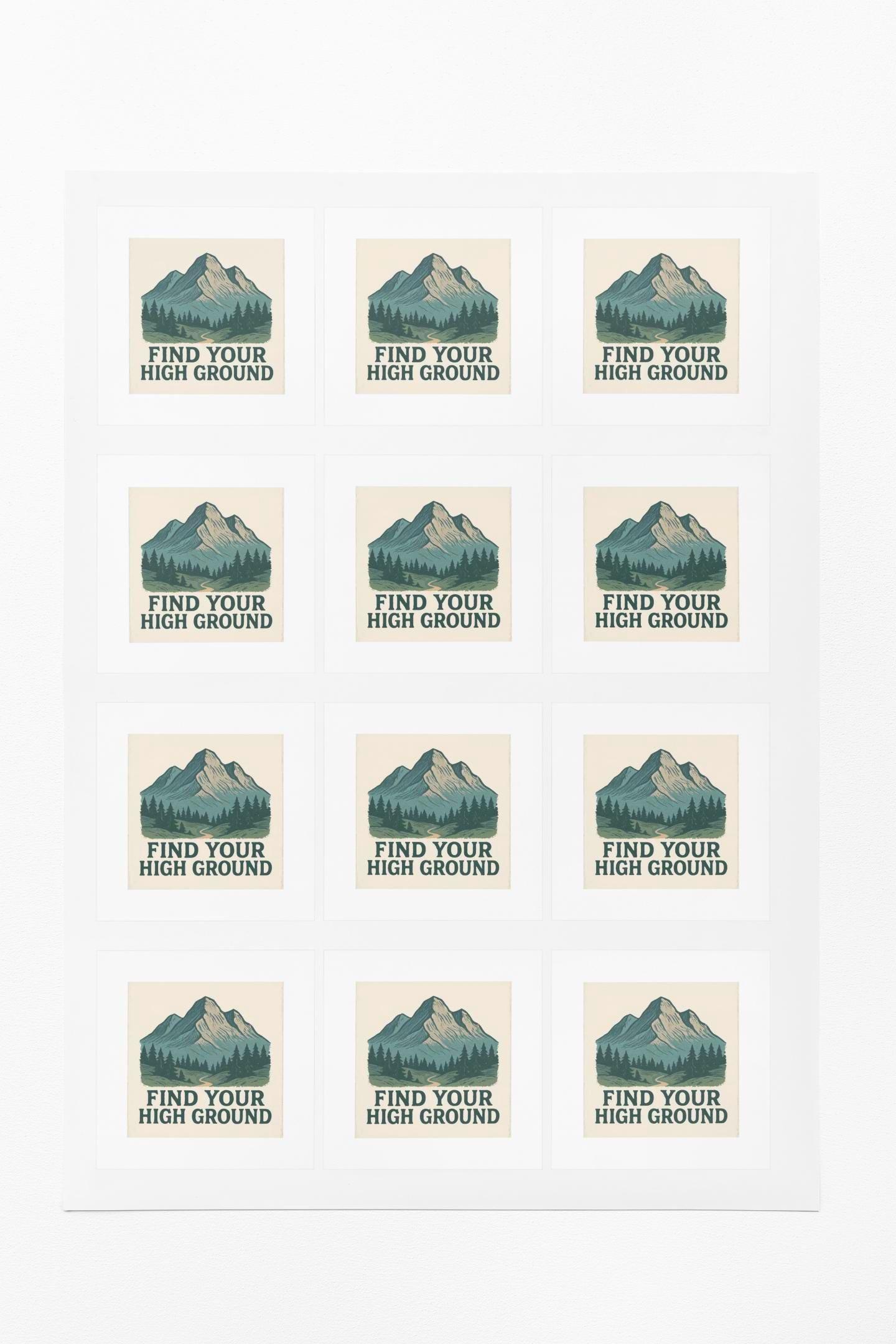 This glossy kiss-cut sticker brings a small piece of the wild to everyday life. A hand-drawn mountain rises over a ring of pine, a winding trail leading your eye toward the peak while the phrase “FIND YOUR HIGH GROUND” anchors the design. The muted teal and forest greens have a vintage outdoor-poster feel that reads calm, resilient, and quietly adventurous. Stick it on a laptop, journal, water bottle (indoor decor), or window to remind yourself to seek perspective, hike a little farther, and carry a patch of nature wherever you go. The smooth glossy finish and clean kiss-cut edge make application effortless and the look intentionally low-key — for people who live for trail mornings, campsite conversations, and maps folded into back pockets.
