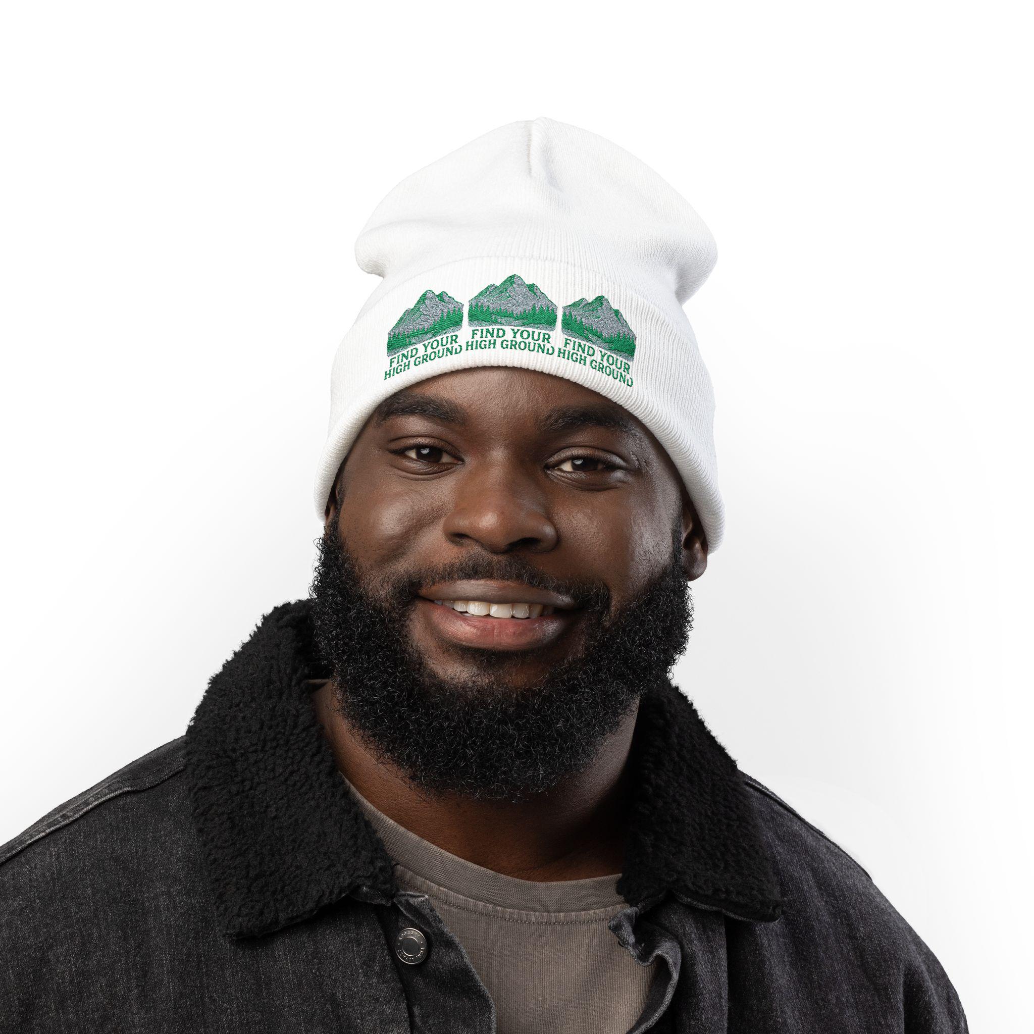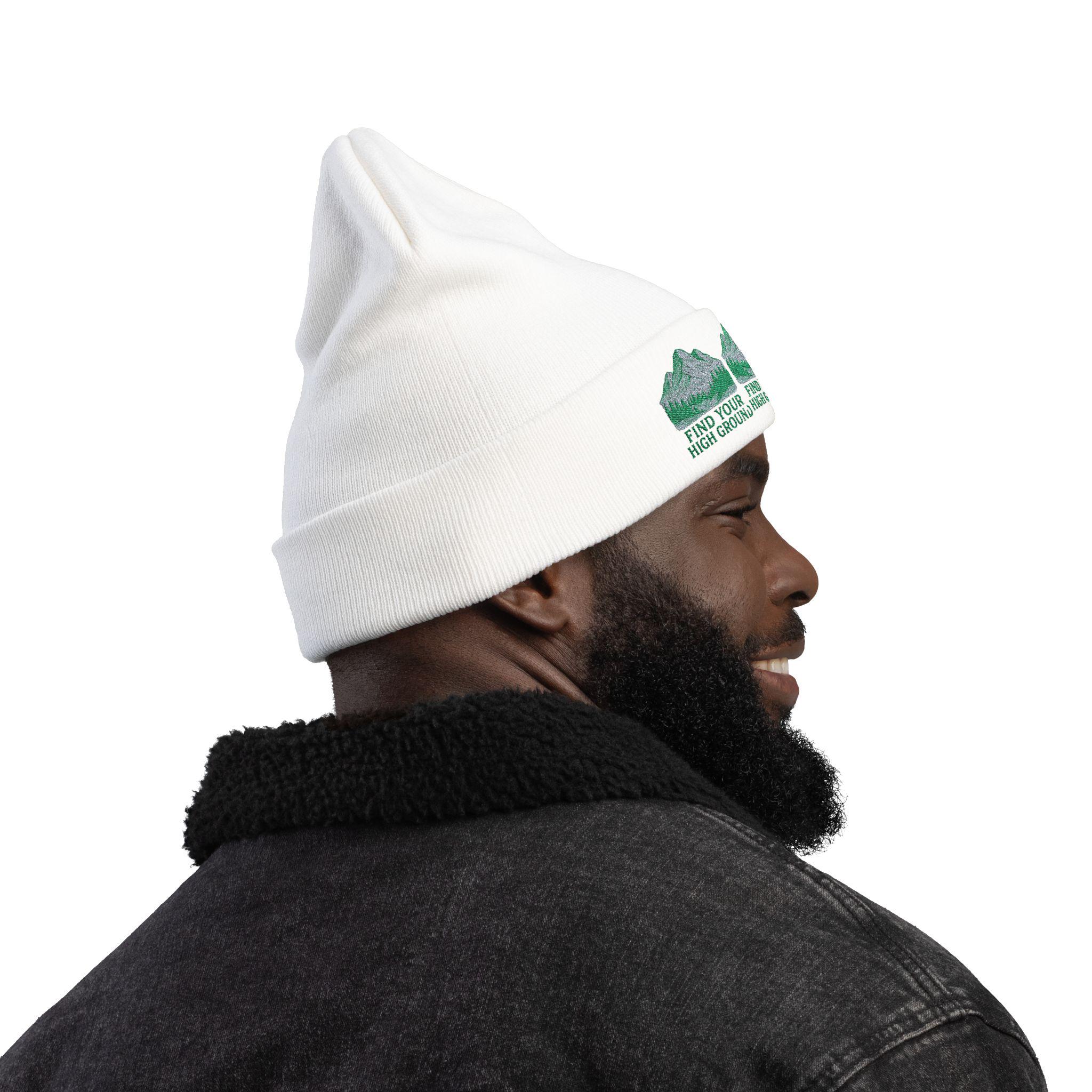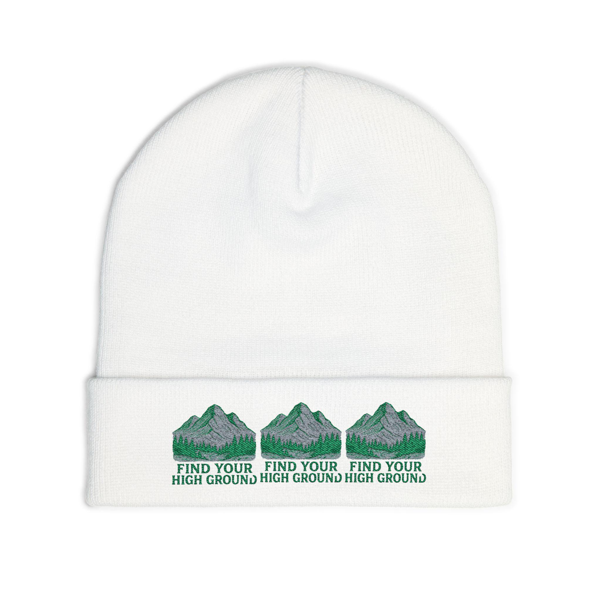 Find Your High Ground knit beanie | Mountain embroidery, outdoor hiking motif