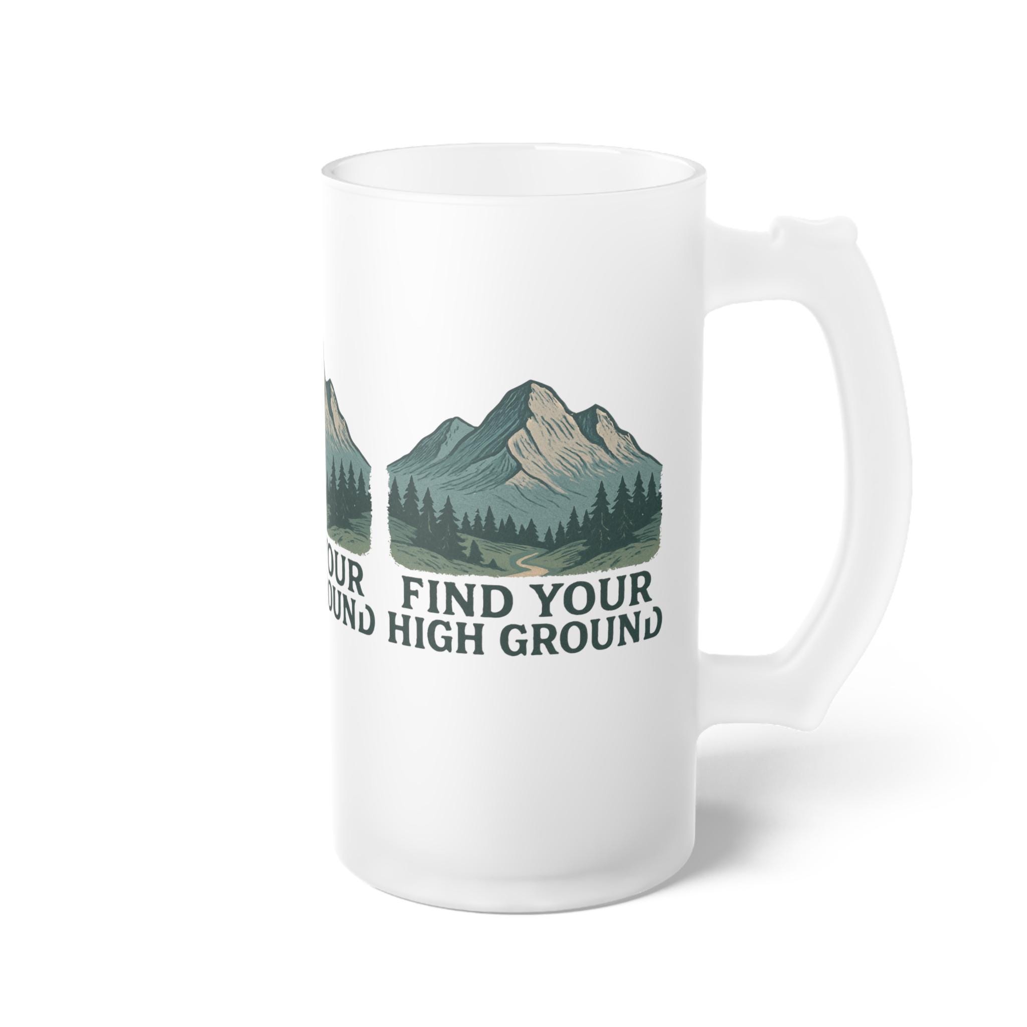Find Your High Ground Frosted Glass Beer Mug | Mountain Landscape