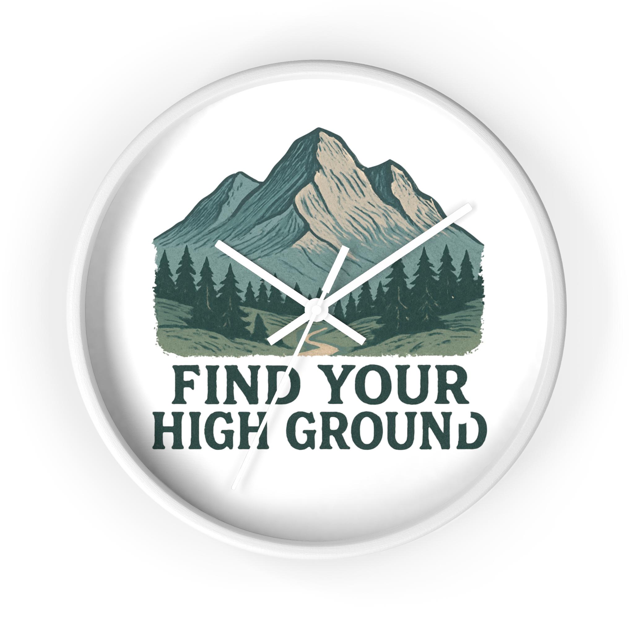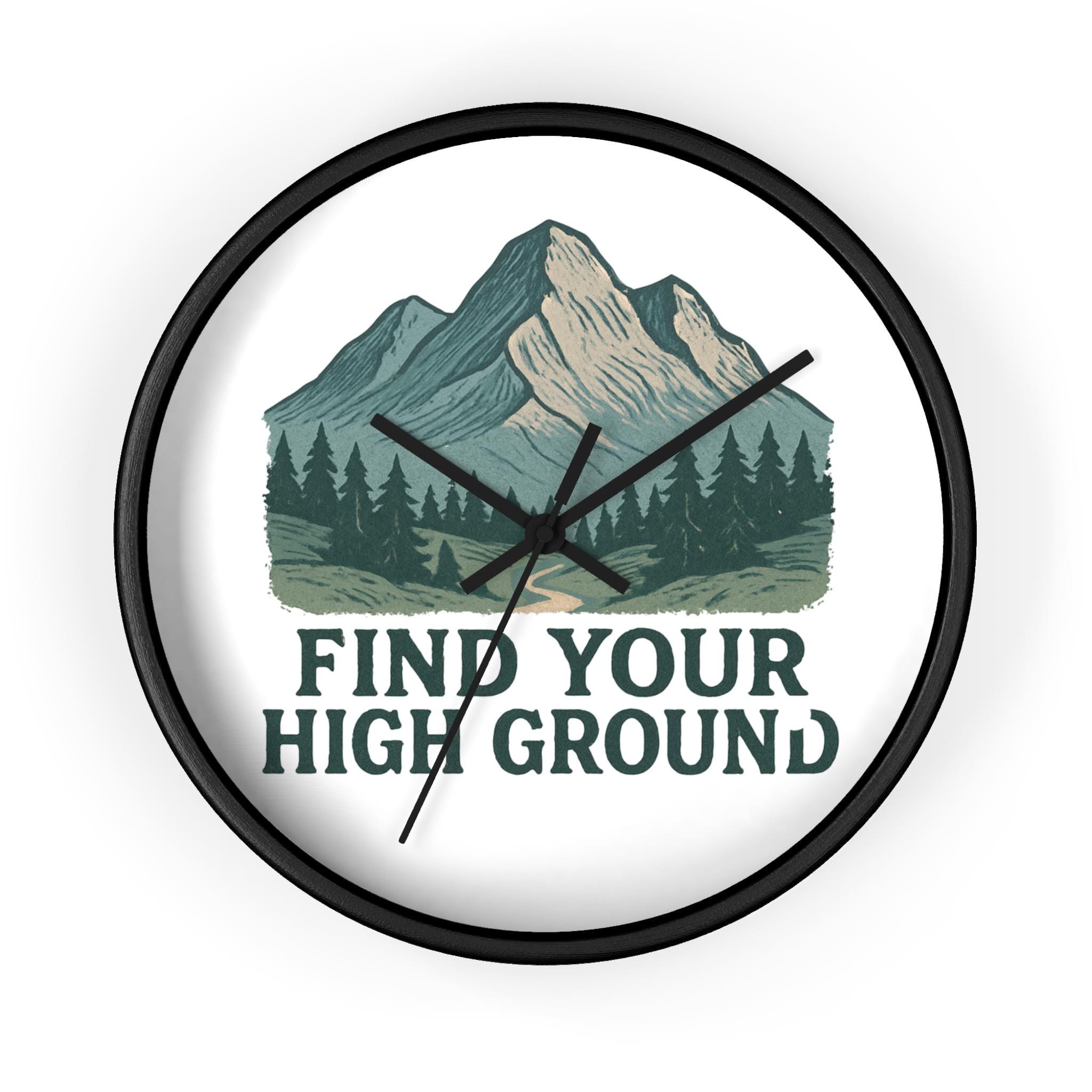 Find Your High Ground Wall Clock | Mountain Forest Illustration