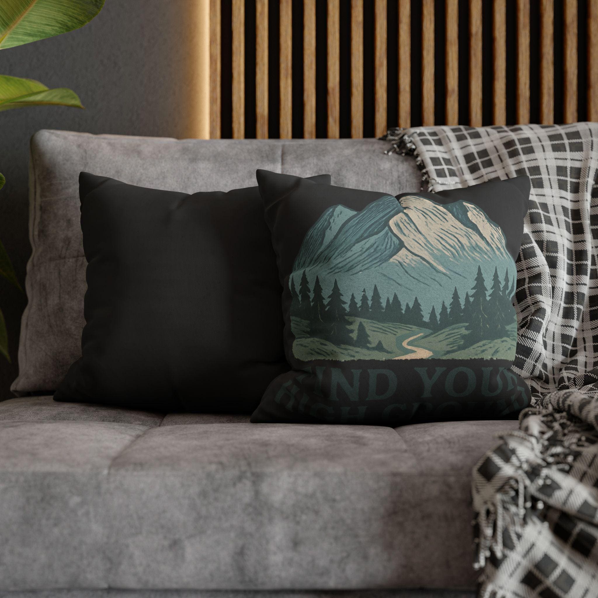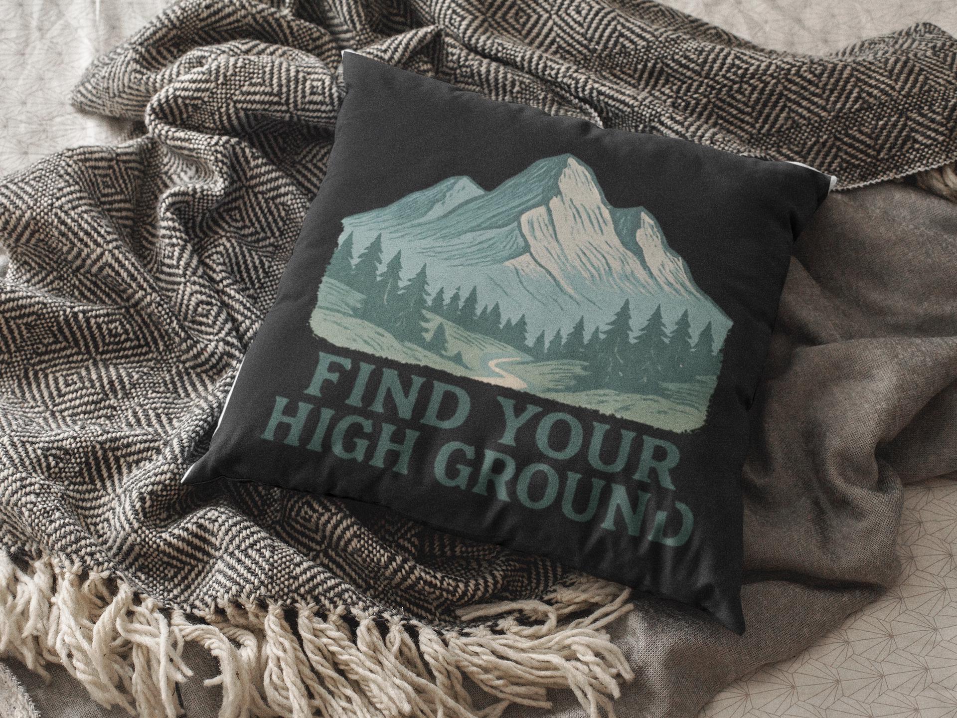 Find Your High Ground mountain landscape pillowcase | square poly canvas pillowcase
