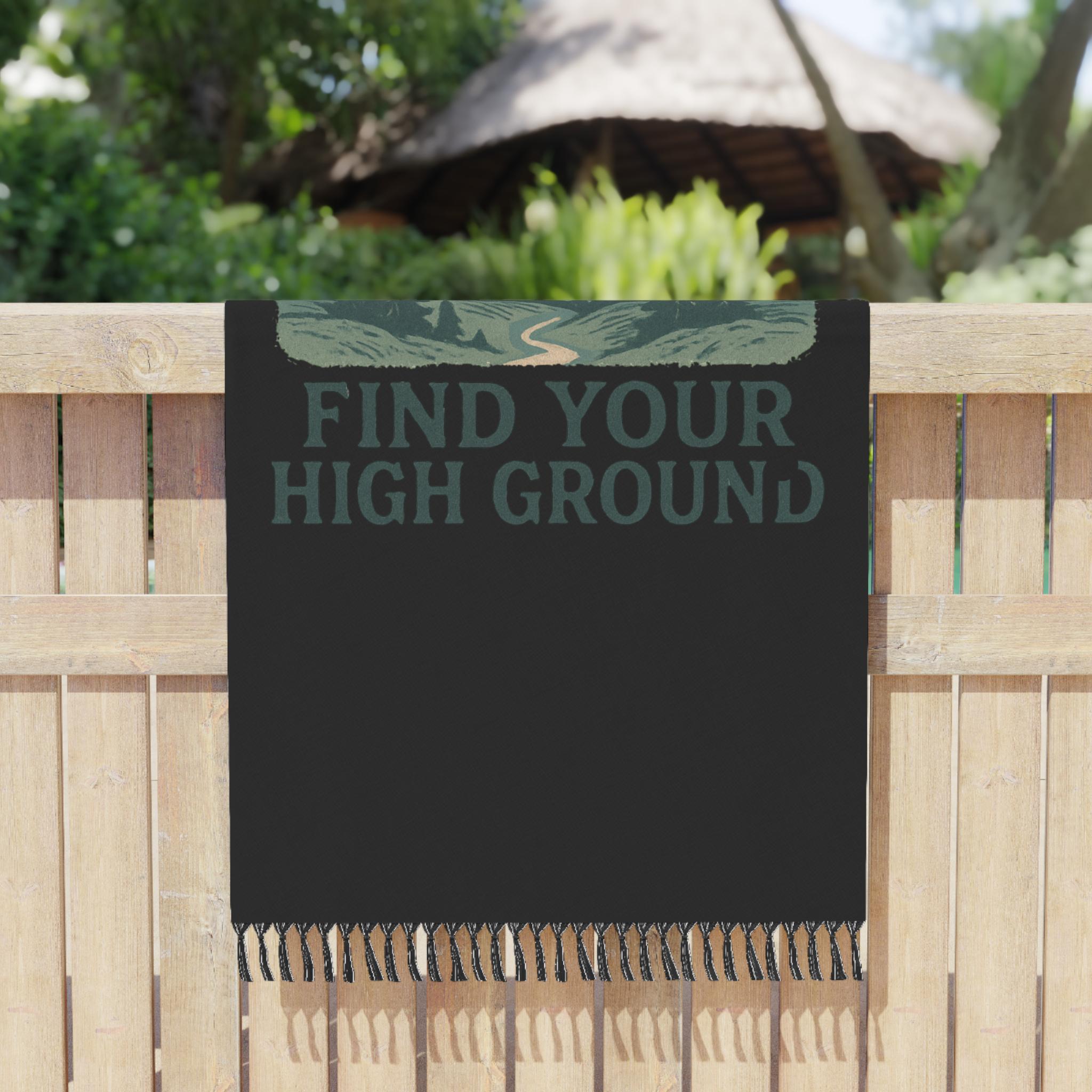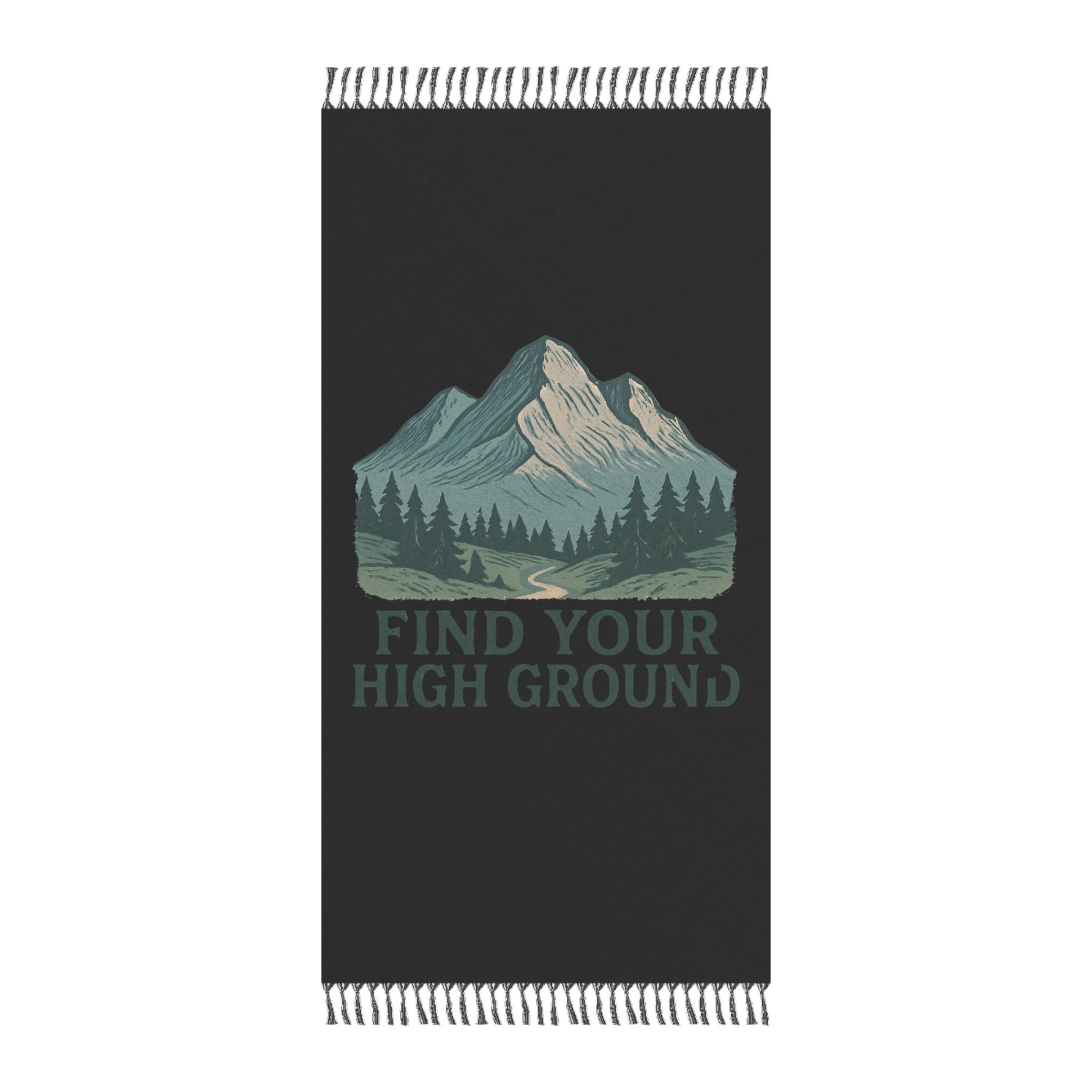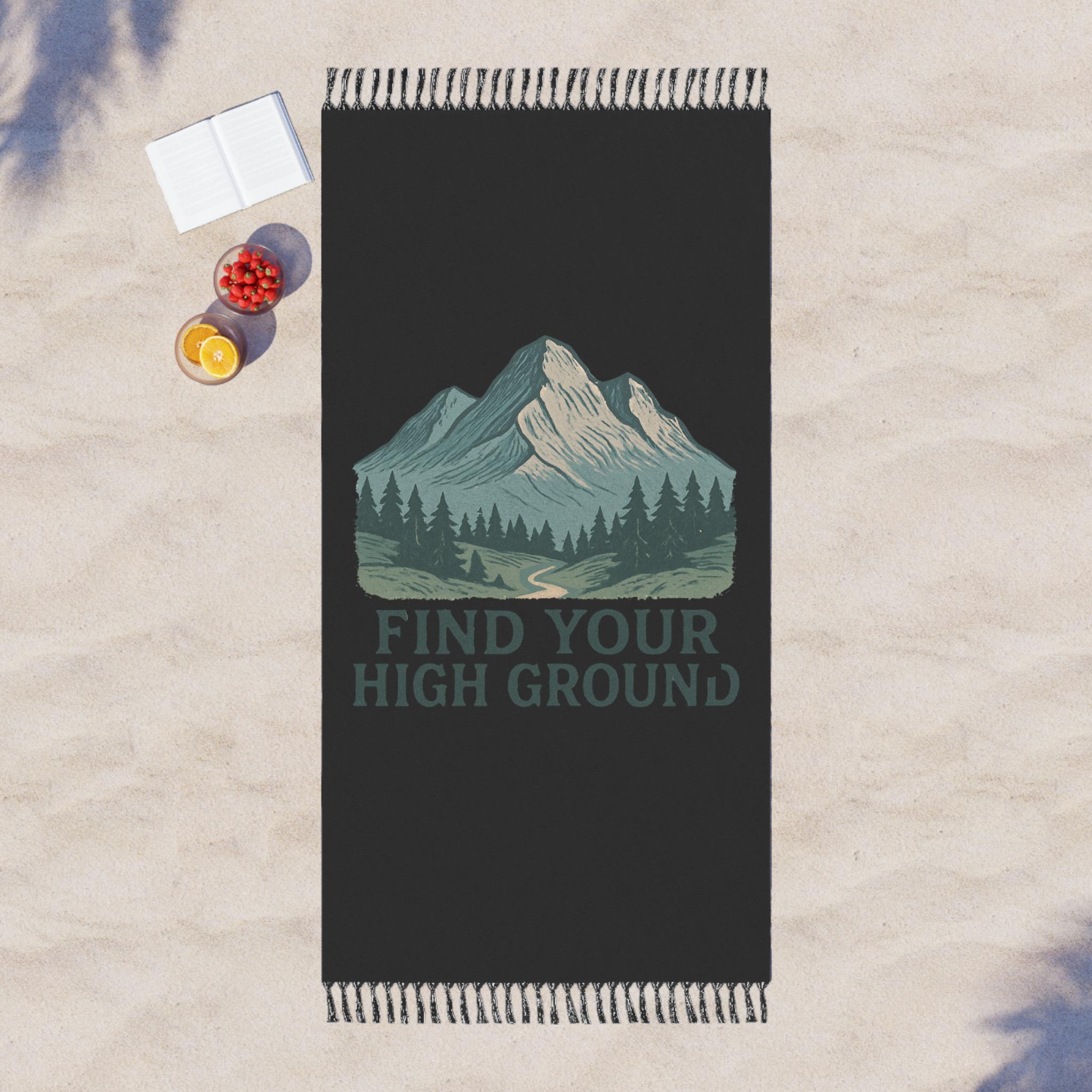 Wrap yourself in wanderlust with this boho beach cloth — a lightweight, artful layer that carries mountain air to the shoreline. The muted mountain illustration and hand-lettered “Find Your High Ground” line feel quiet and deliberate, like an early-morning hike before towns wake. Drape it over a sandy towel pile, use it as a picnic spread, or sling it round your shoulders when the ocean breeze turns cool. The slim profile and tasseled edges give it a relaxed, vintage vibe that fits into minimalist backpacks and coastal cabins alike. For those who chase trails and tide lines, it becomes a small ritual: unfurl, sit, breathe, and look up toward higher ground.