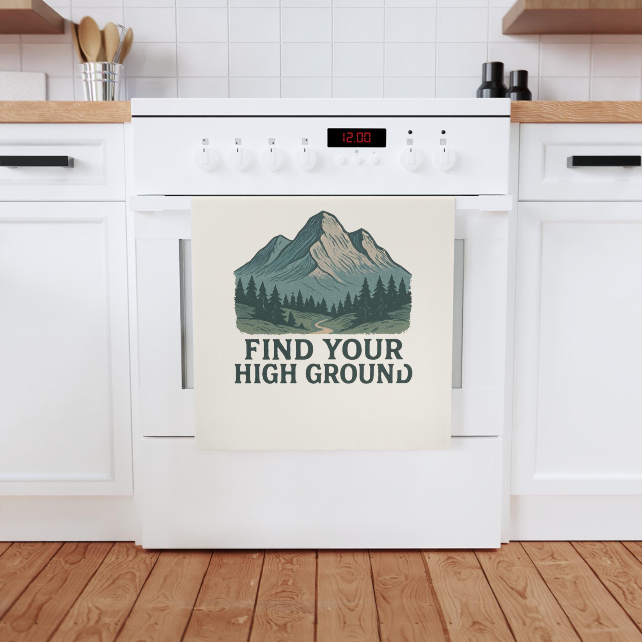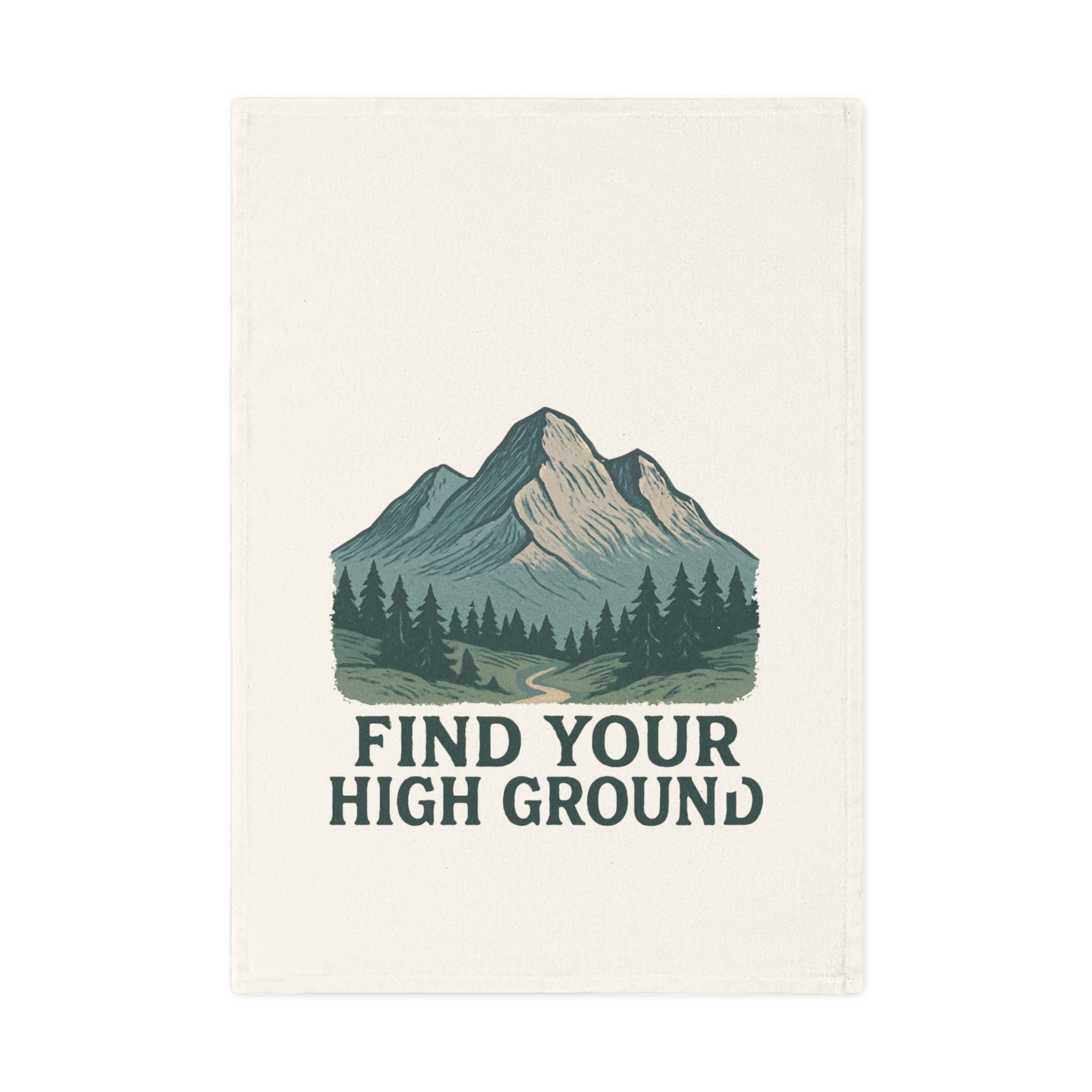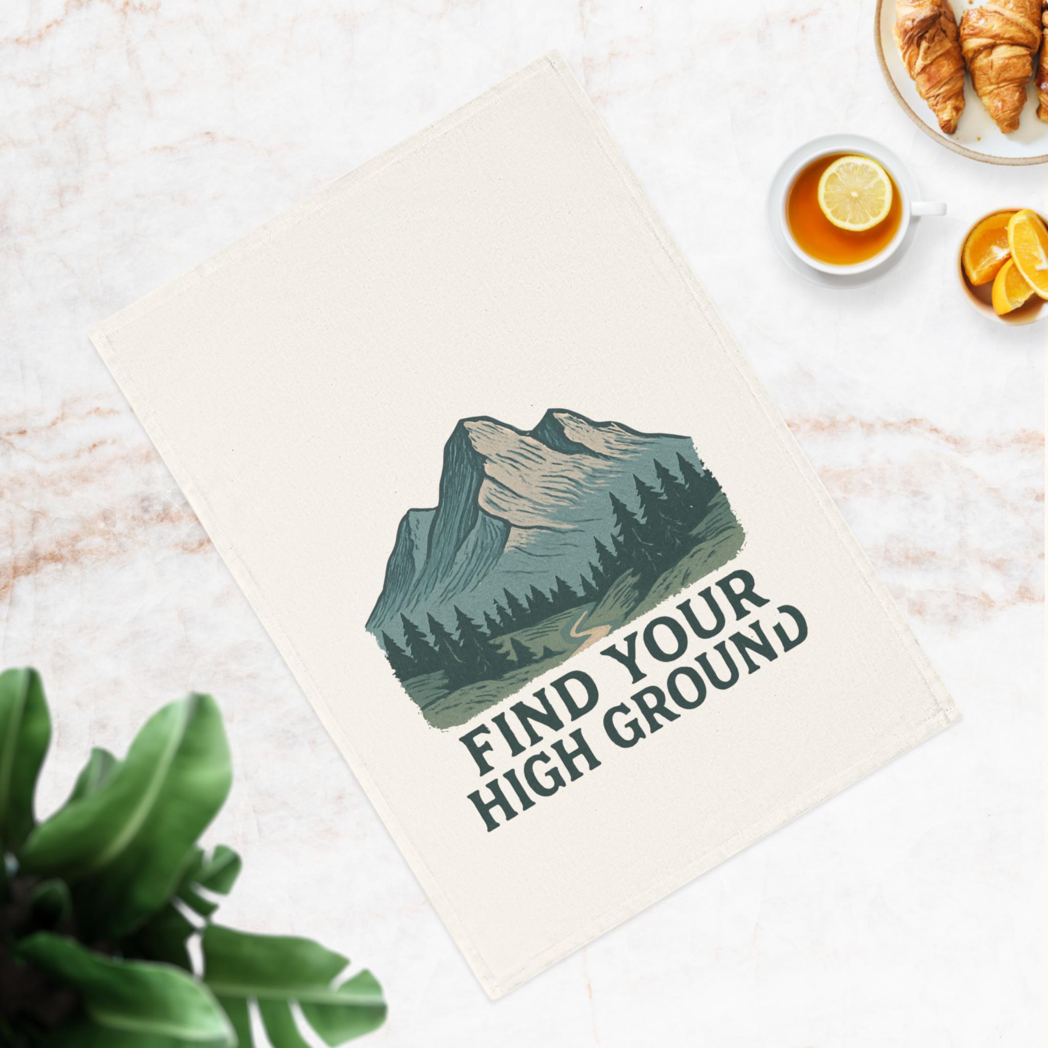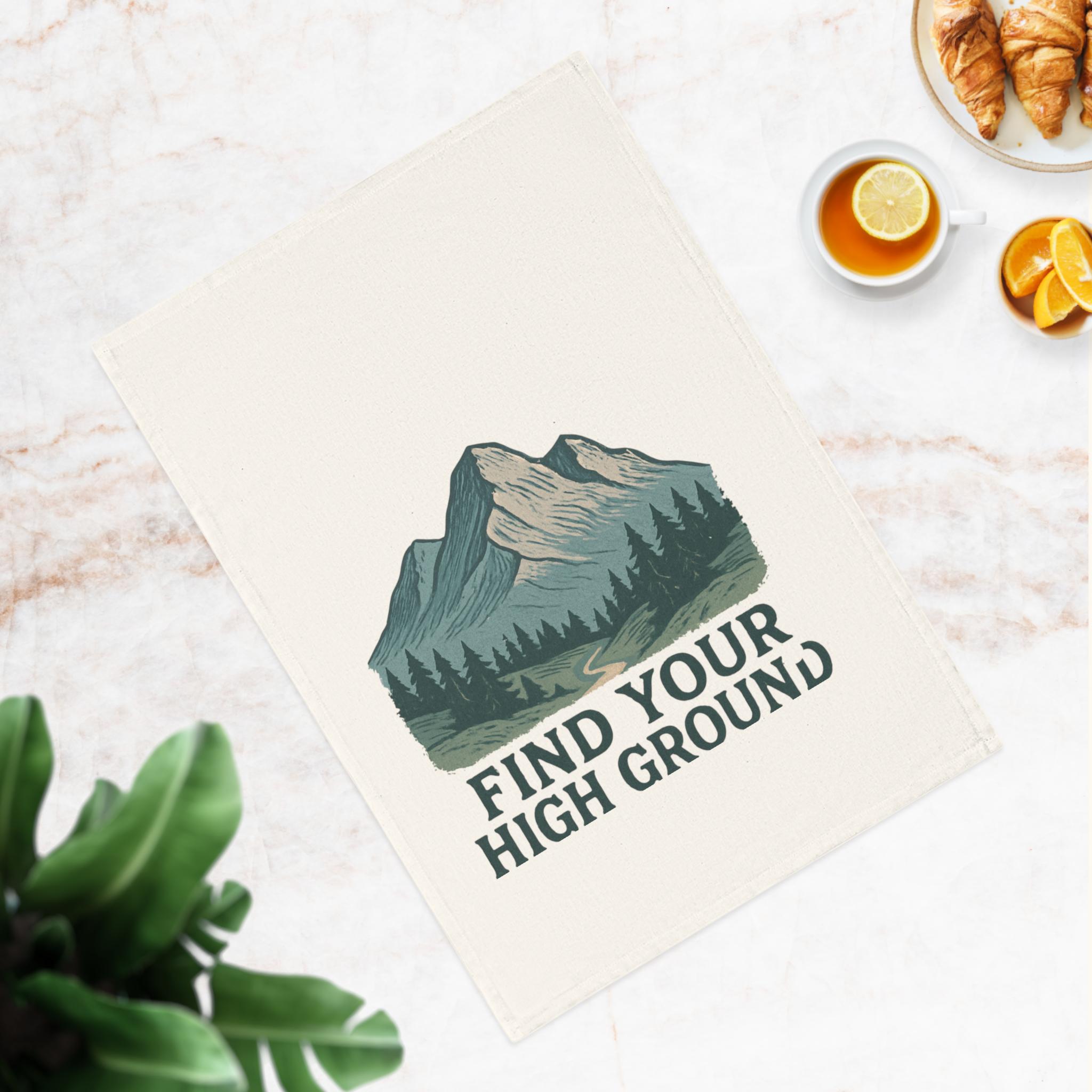 Find Your High Ground Cotton Tea Towel | Mountain Landscape, Hiking Quote