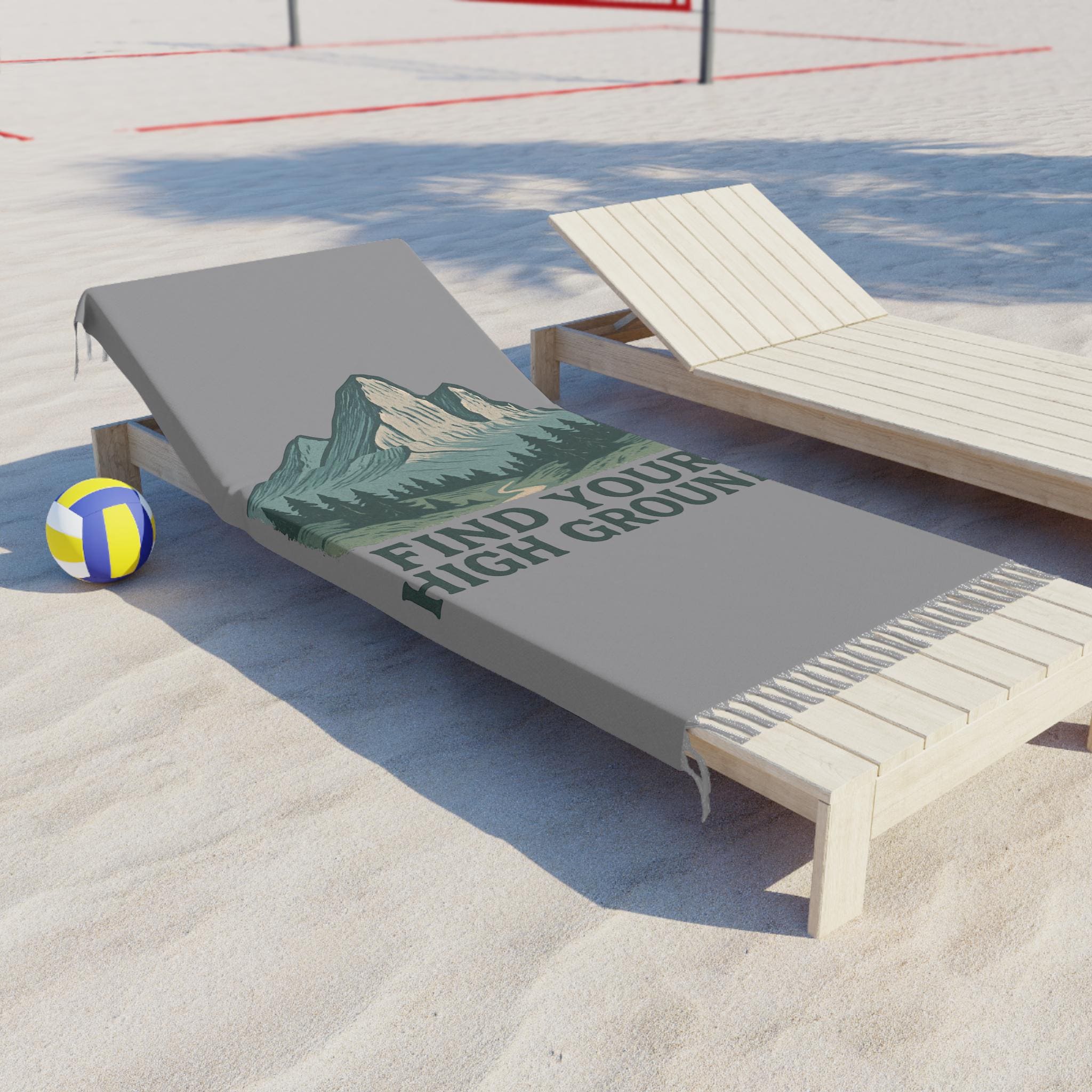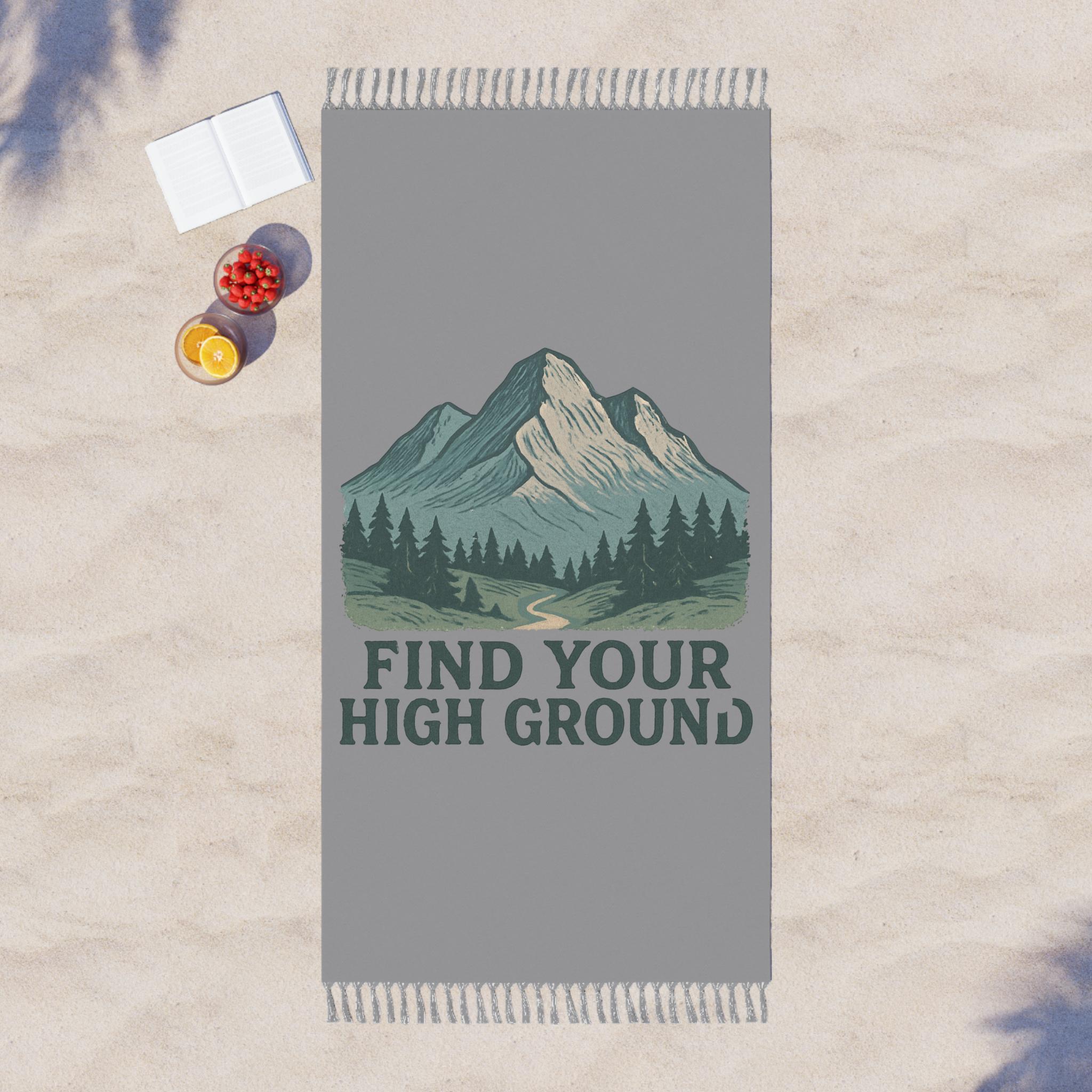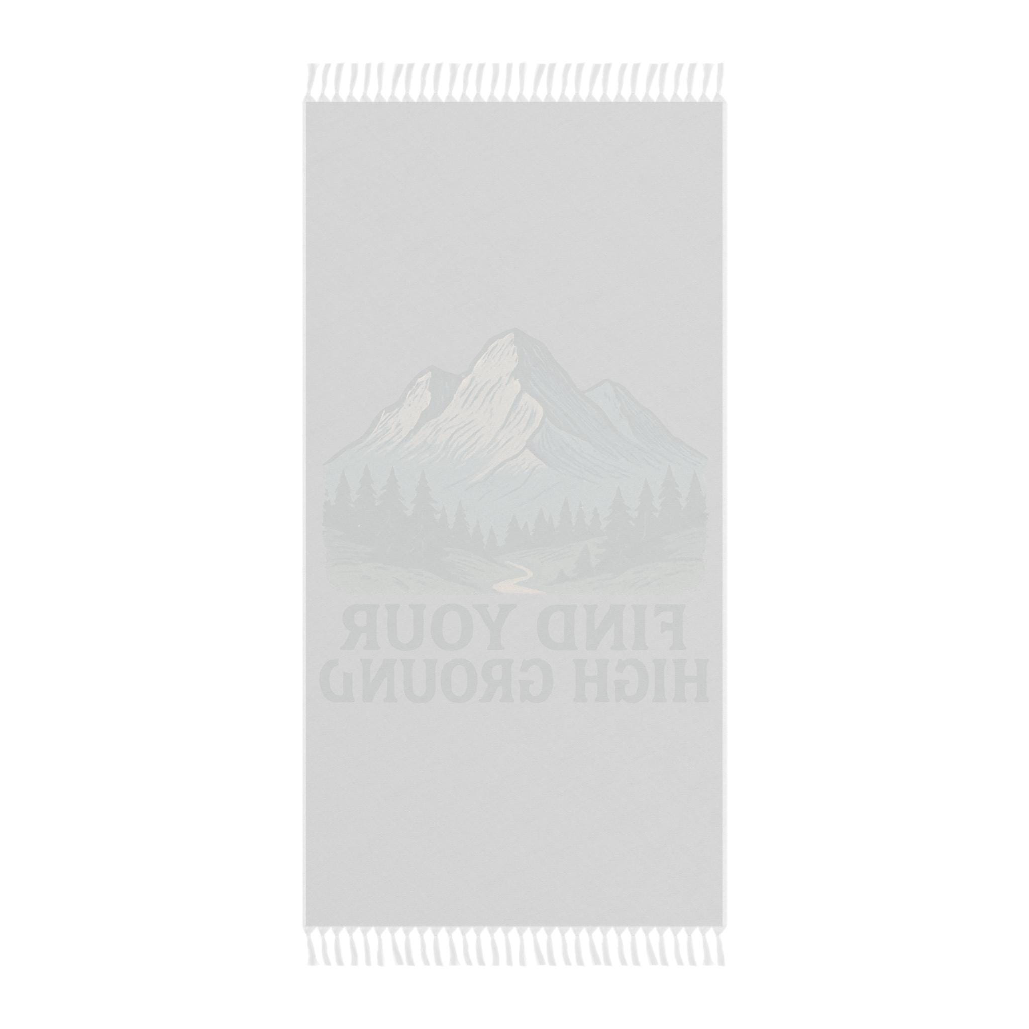 A lightweight, travel-ready beach cloth that brings a quiet outdoor spirit to your days by the water. The neutral gray background and hand-drawn mountain scene feel like a sketch from a favorite trail map, while the phrase “Find Your High Ground” invites a moment of calm and perspective. Use it as a sandy-day wrap, a picnic spread under pines, or a warm layer on chilly evening strolls. The knotted tassel edges add a tactile, bohemian touch that drifts between coastal and cabin style — it wears in with you, not against you.