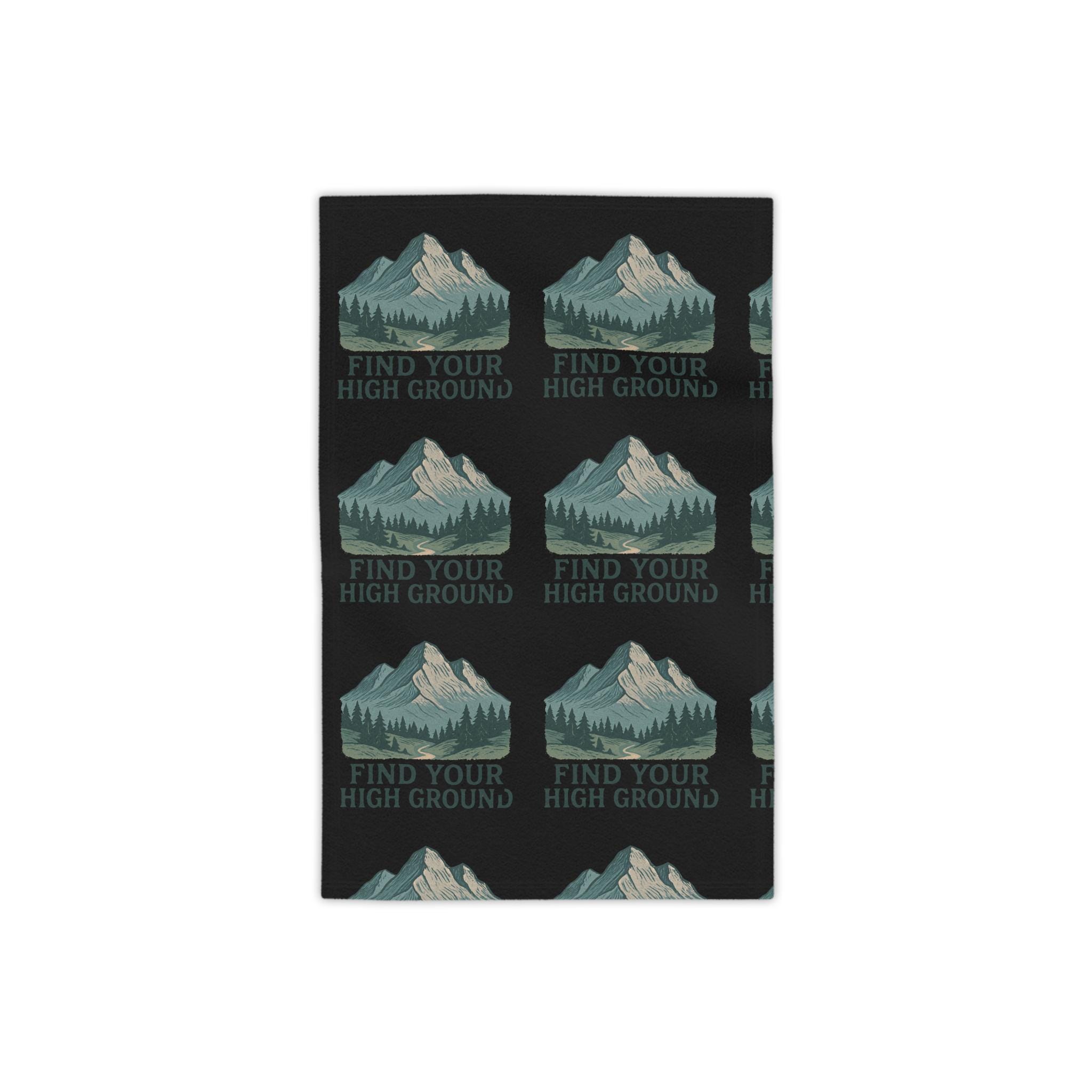 Spread out, breathe, and let the mountains do the talking. This towel carries a quiet, vintage-inspired ridge scene—misty peaks, a band of firs, and the words “Find Your High Ground”—all printed edge-to-edge on a deep, charcoal field. It’s light enough to sling over a pack, absorbent enough to dry off after a cold plunge, and soft against sun-warmed skin. Bring it to dawn hikes, lake dips, or slow beach mornings when you want something that feels like a companion for getting outside and finding a little altitude for the mind.