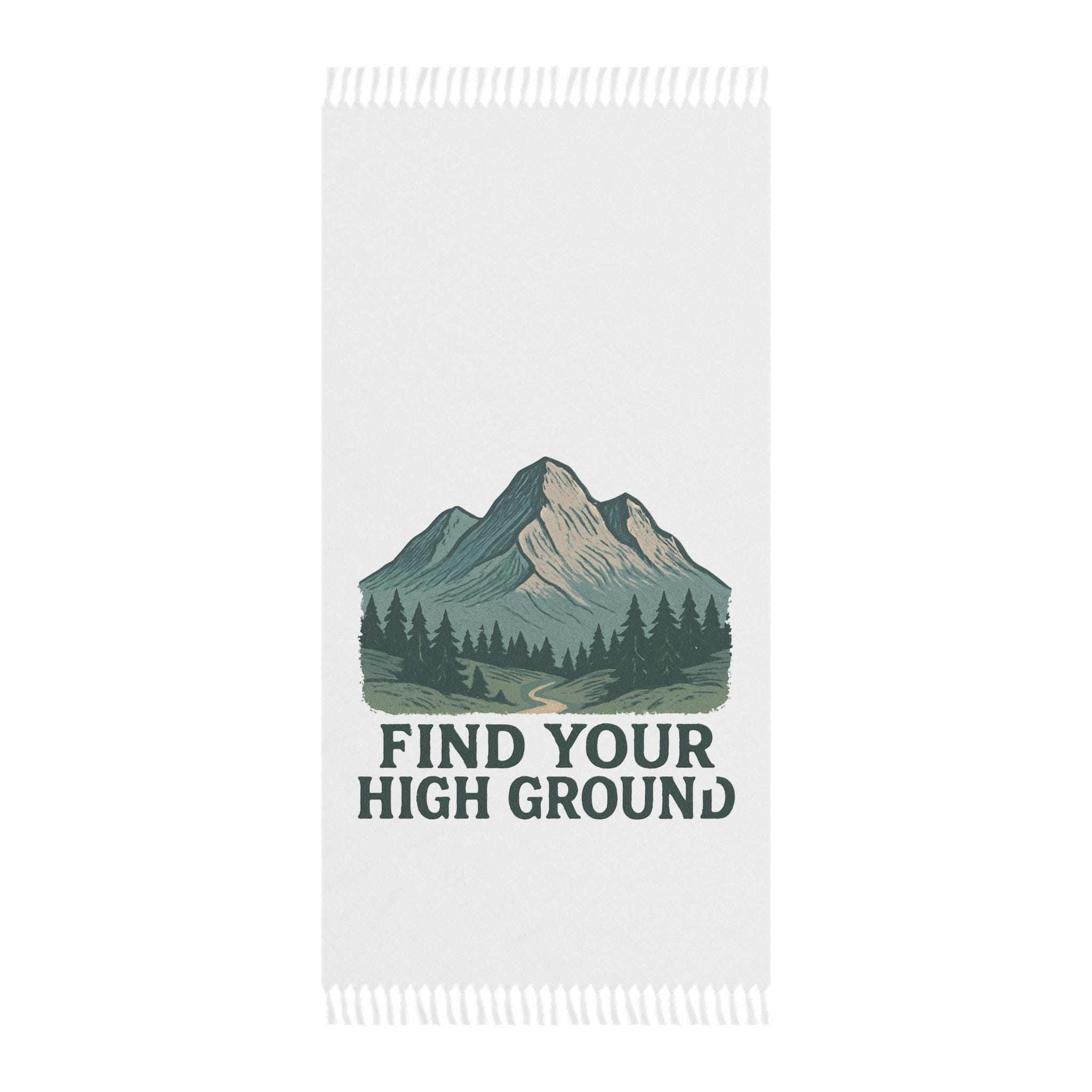 A lightweight, travel-ready beach cloth designed for people who chase quiet summits and sunrise views. The cloth features a serene mountain and forest illustration with the phrase “Find Your High Ground,” printed in muted greens and slate tones that blend into outdoor palettes. At 38" × 81", it’s large enough to spread out on sand, a picnic lawn, or a campsite clearing; the quick-dry polyester and 1.5mm thickness mean it packs small and dries fast after a dip. Knotted tassels frame each short edge, giving it a relaxed, bohemian feel that suits beach days, trail breaks, and long road-trip stops. The single-sided print keeps the artwork crisp where it counts, and the multifunctional sizing lets it act as a towel, picnic blanket, or wrap when the evening wind picks up.