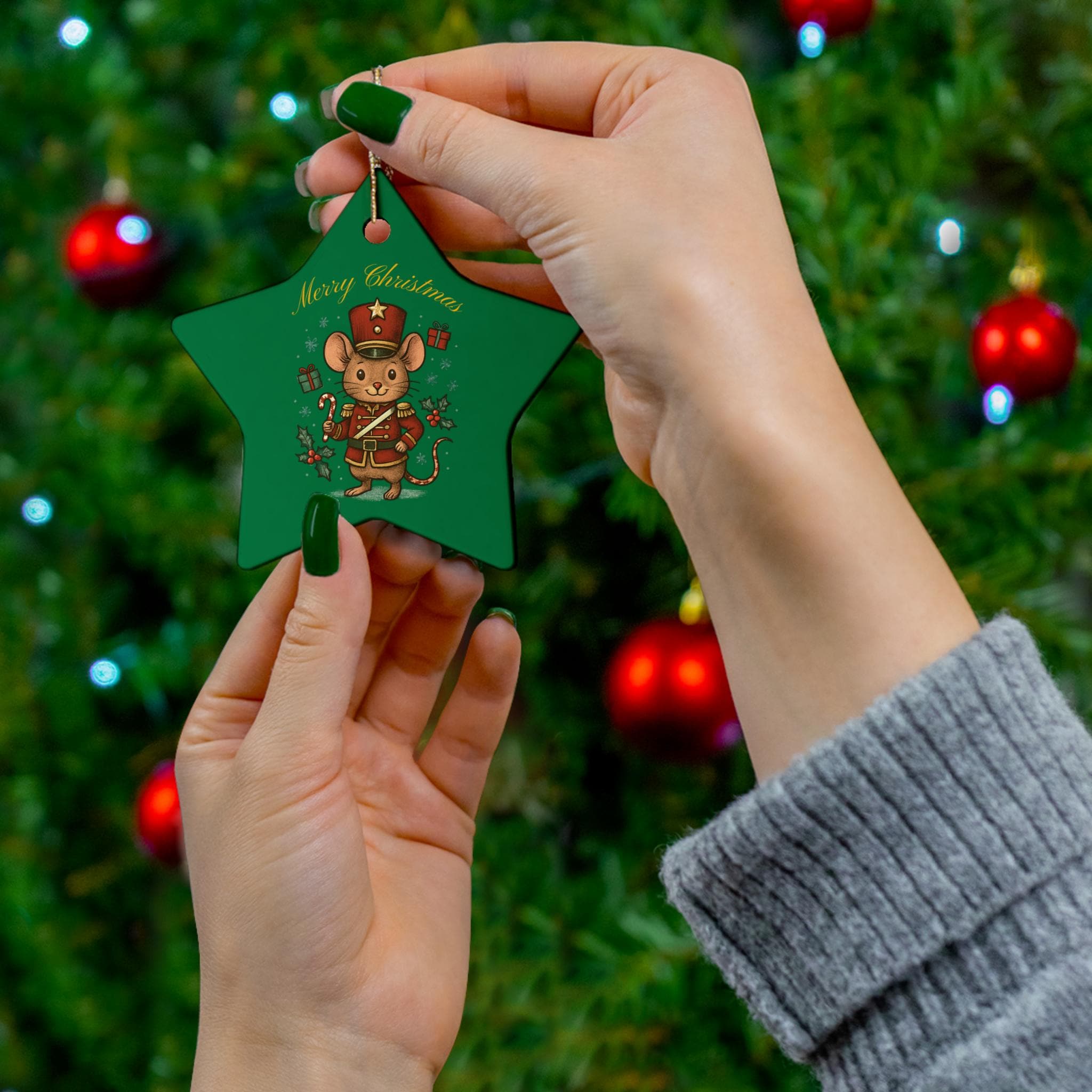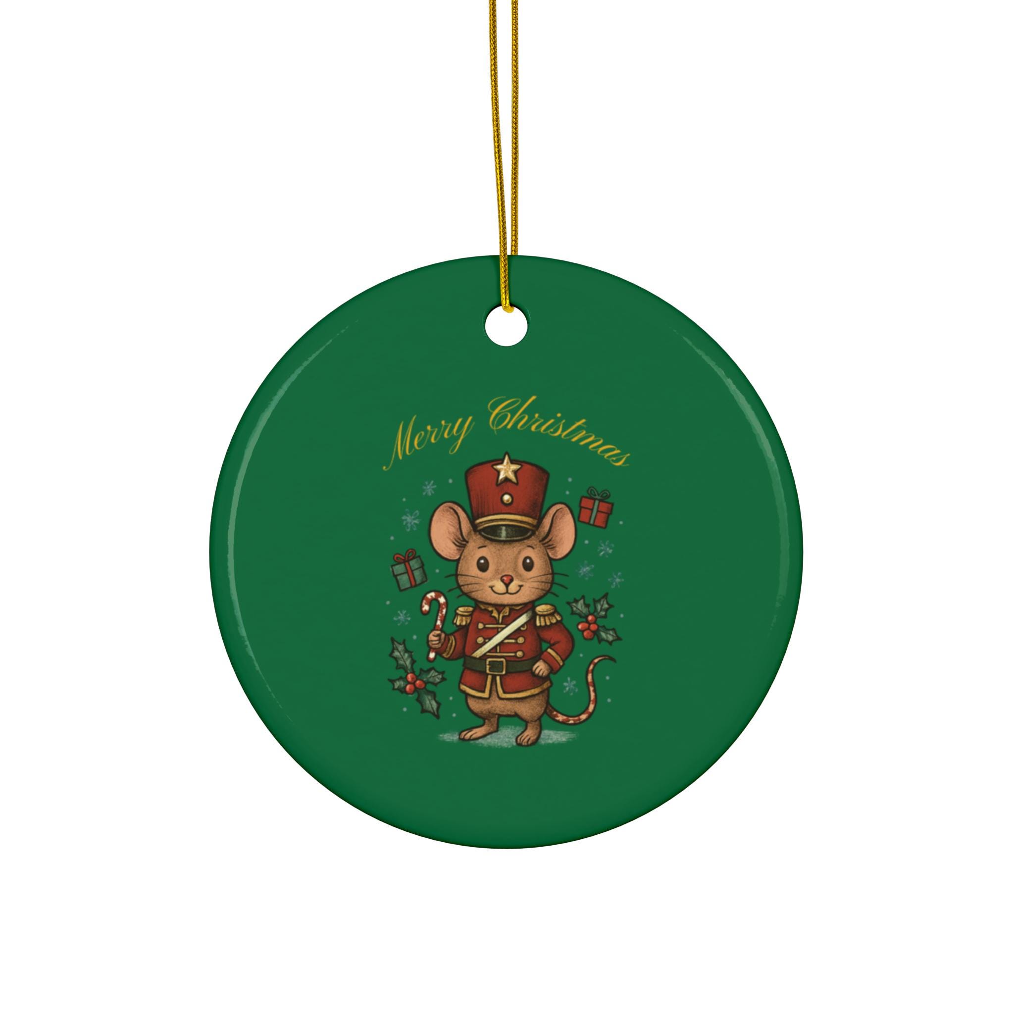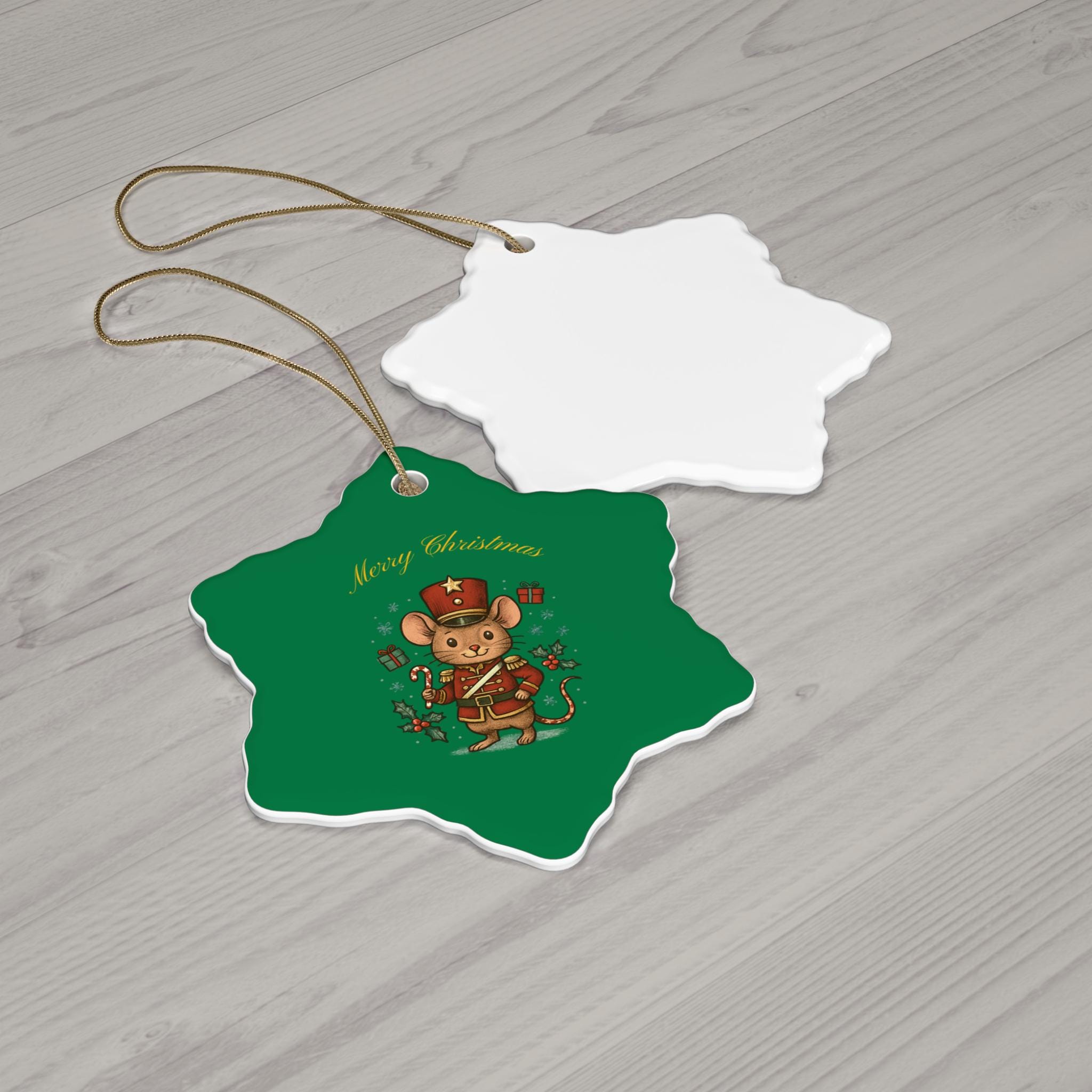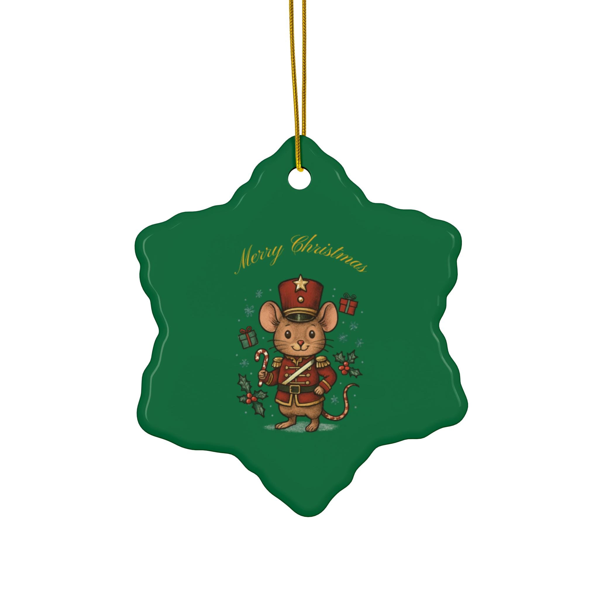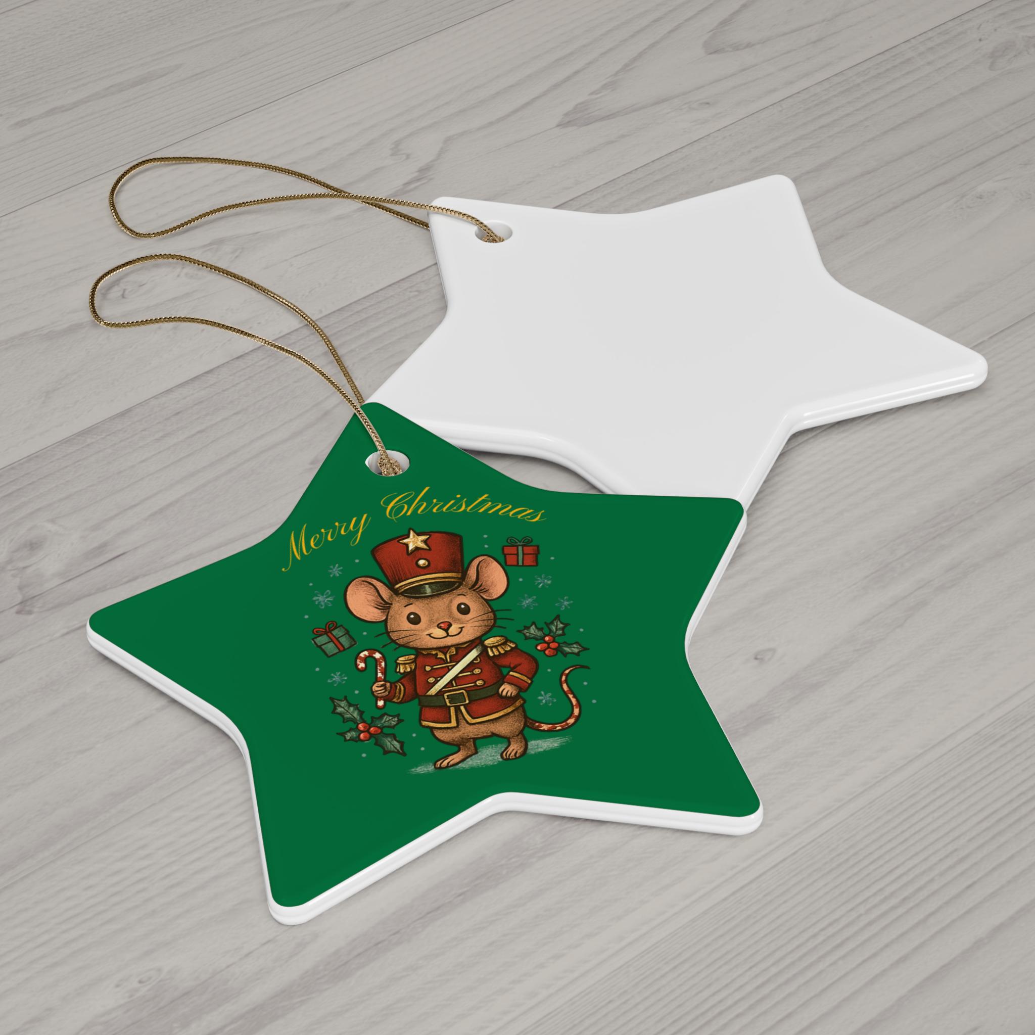 Nutcracker Mouse Ceramic Ornament | Star Shape, Merry Christmas