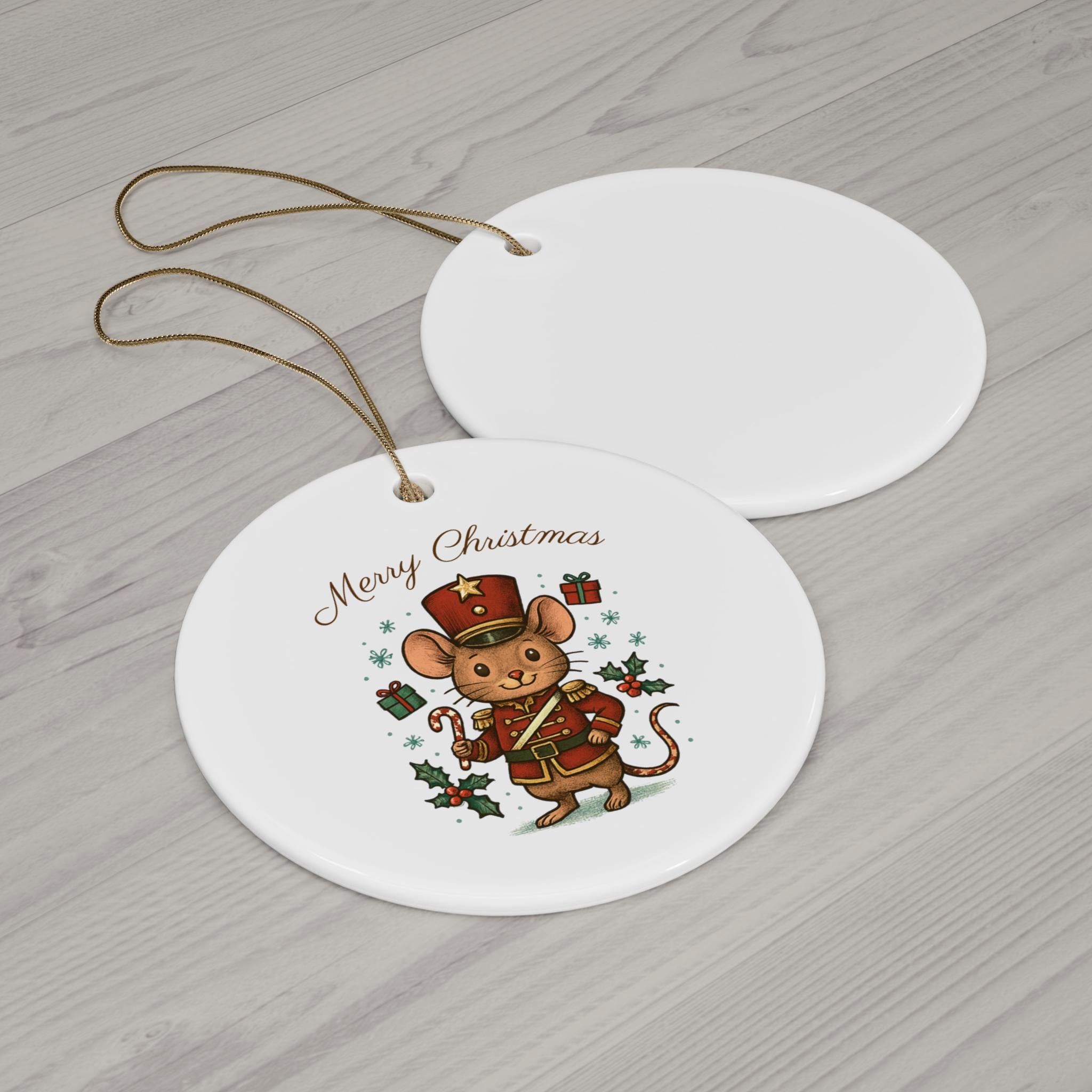 Merry Christmas Mouse Nutcracker Ceramic Ornament