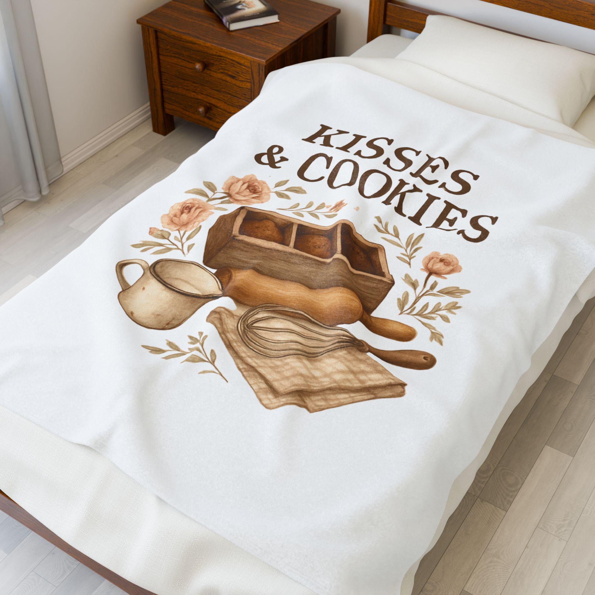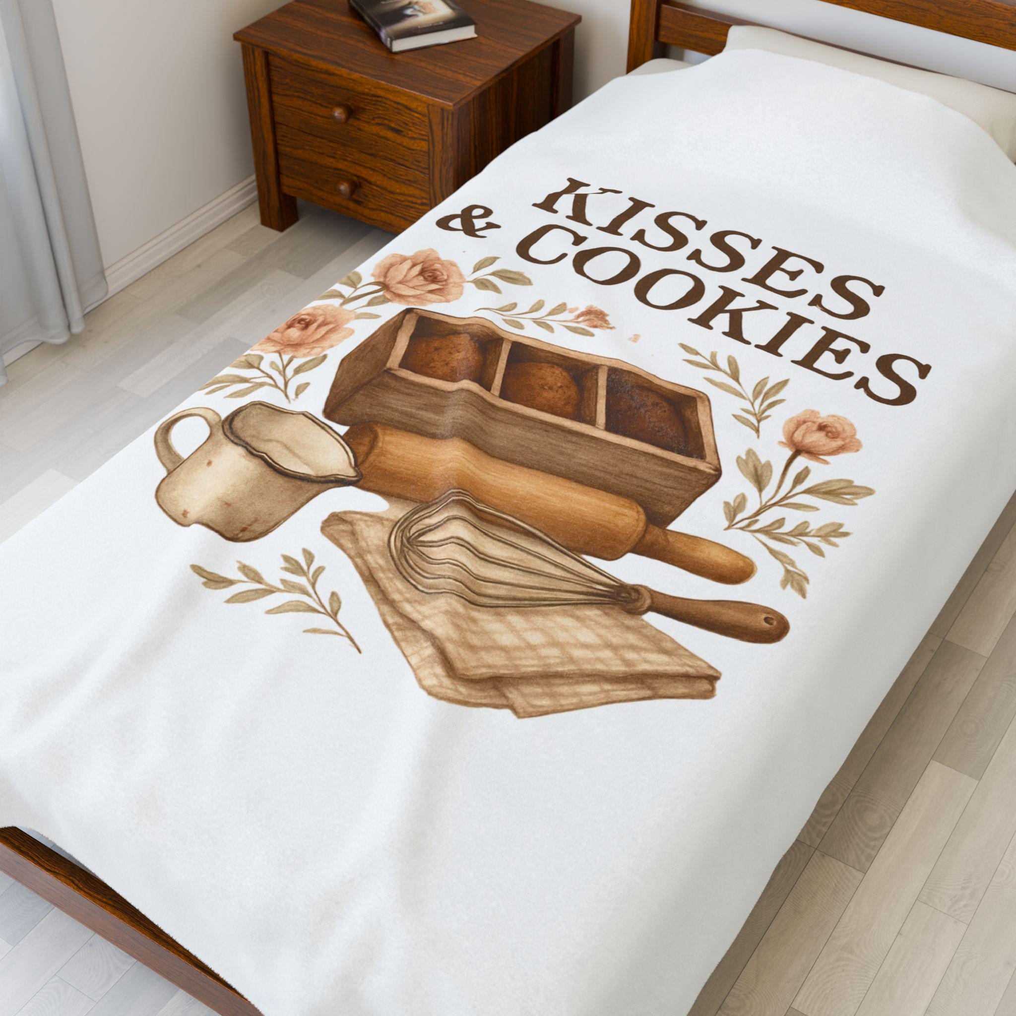 Kisses & Cookies Velveteen Blanket | Baking Kitchen Decor, Cozy Throw