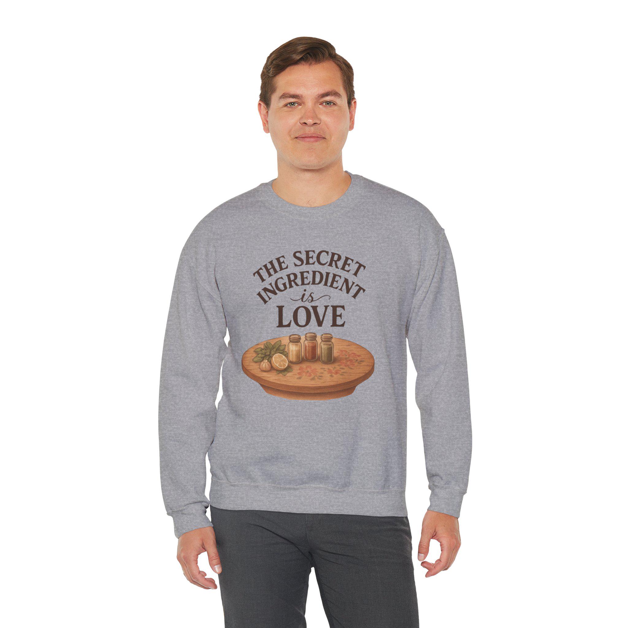 The Secret Ingredient Is Love Sweatshirt | Baking Heart Illustration