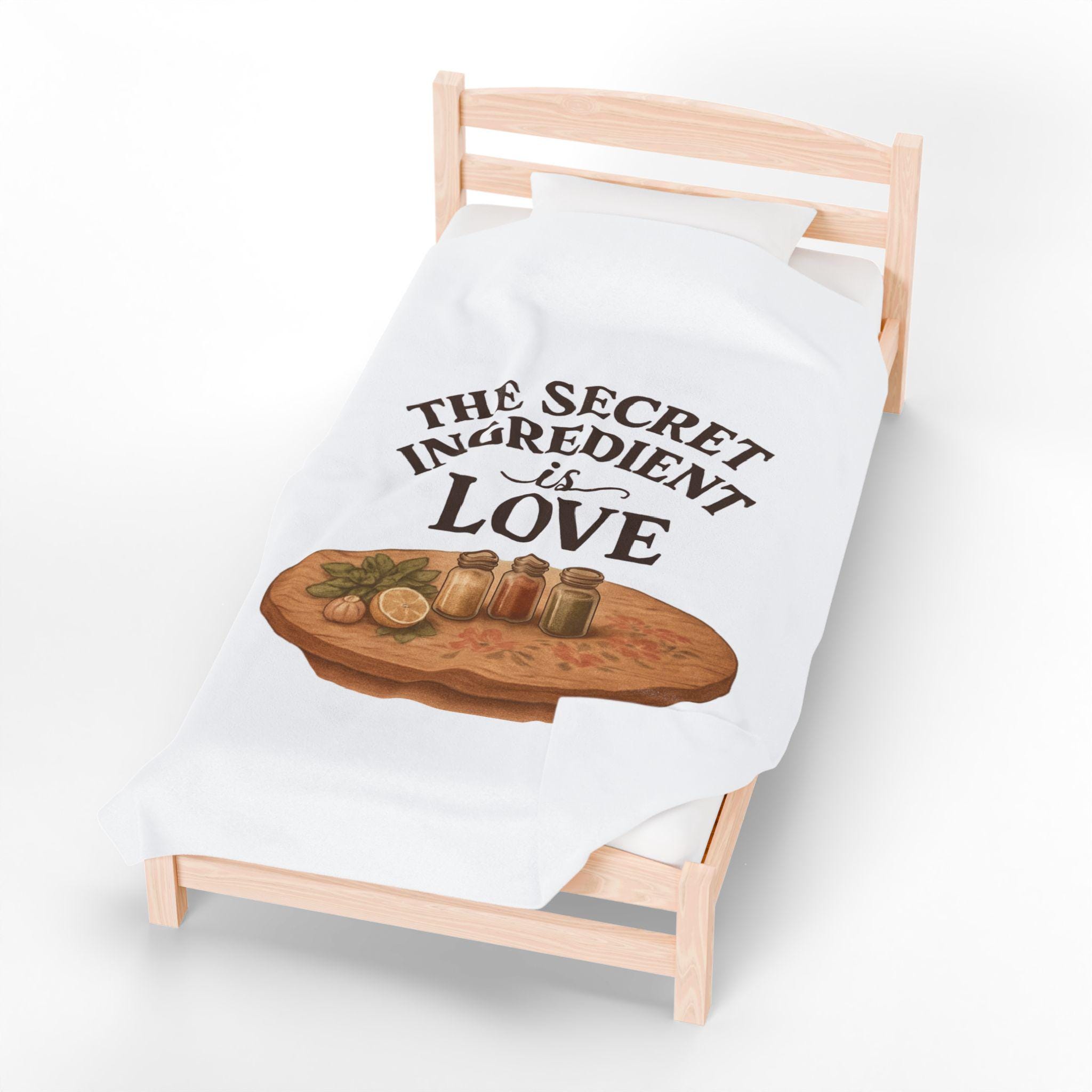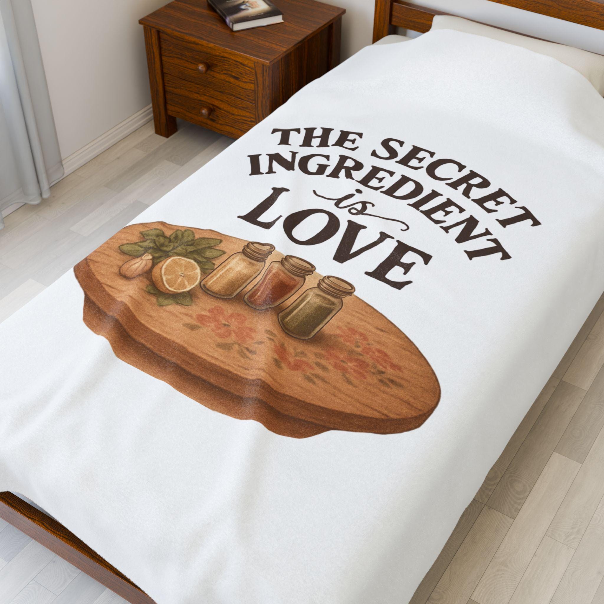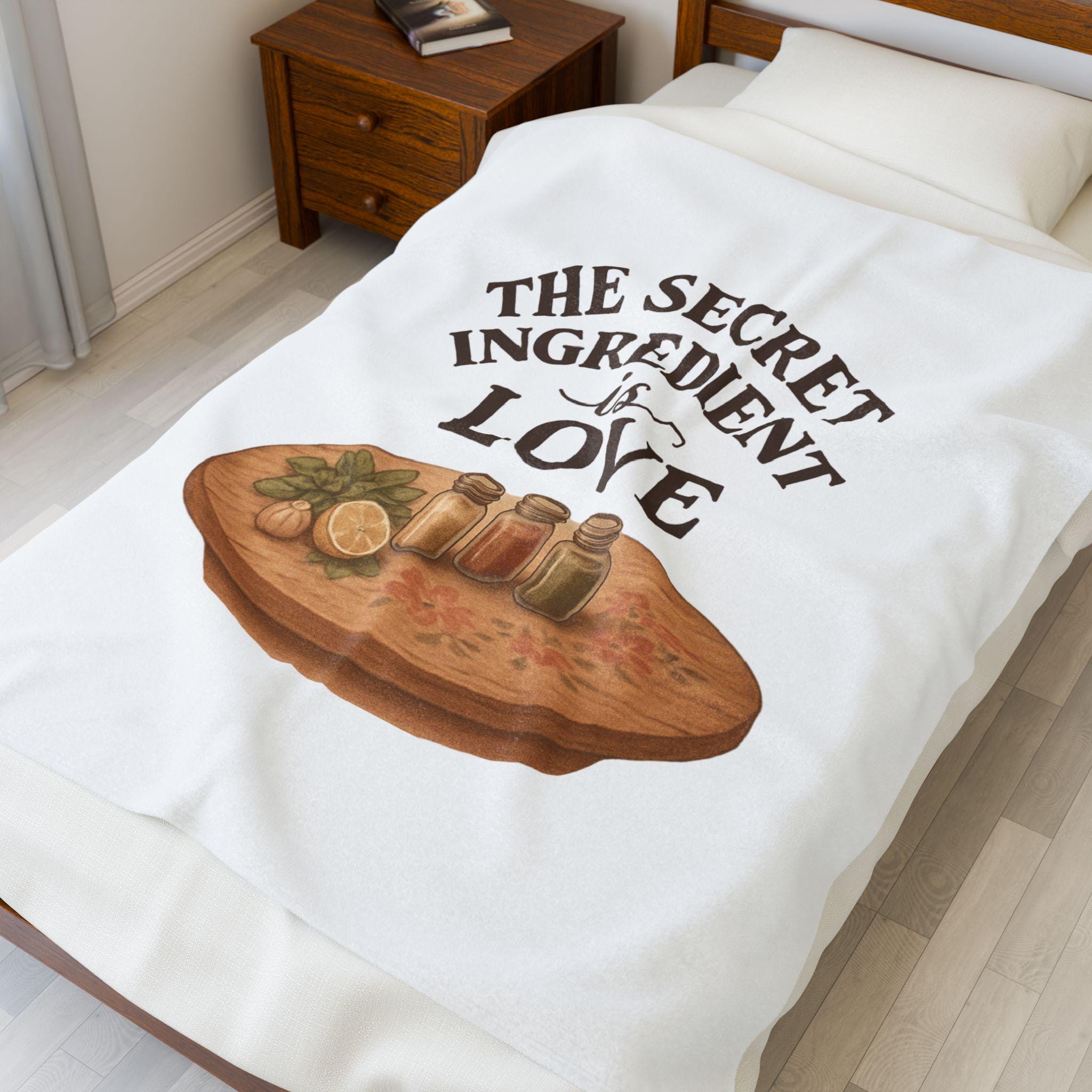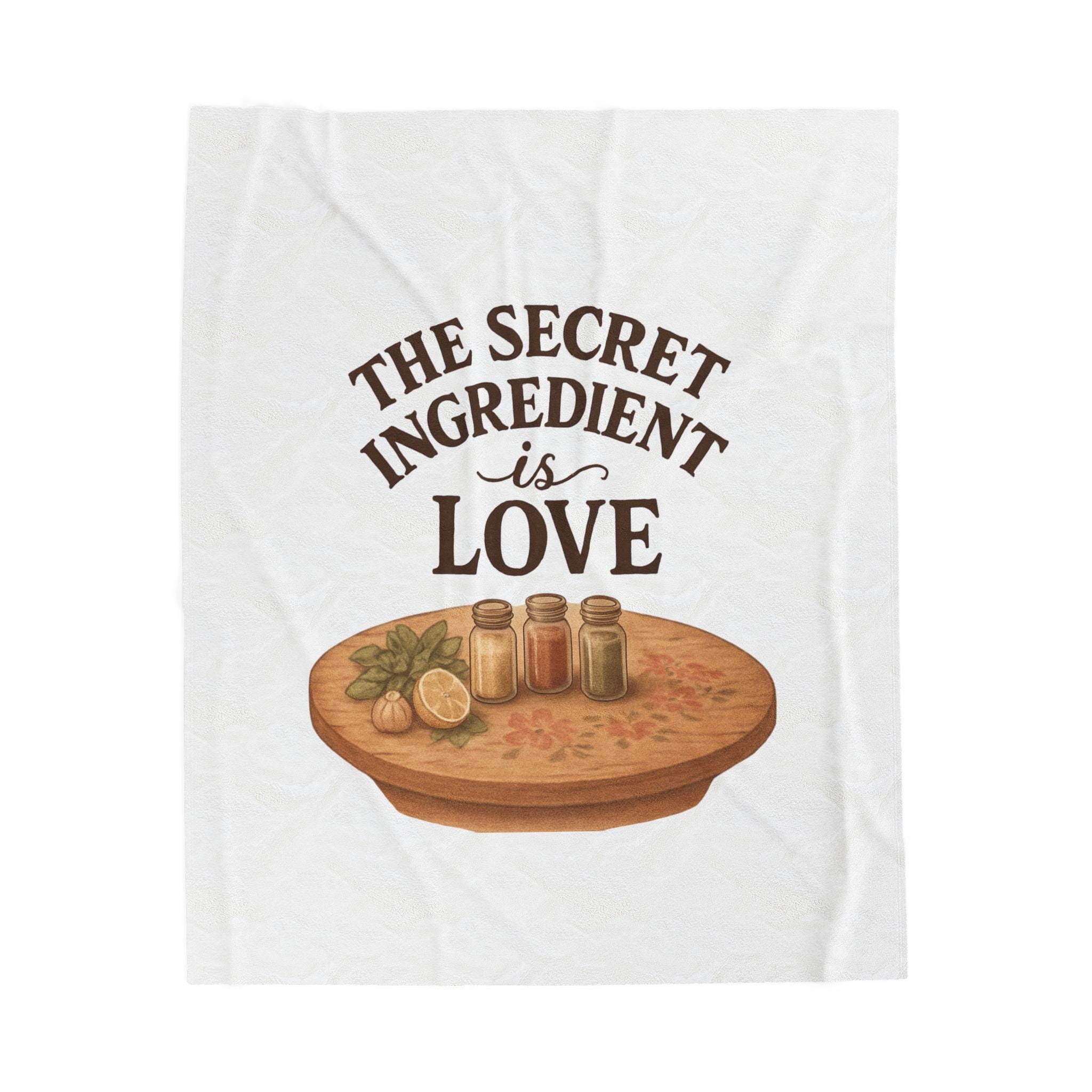 The Secret Ingredient Is Love Velveteen Blanket | Kitchen Spice Illustration