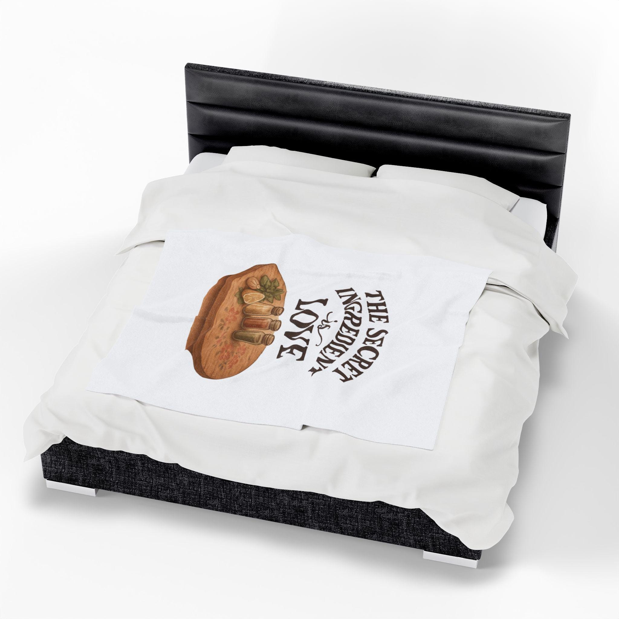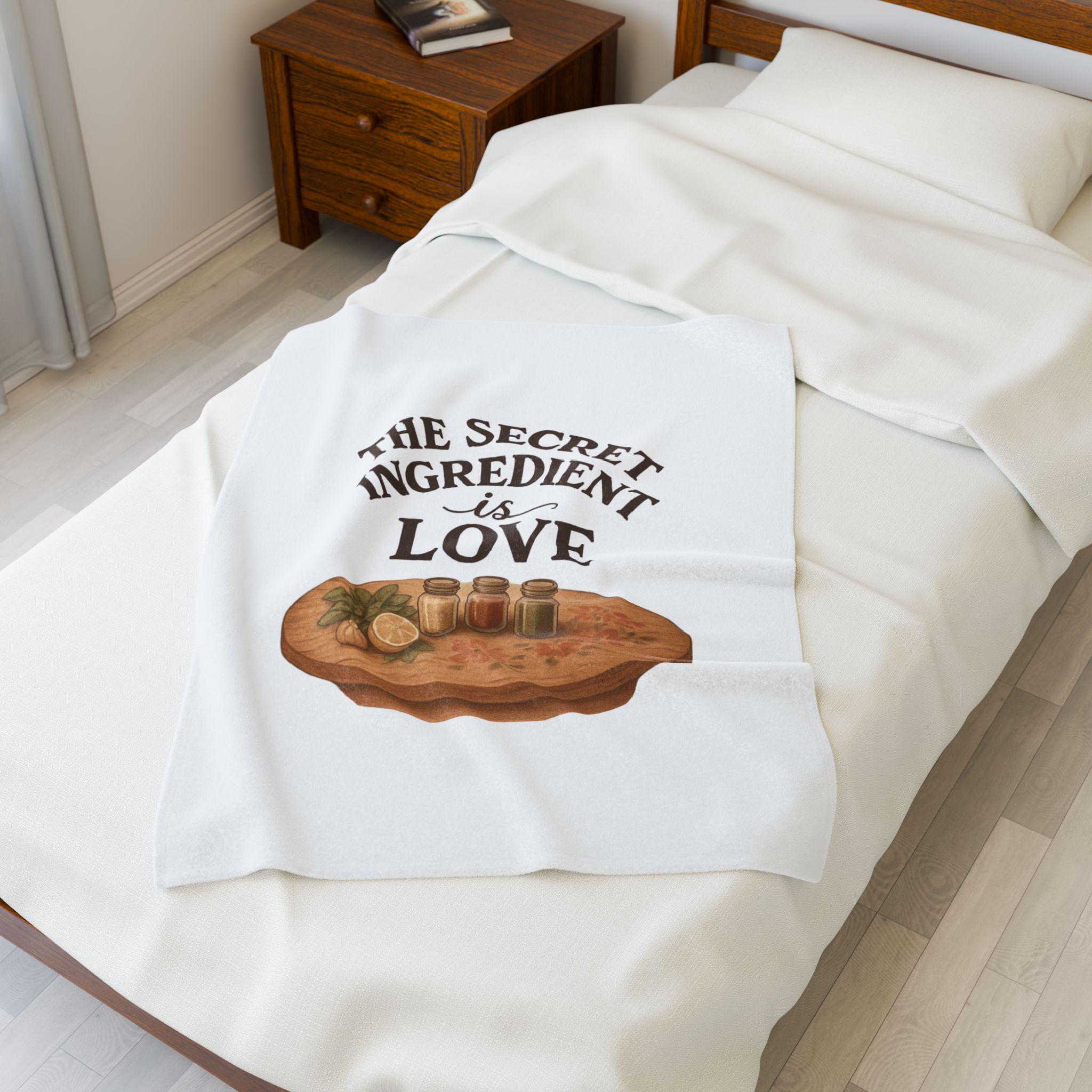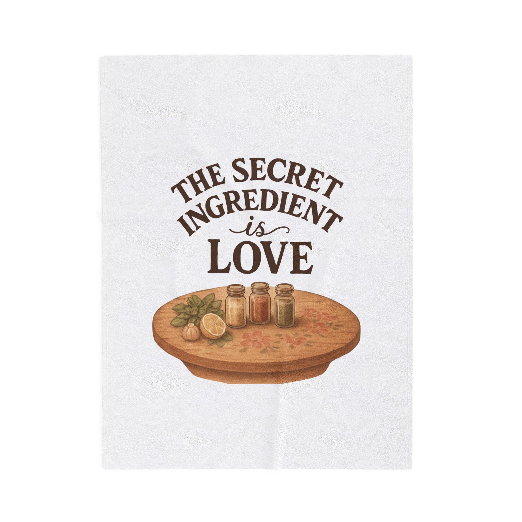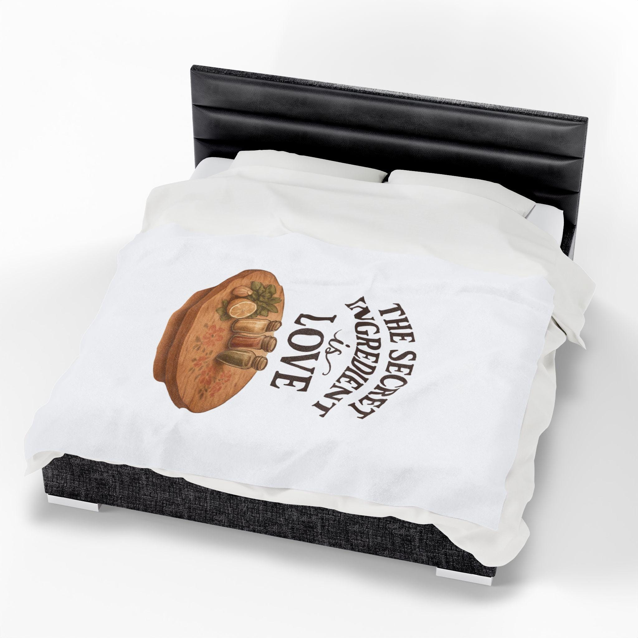 The Secret Ingredient Is Love Velveteen Blanket | Kitchen Spice Illustration