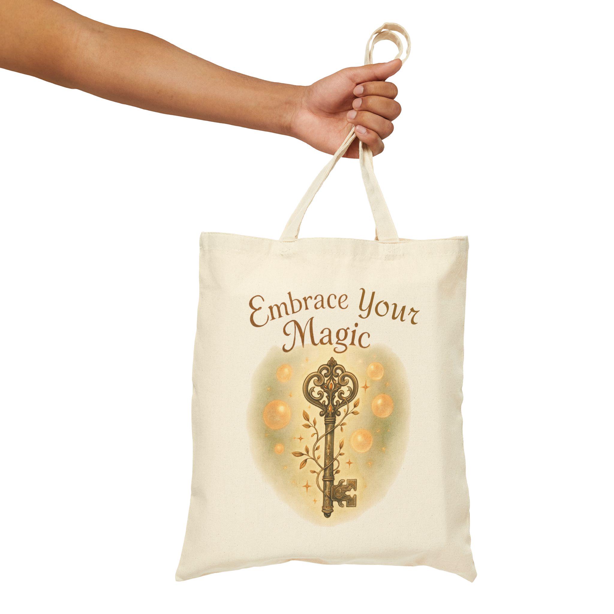 Vintage Key Cotton Canvas Tote Bag | Embrace Your Magic Print