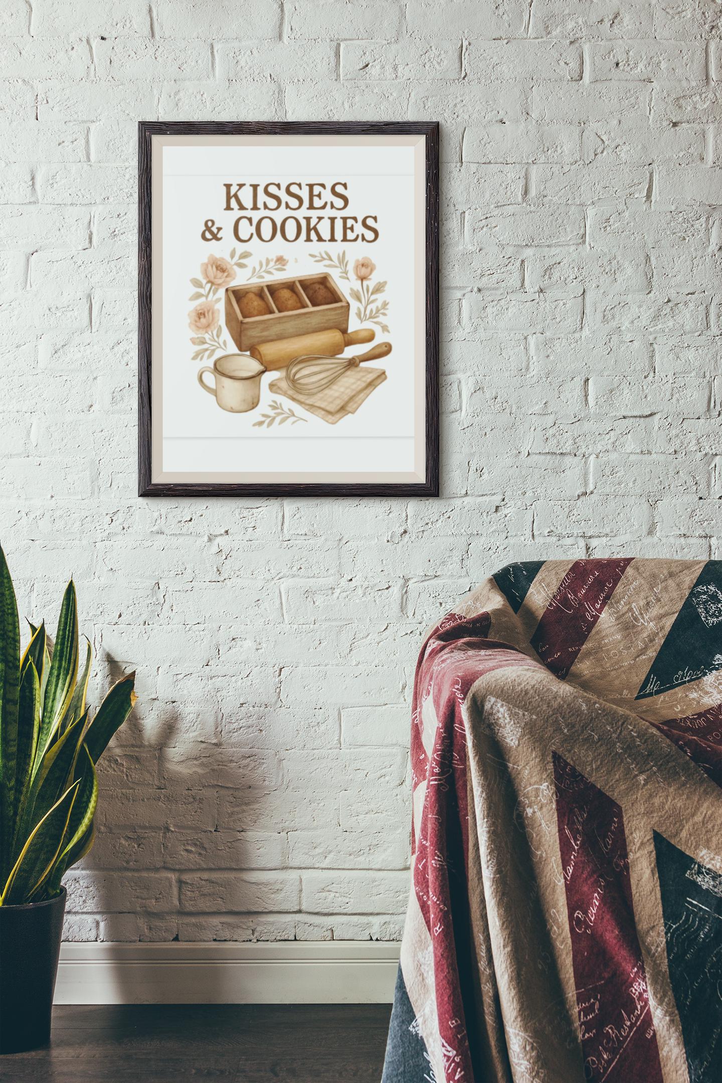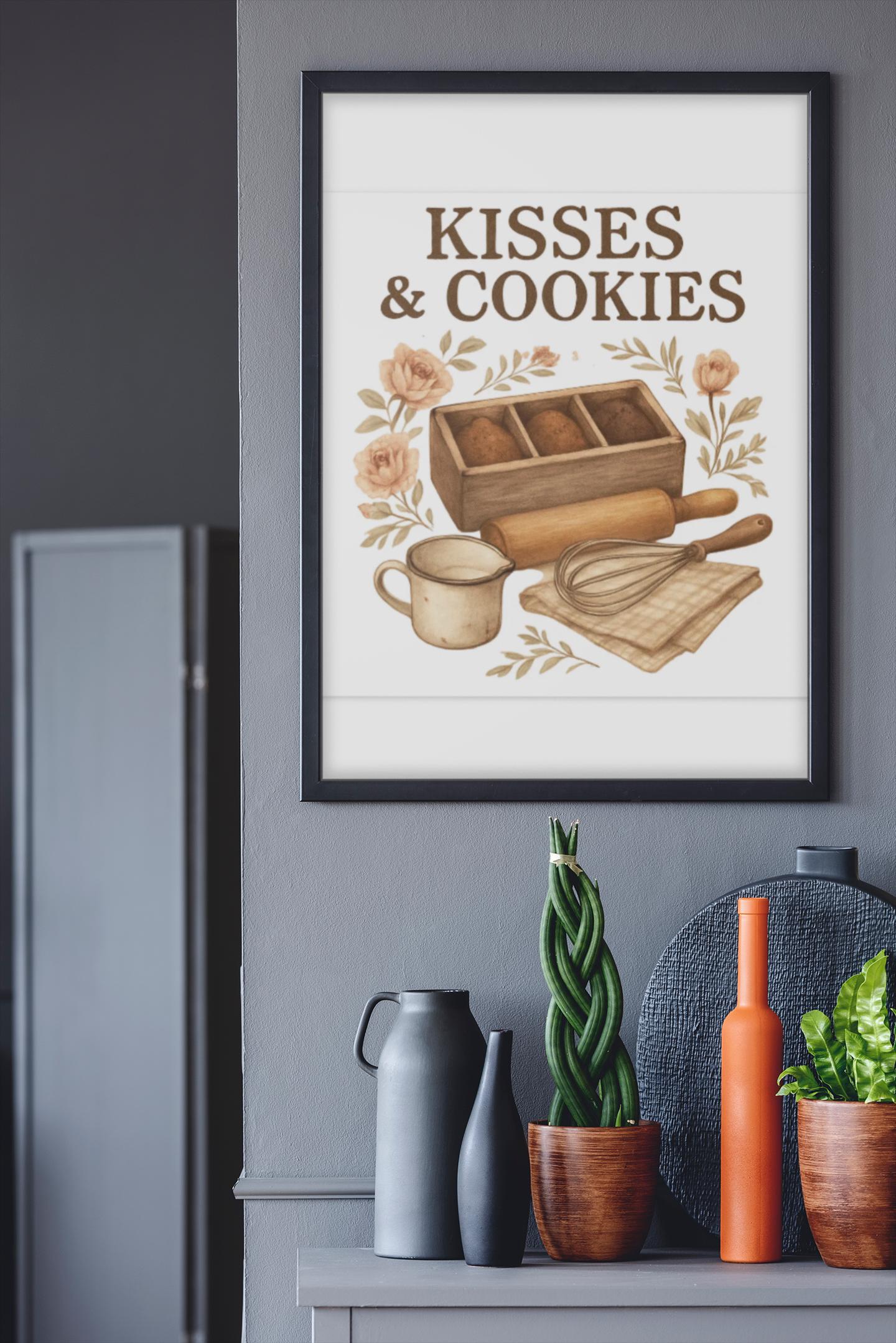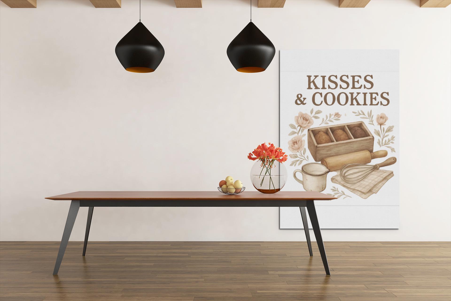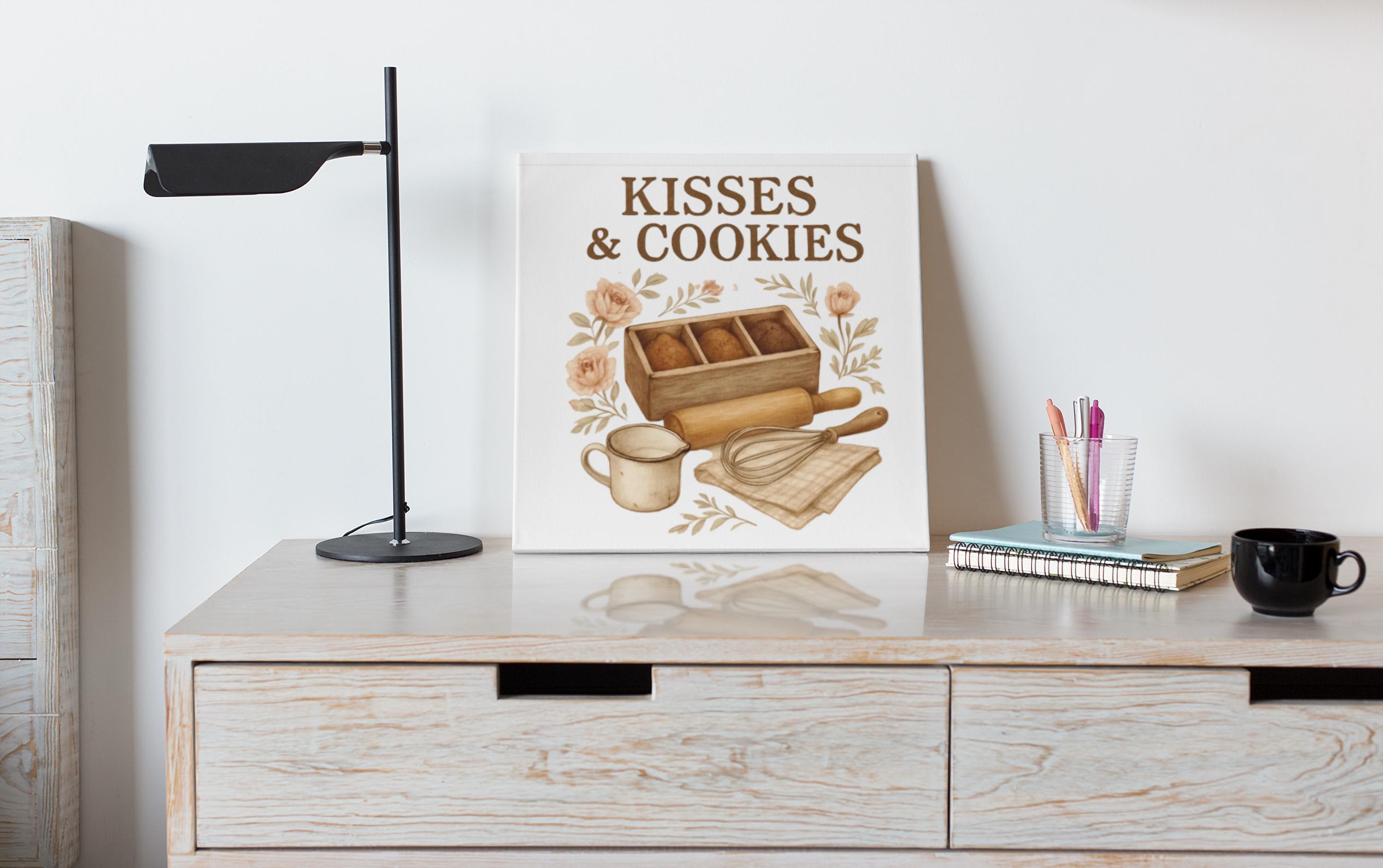Kisses & Cookies Canvas | Kitchen Baking Wall Art, Matte Stretched Canvas