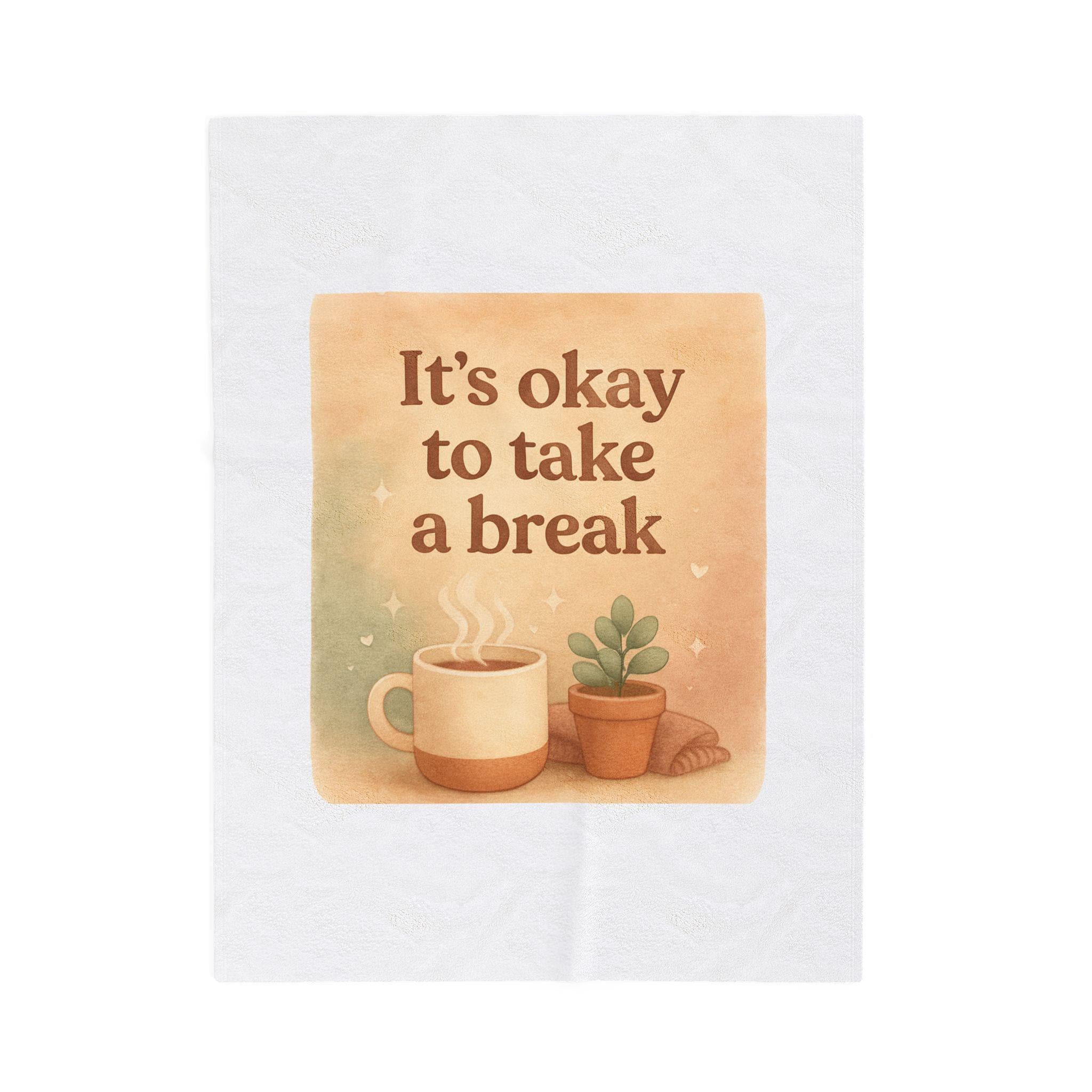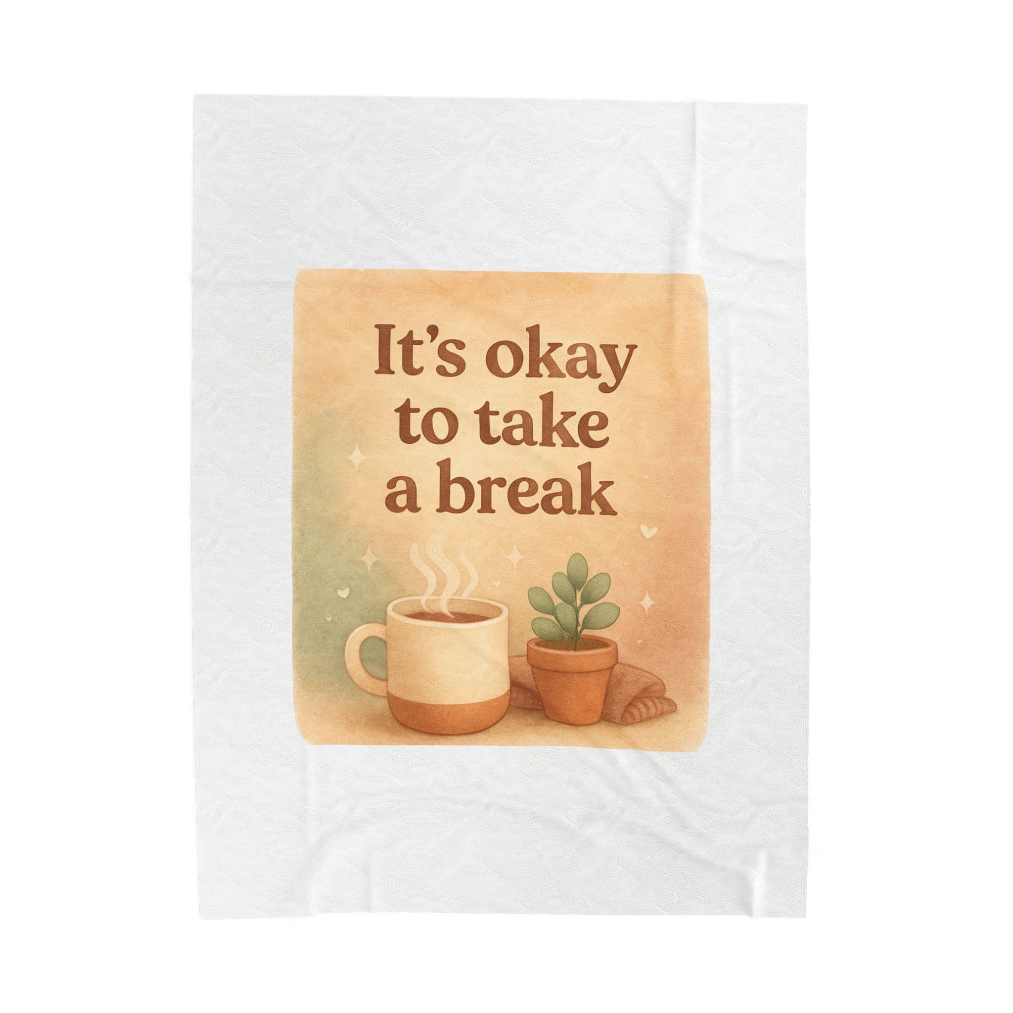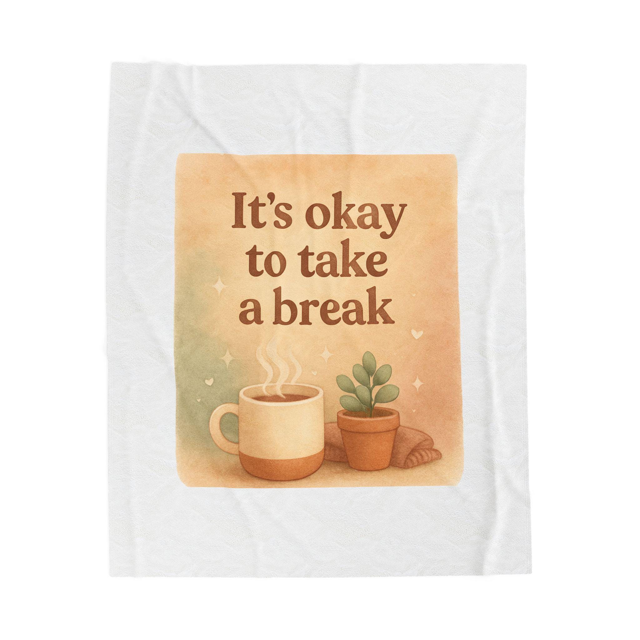 It's Okay to Take a Break Velveteen Plush Blanket | Coffee Succulent Cozy Reminder