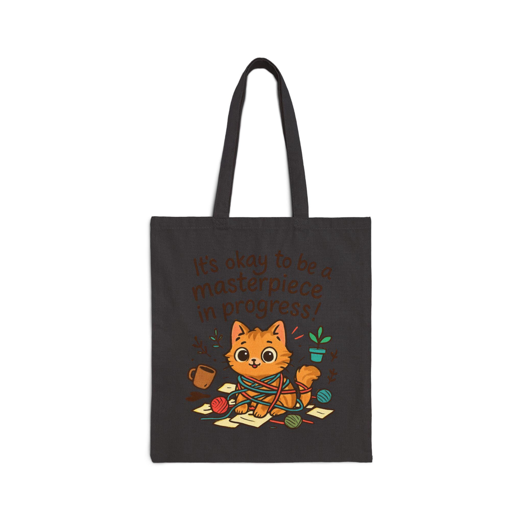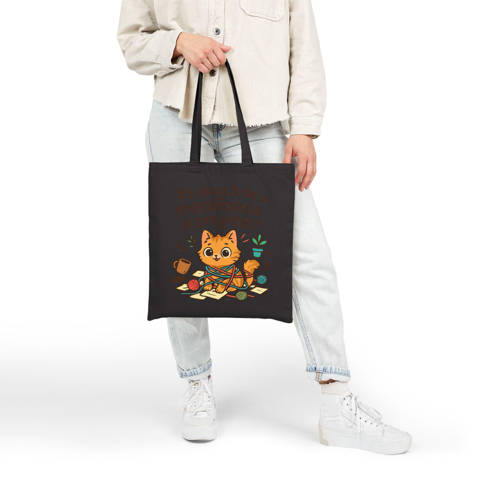 Cat Masterpiece in Progress Cotton Canvas Tote Bag | Sustainable