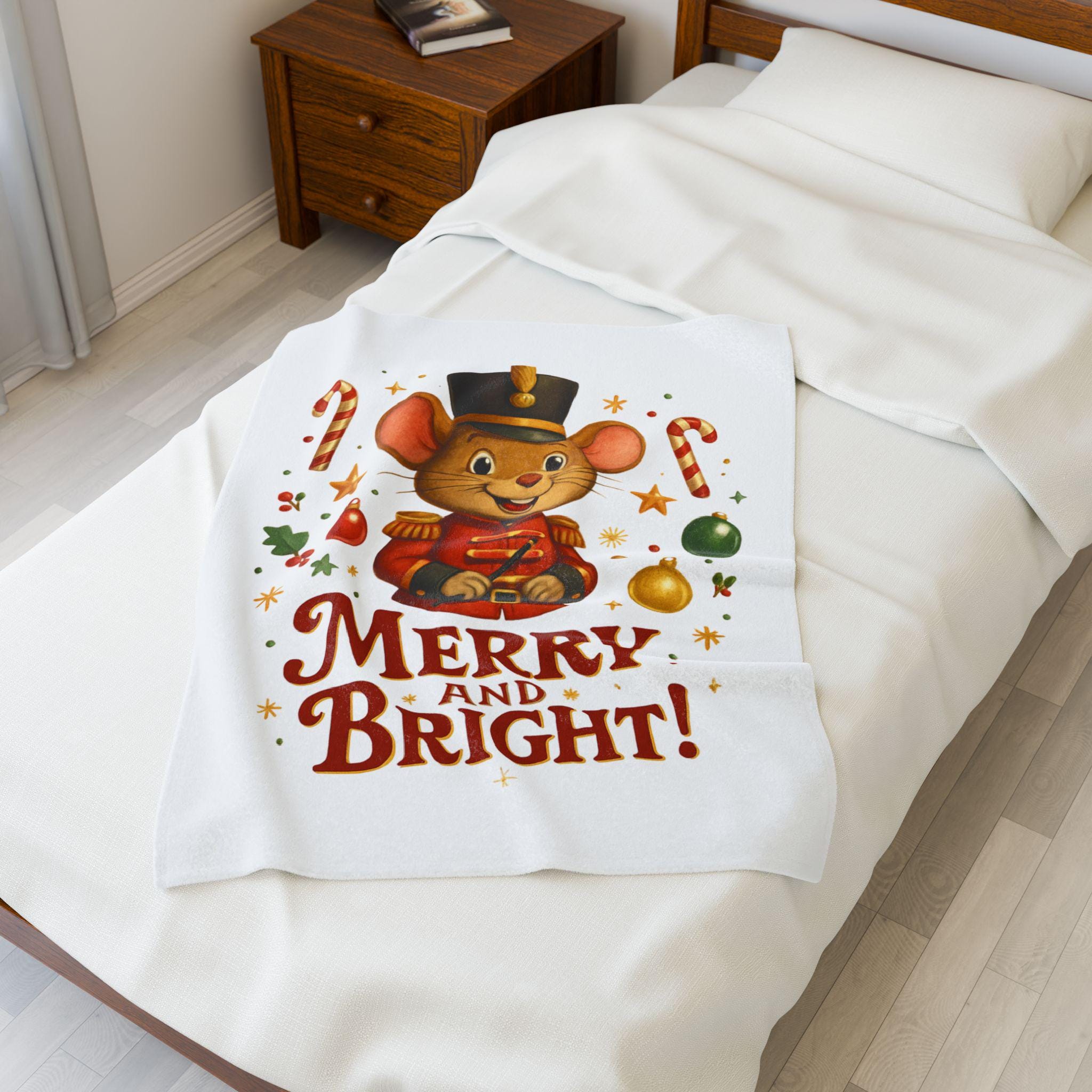 Merry and Bright Nutcracker Mouse Blanket | Christmas Holiday Velveteen Plush