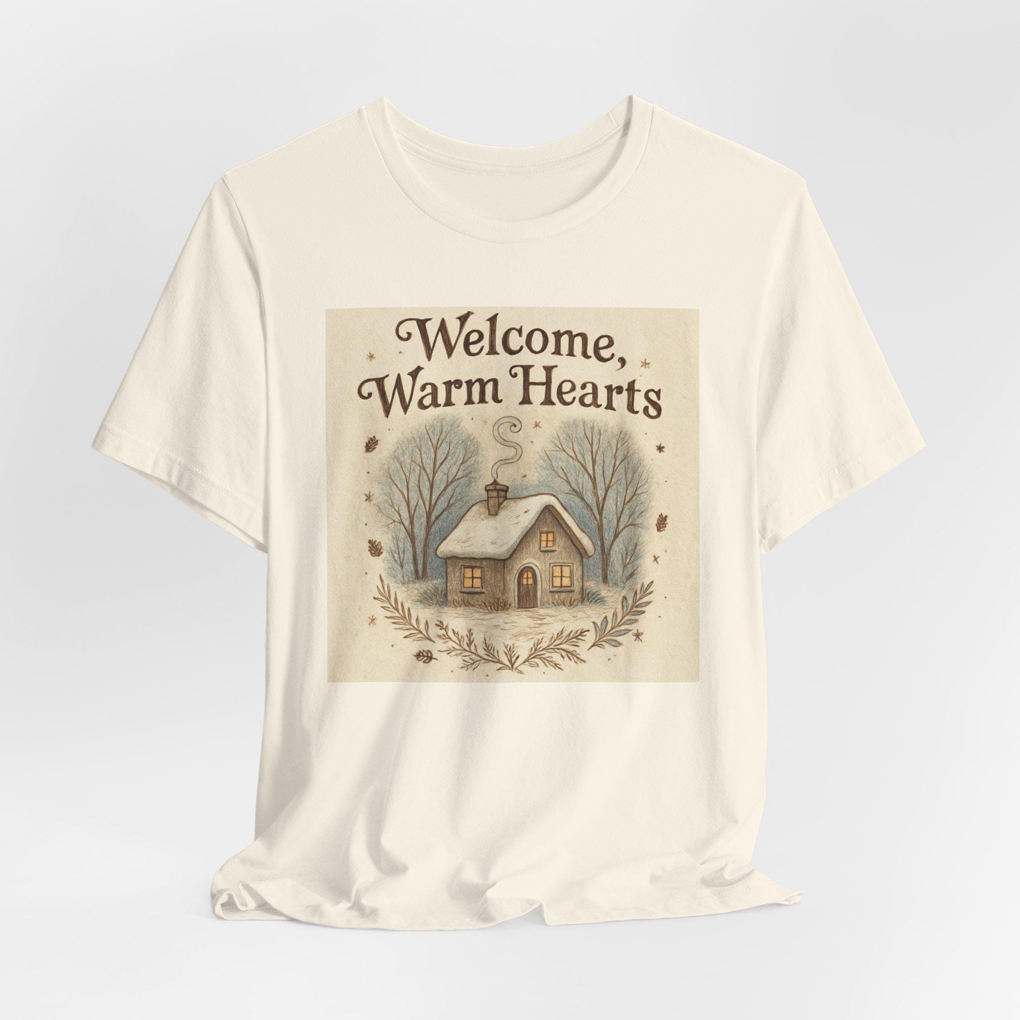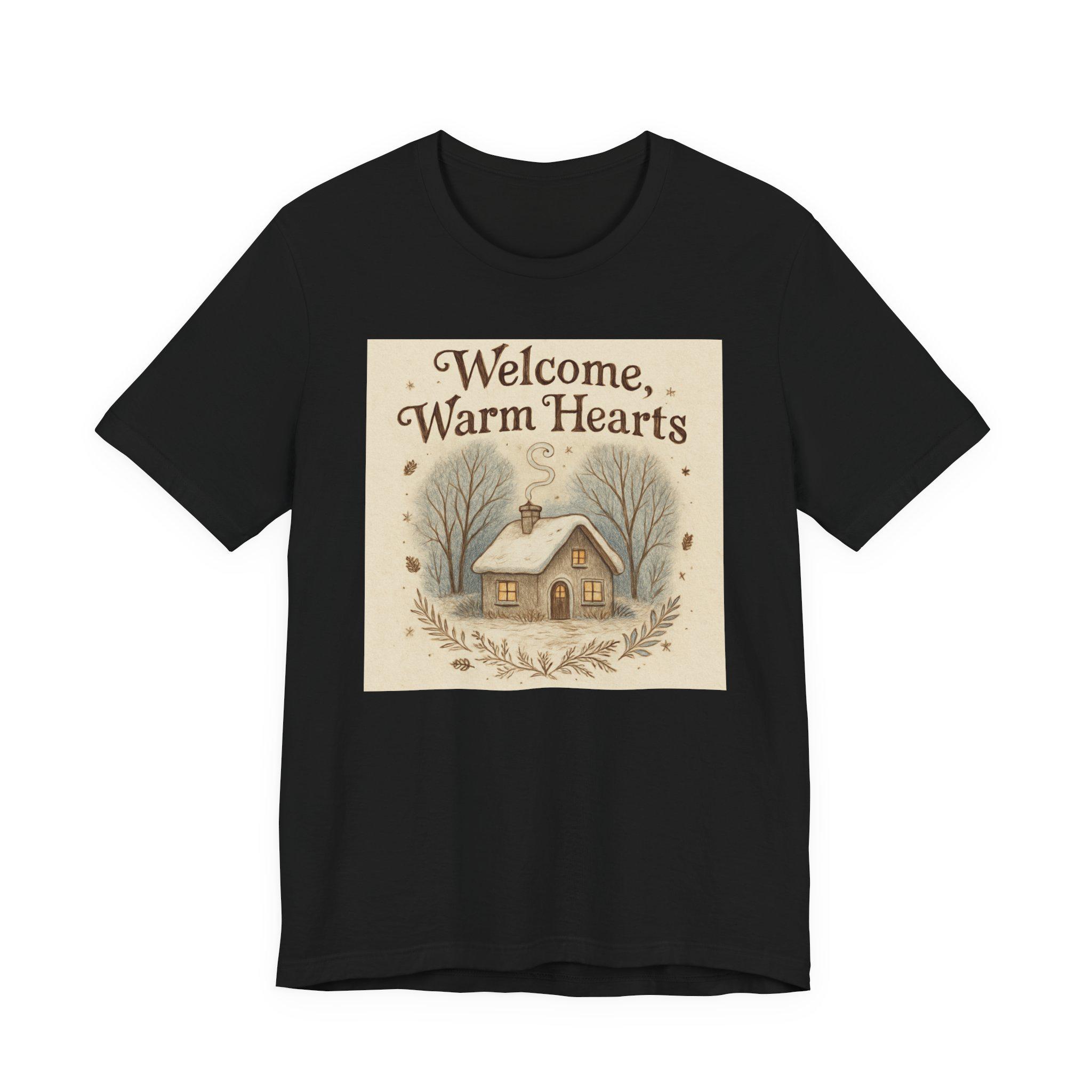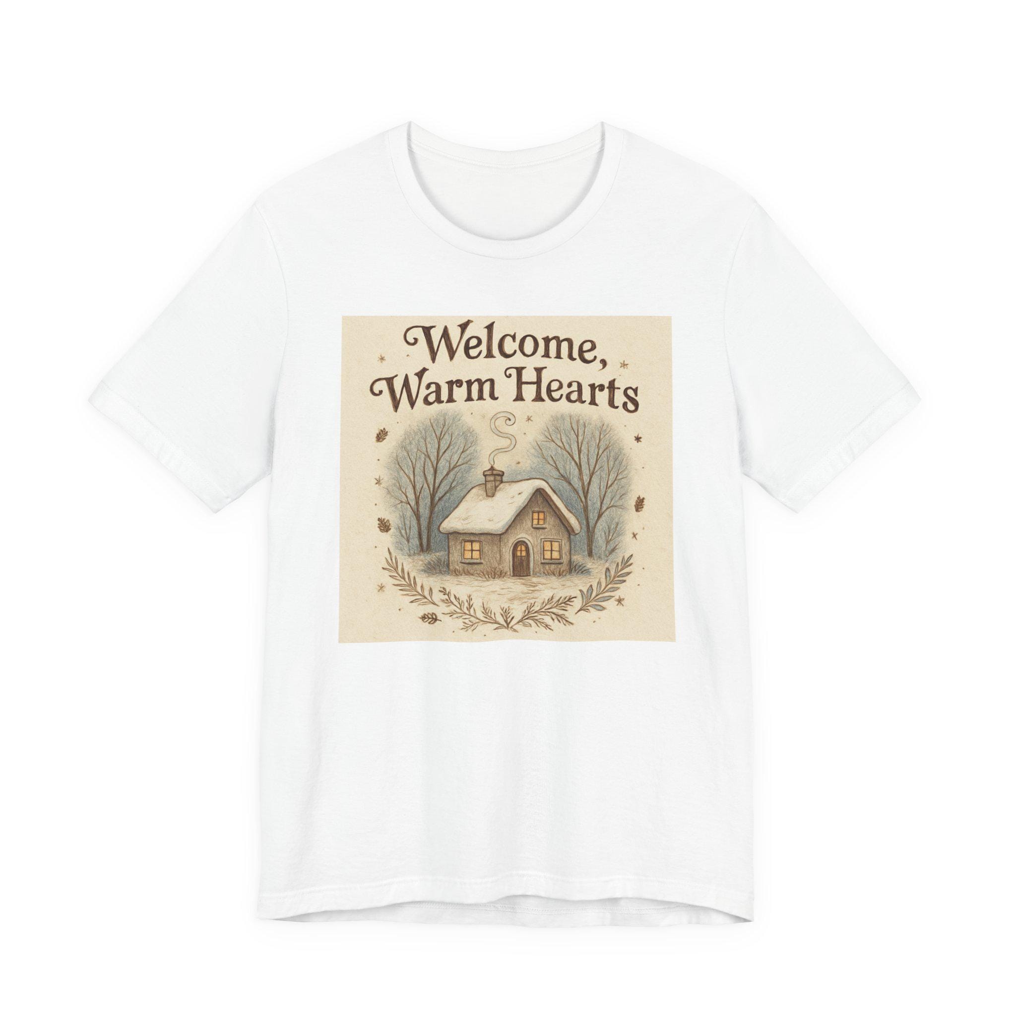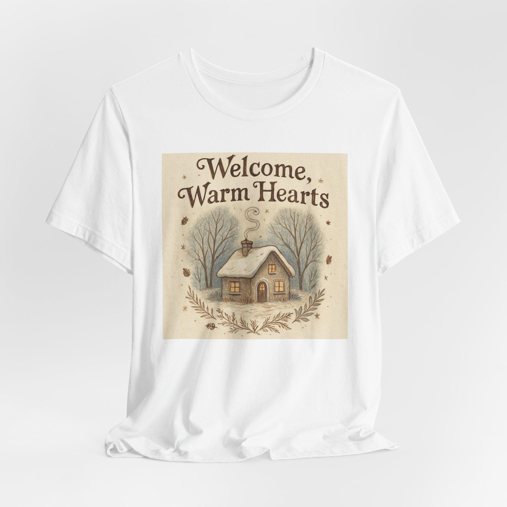 Welcome Warm Hearts cottage illustration T-Shirt | cozy winter home design