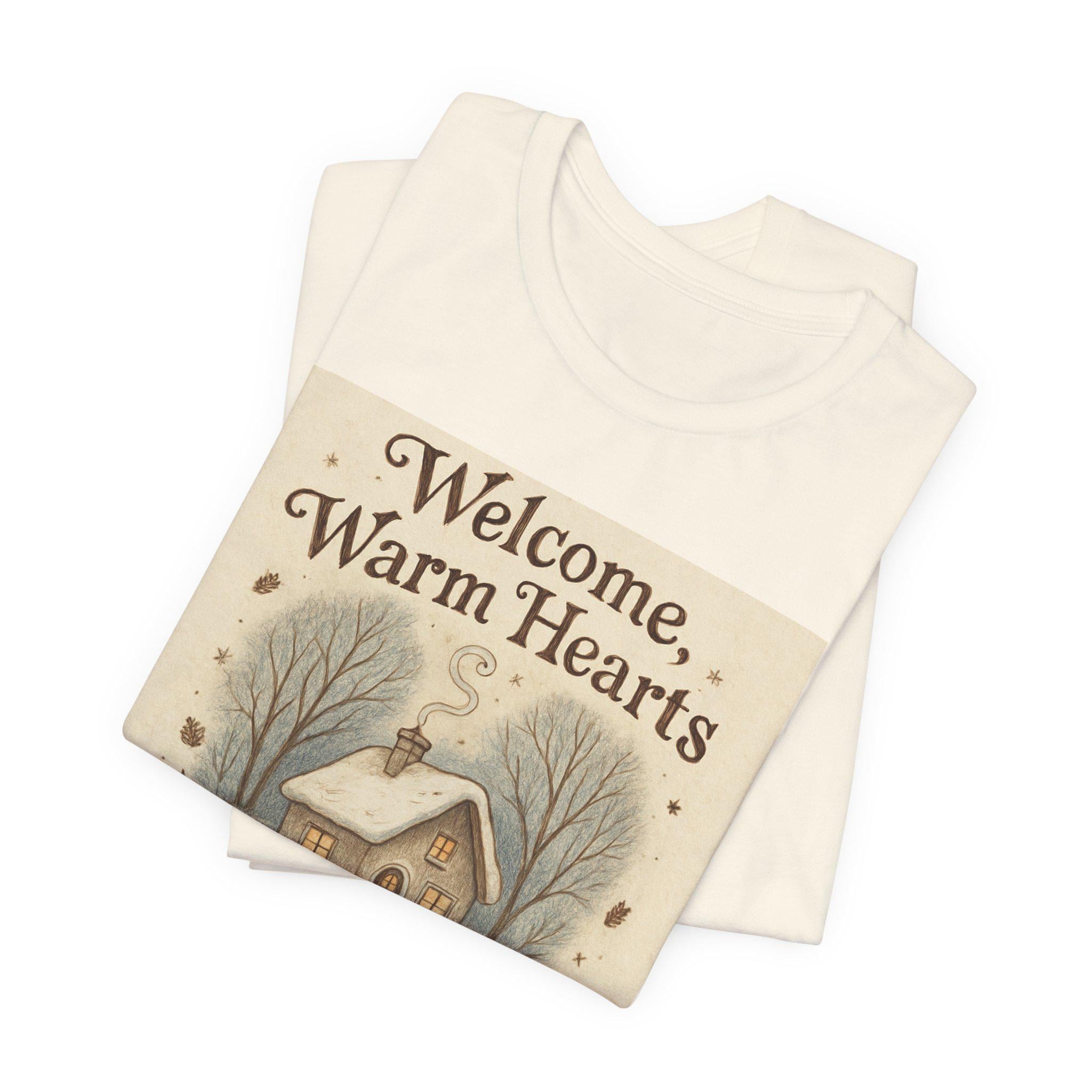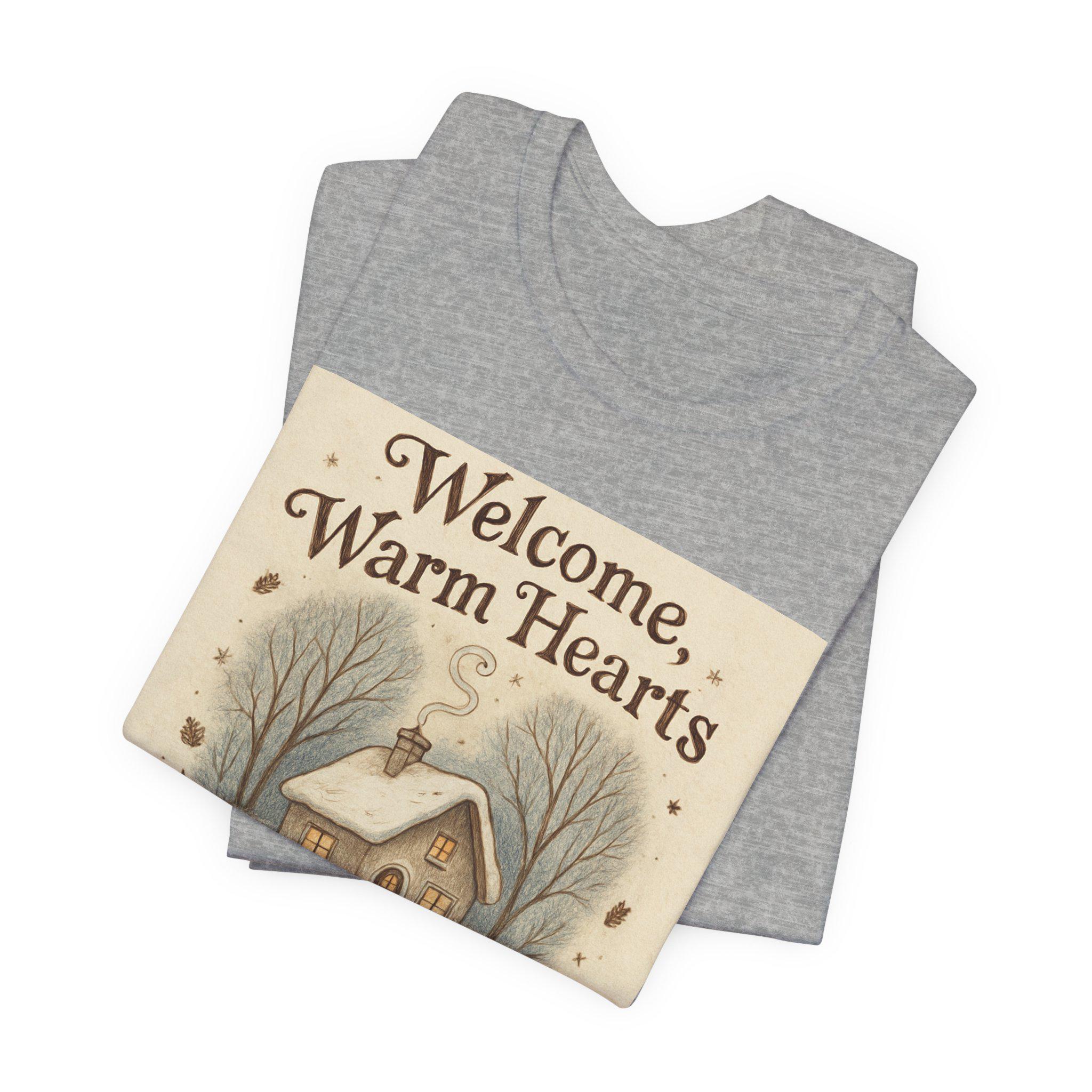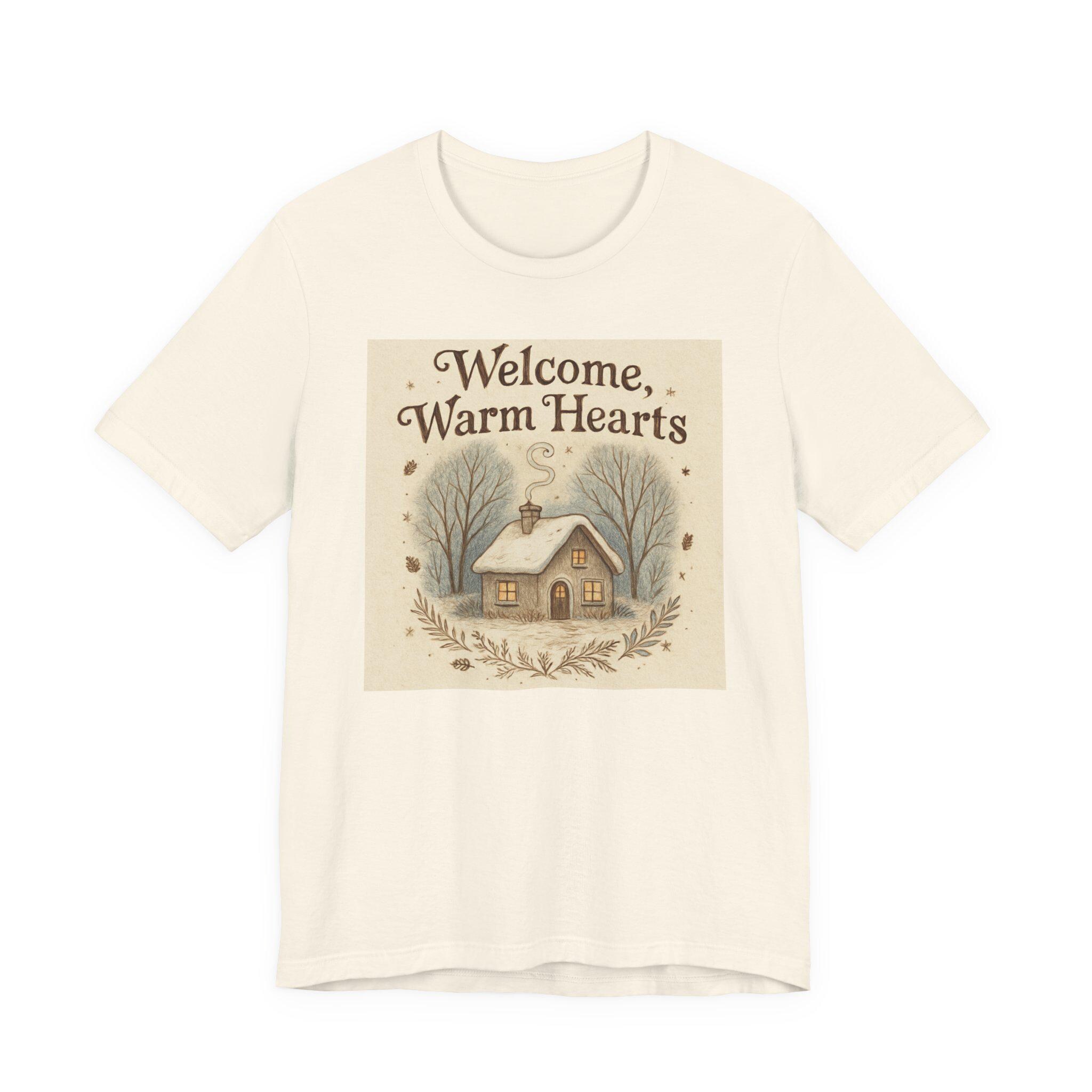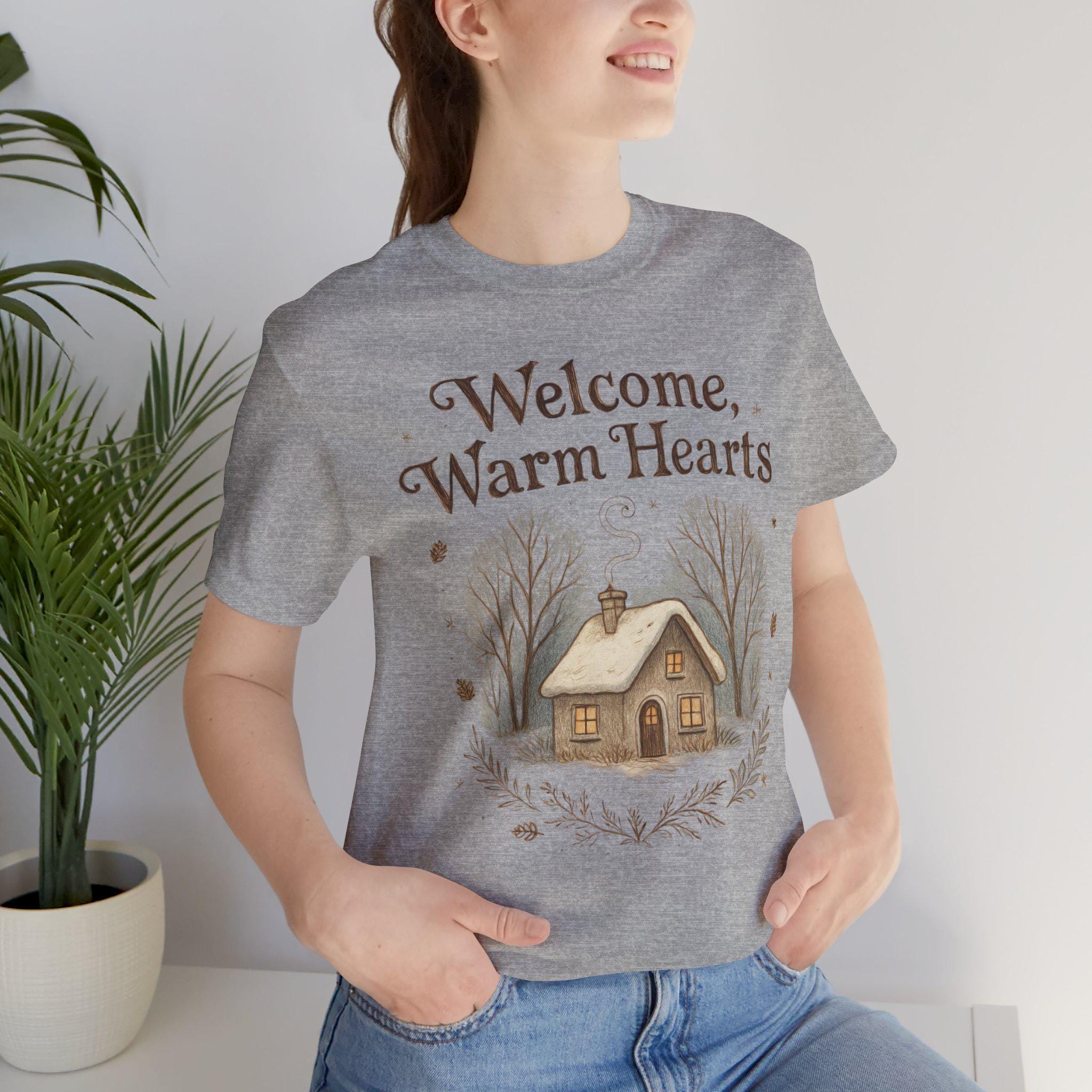 Welcome Warm Hearts cottage illustration T-Shirt | cozy winter home design