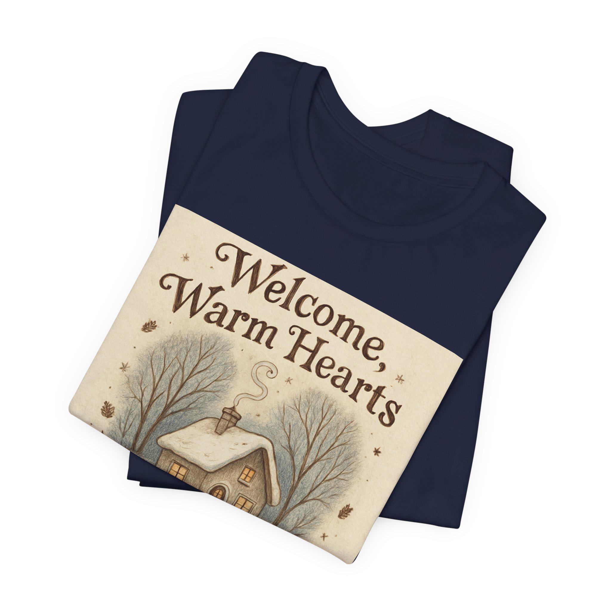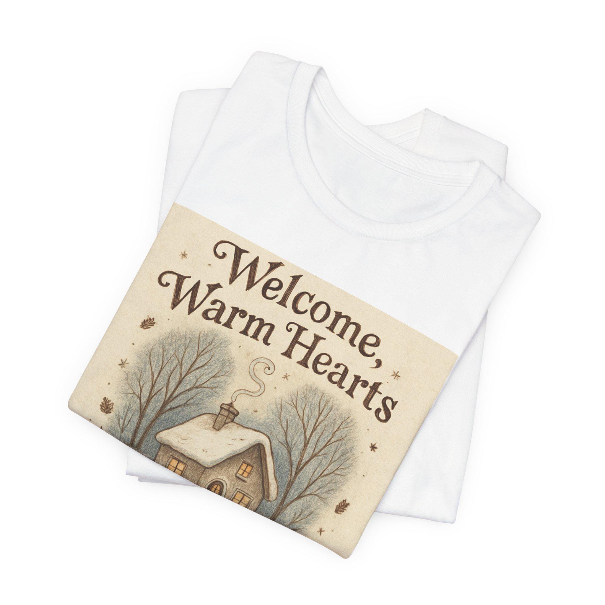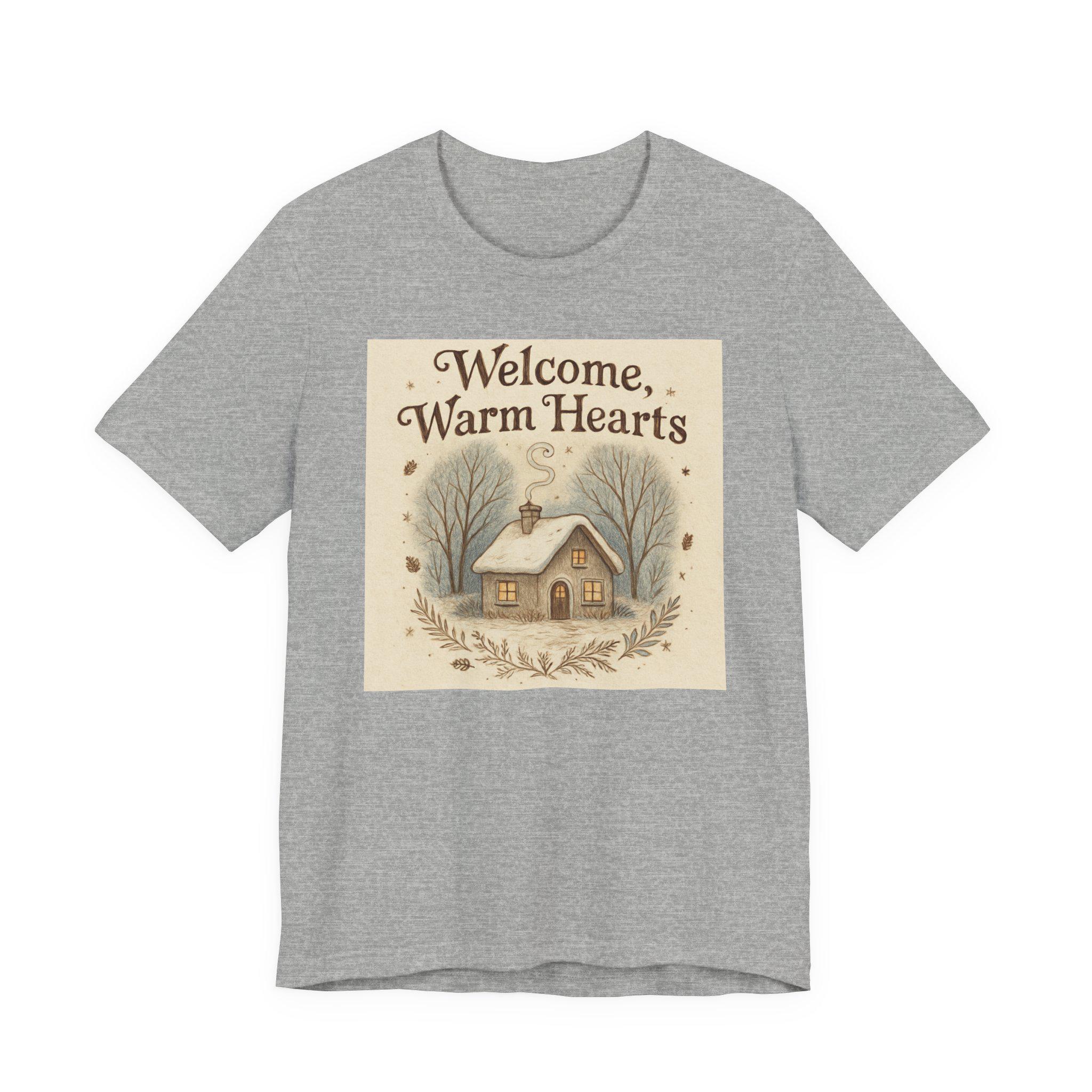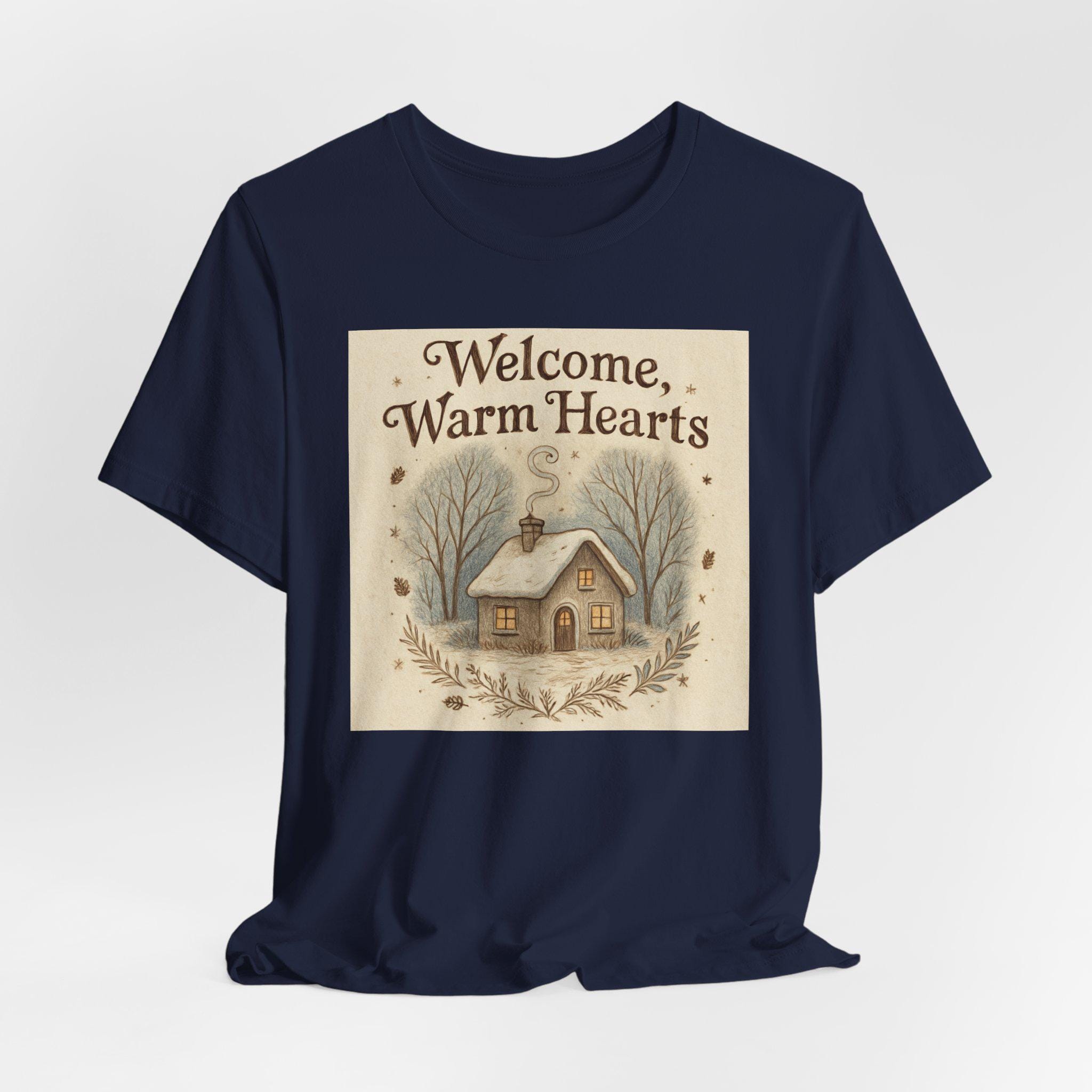 Welcome Warm Hearts cottage illustration T-Shirt | cozy winter home design