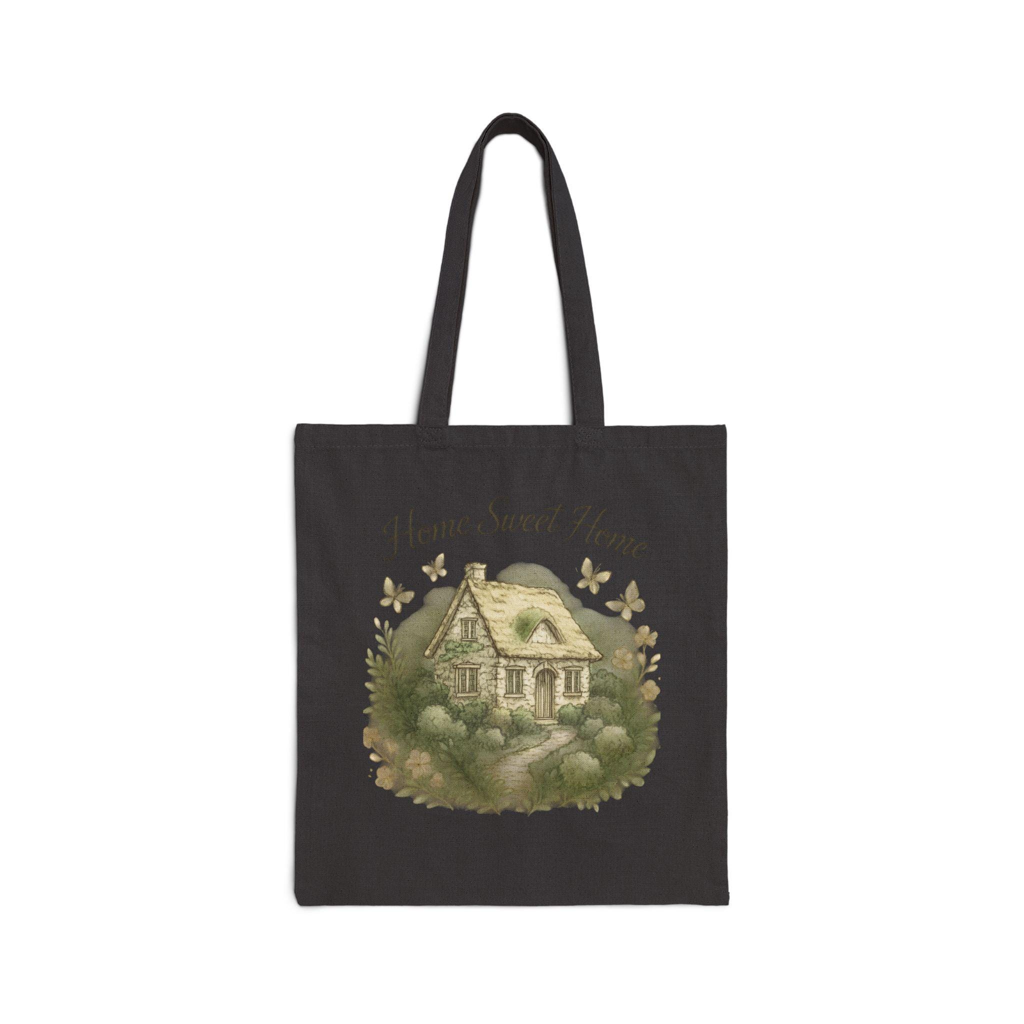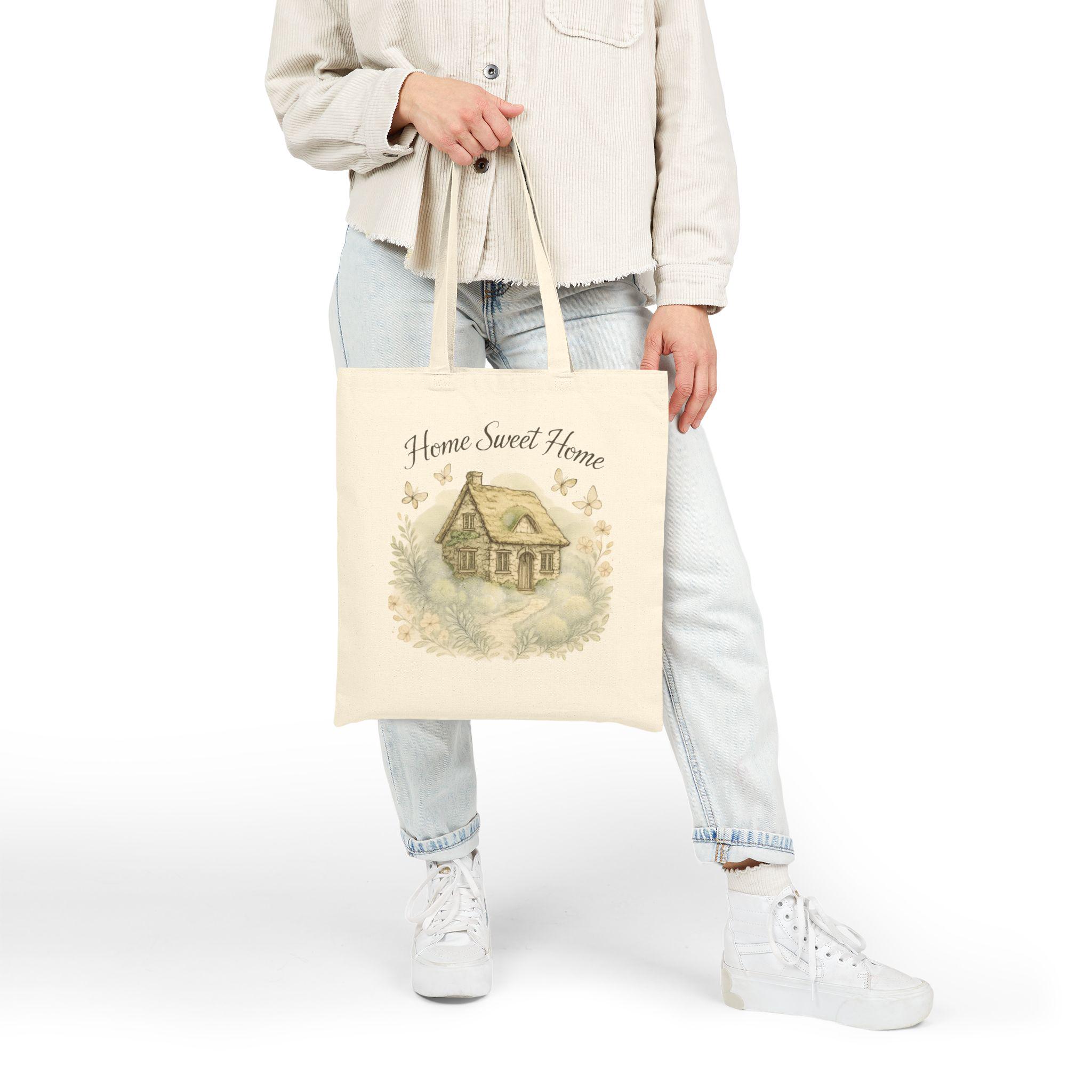 Home Sweet Home cottage illustration Tote Bag | vintage farmhouse, neutral canvas