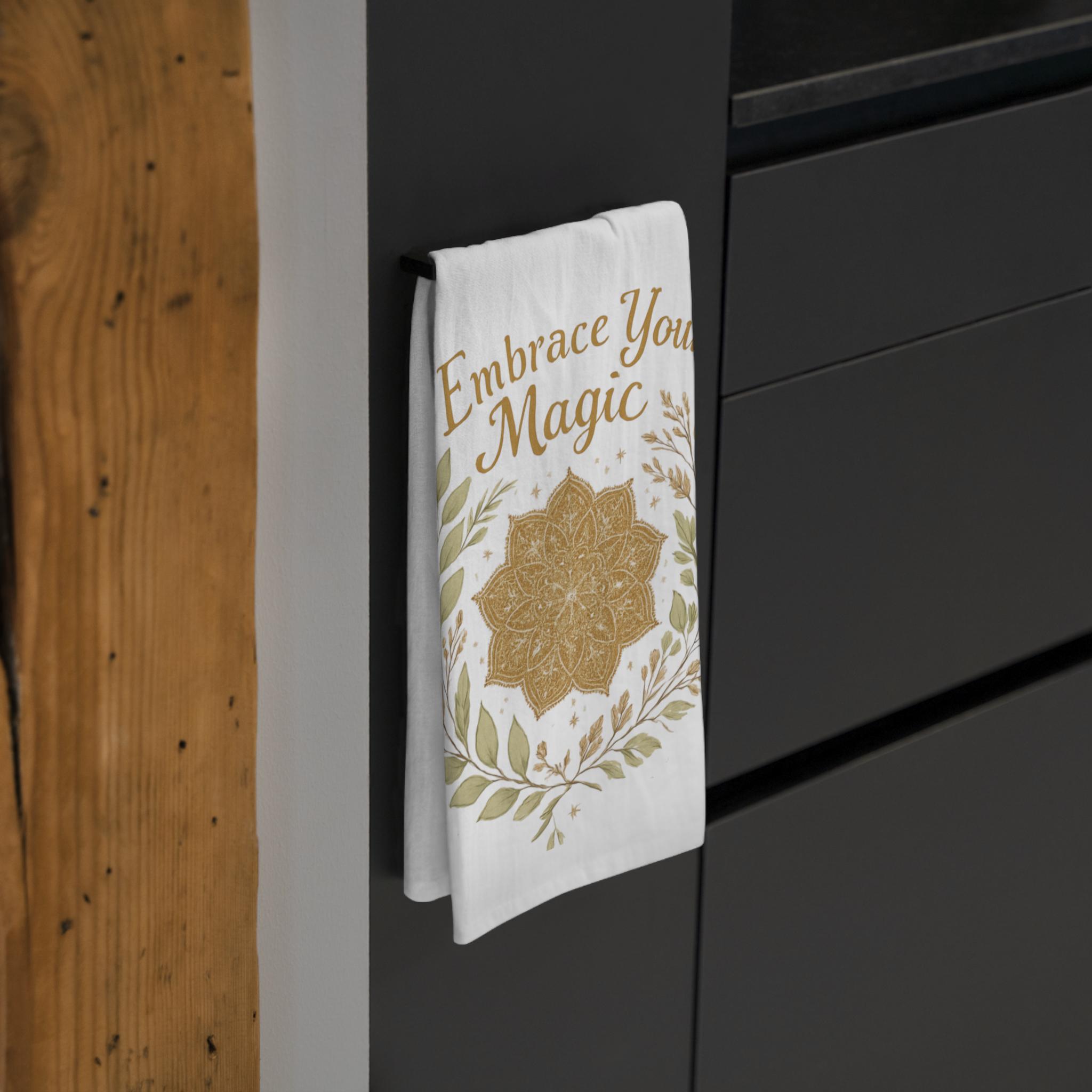 Embrace Your Magic Tea Towel Botanical Mandala Kitchen Towel