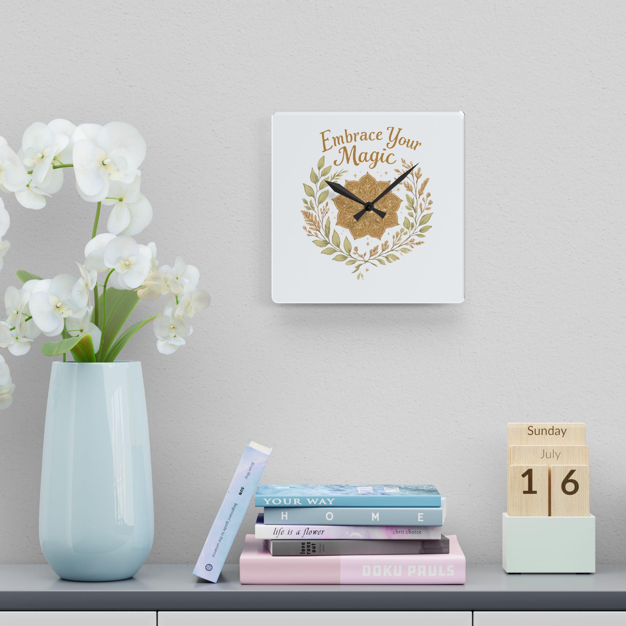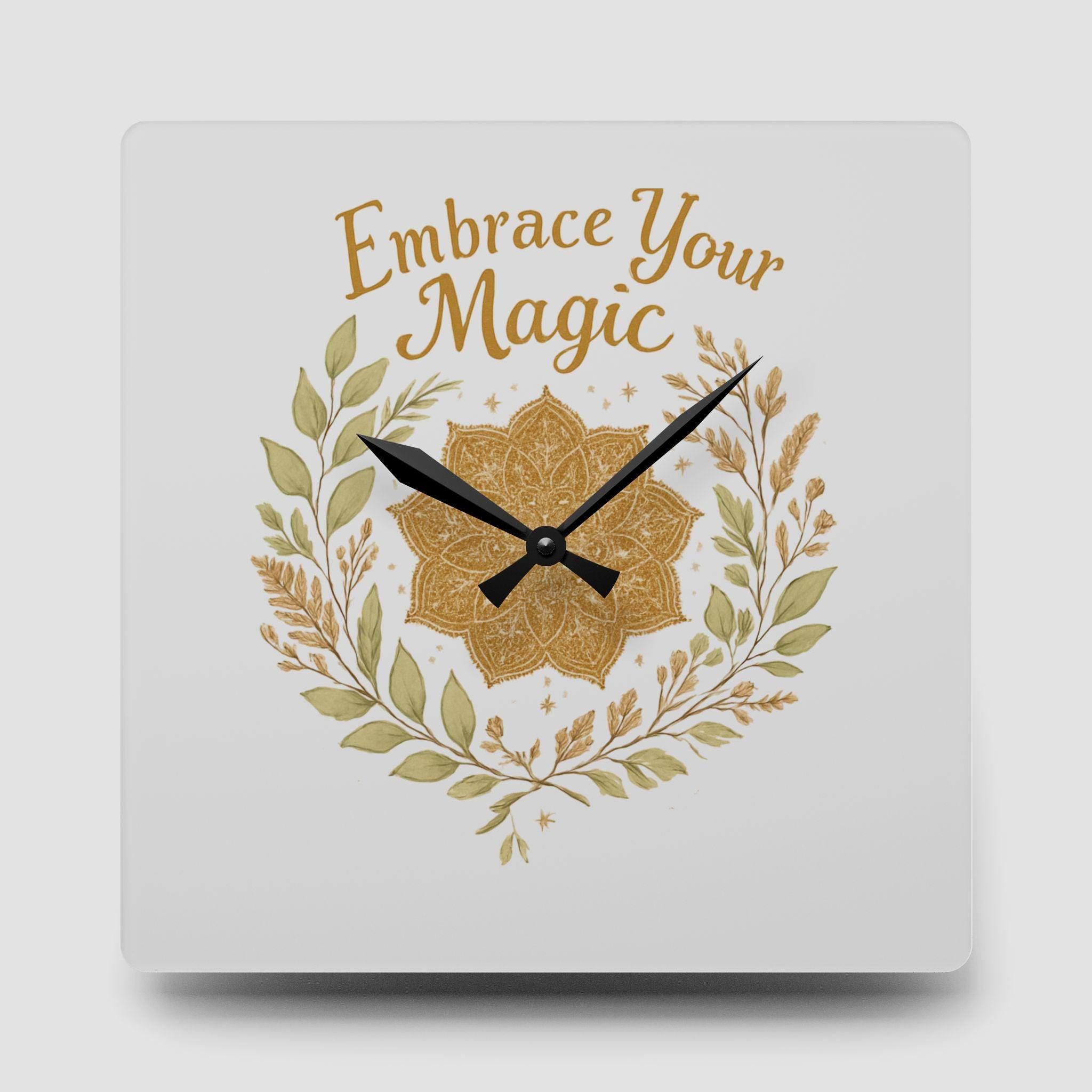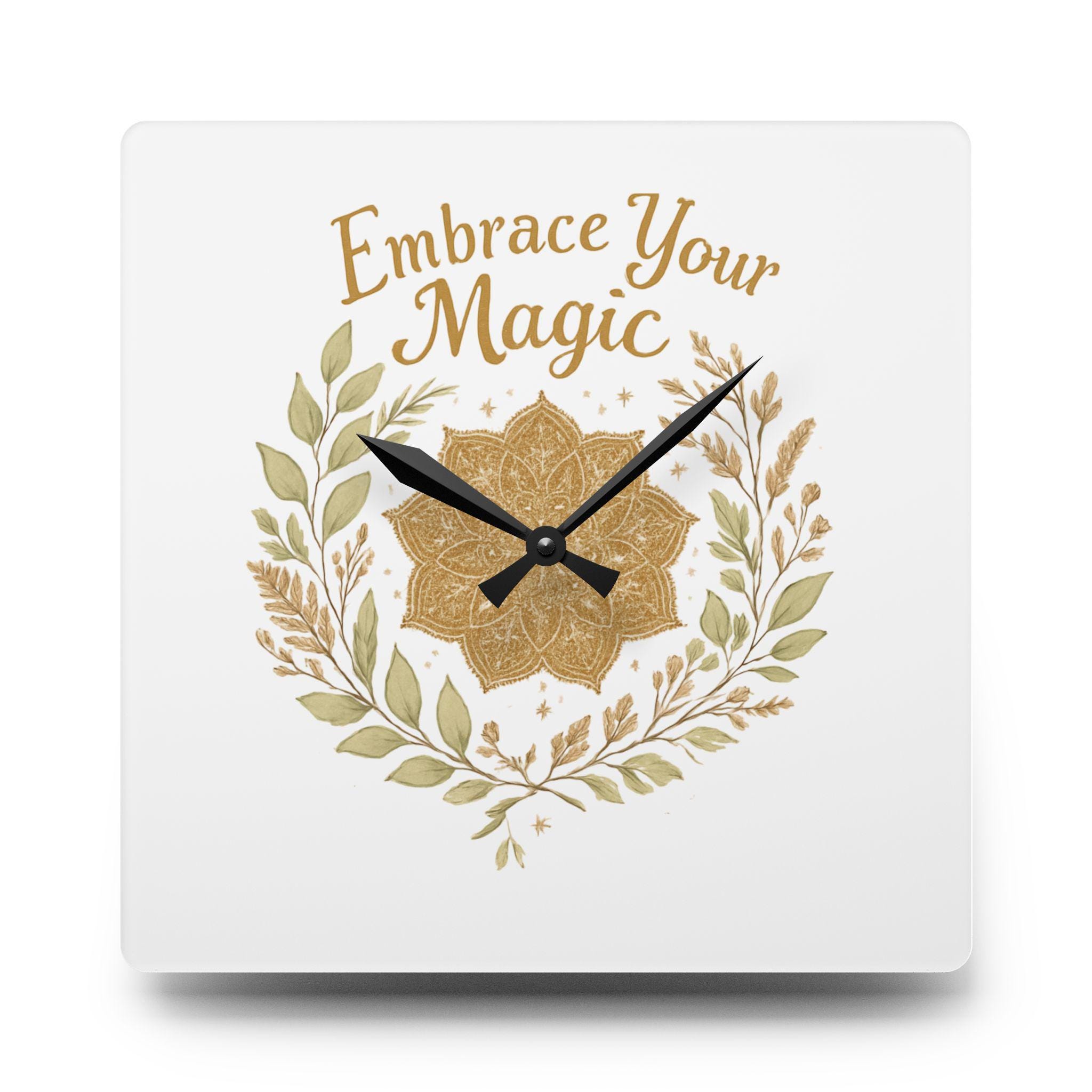 Embrace Your Magic Acrylic Wall Clock Boho Floral Mandala Decor
