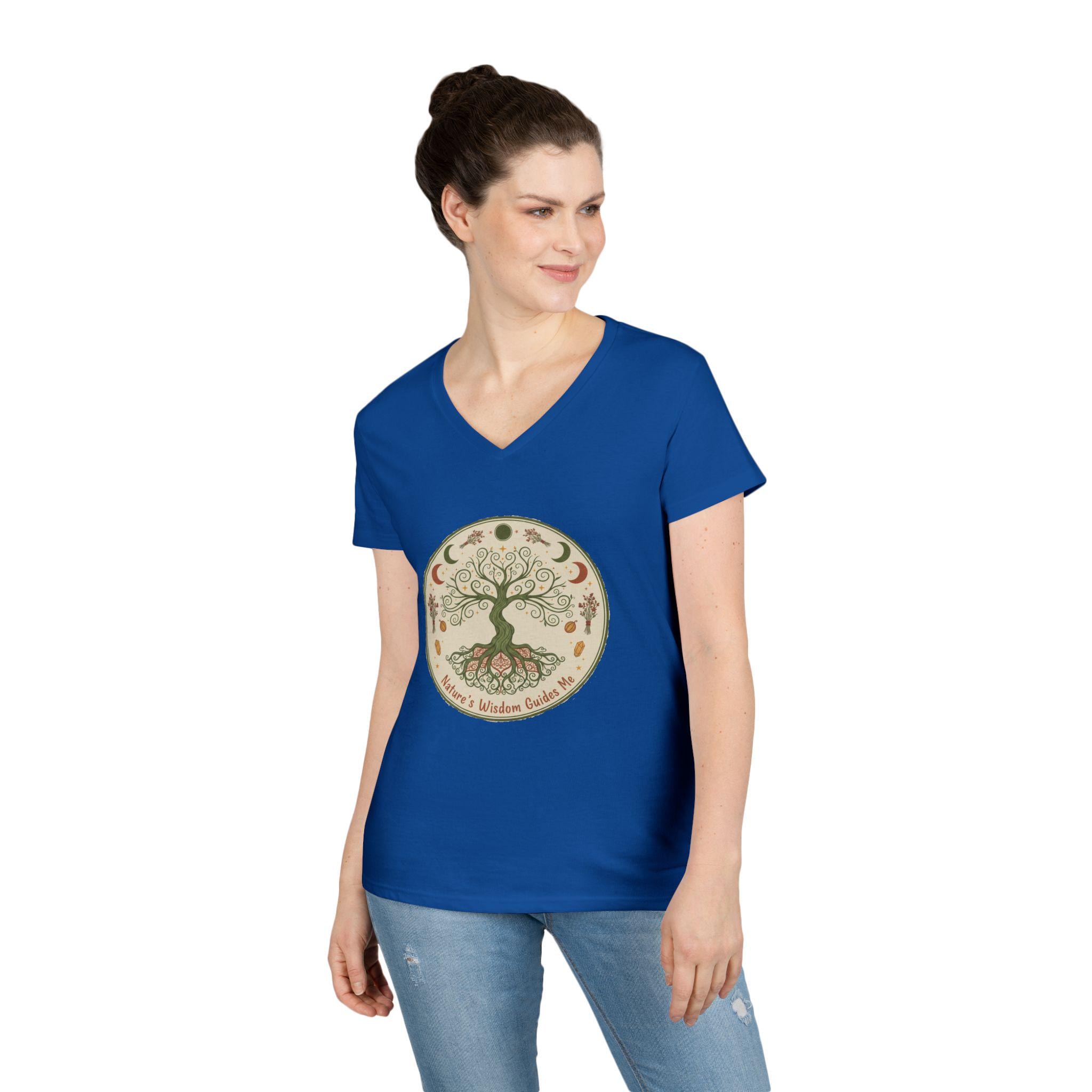 Celtic Tree of Life design V-Neck T-Shirt | Earthy Botanical Illustration