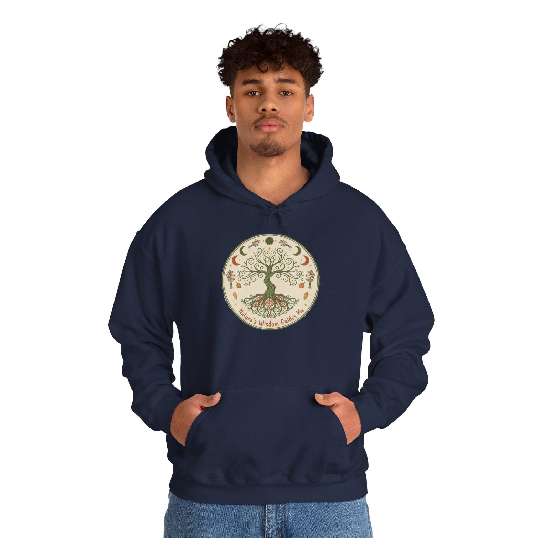 This Tree of Life hoodie feels like pulling on a quiet forest walk. The vintage botanical circle print sits softly against the fabric, like a worn field guide illustration that’s traveled with you to campfires and early-morning trails. It settles around your shoulders with steady warmth, pockets ready for chilled hands or a small notebook, and a hood that tucks in wind and weather. Wear it on slow weekends at the cabin, during fall hikes beneath amber leaves, or for evenings spent sorting seeds and sketching roots. The subtle, nature-first design speaks to people who keep a plant journal, pore over bark textures, and collect stories from old trees — clothing that belongs in the same pockets as a thermos and a well-loved map.