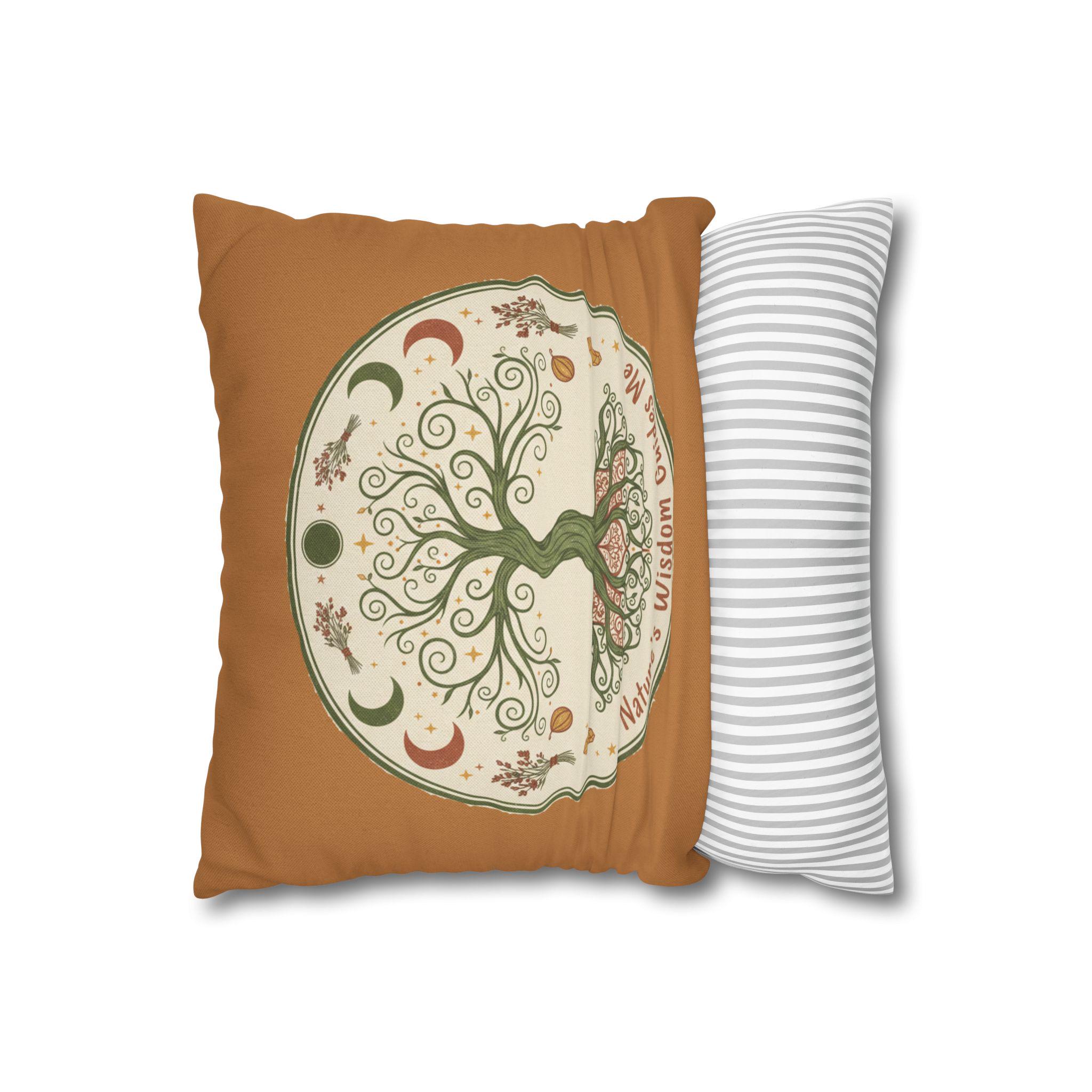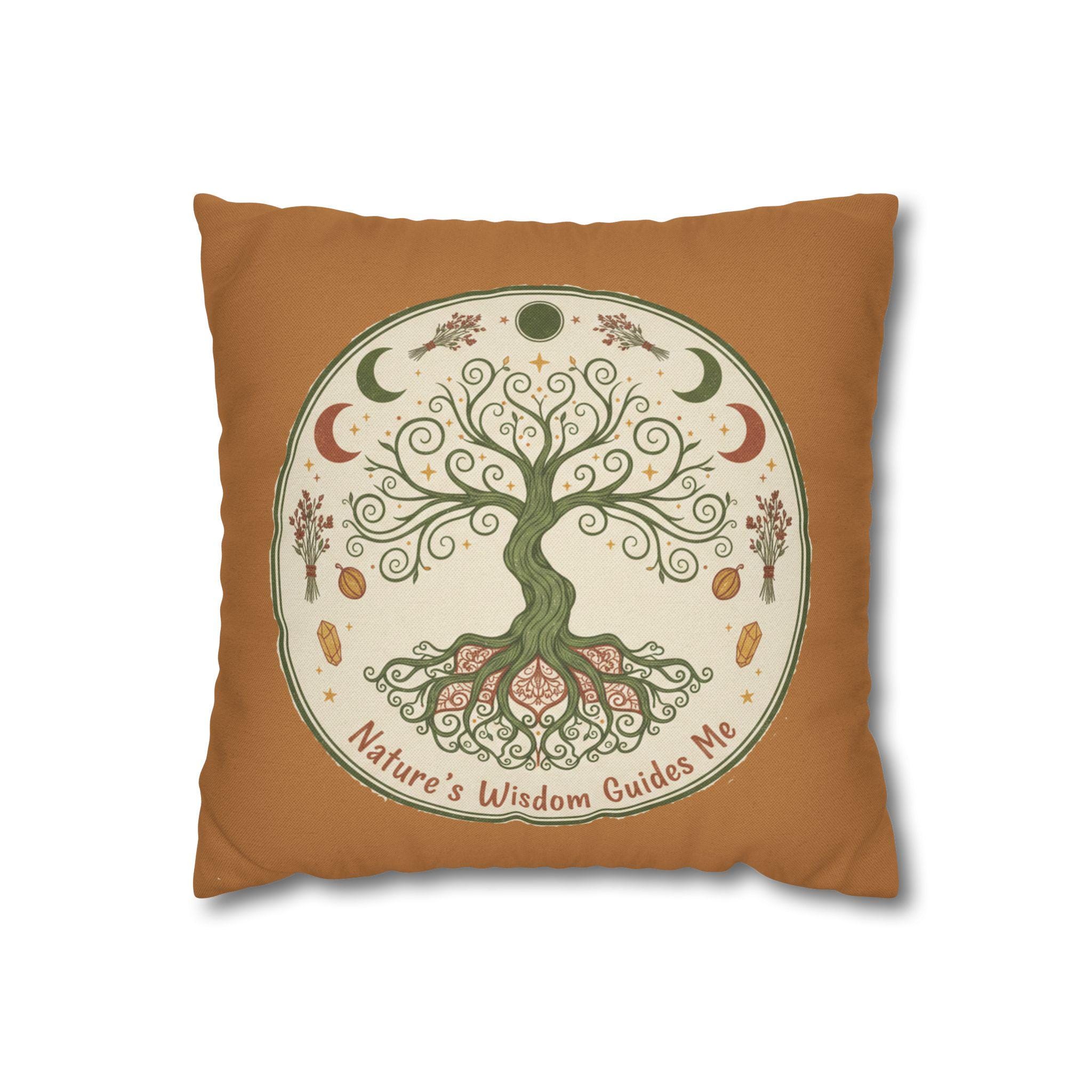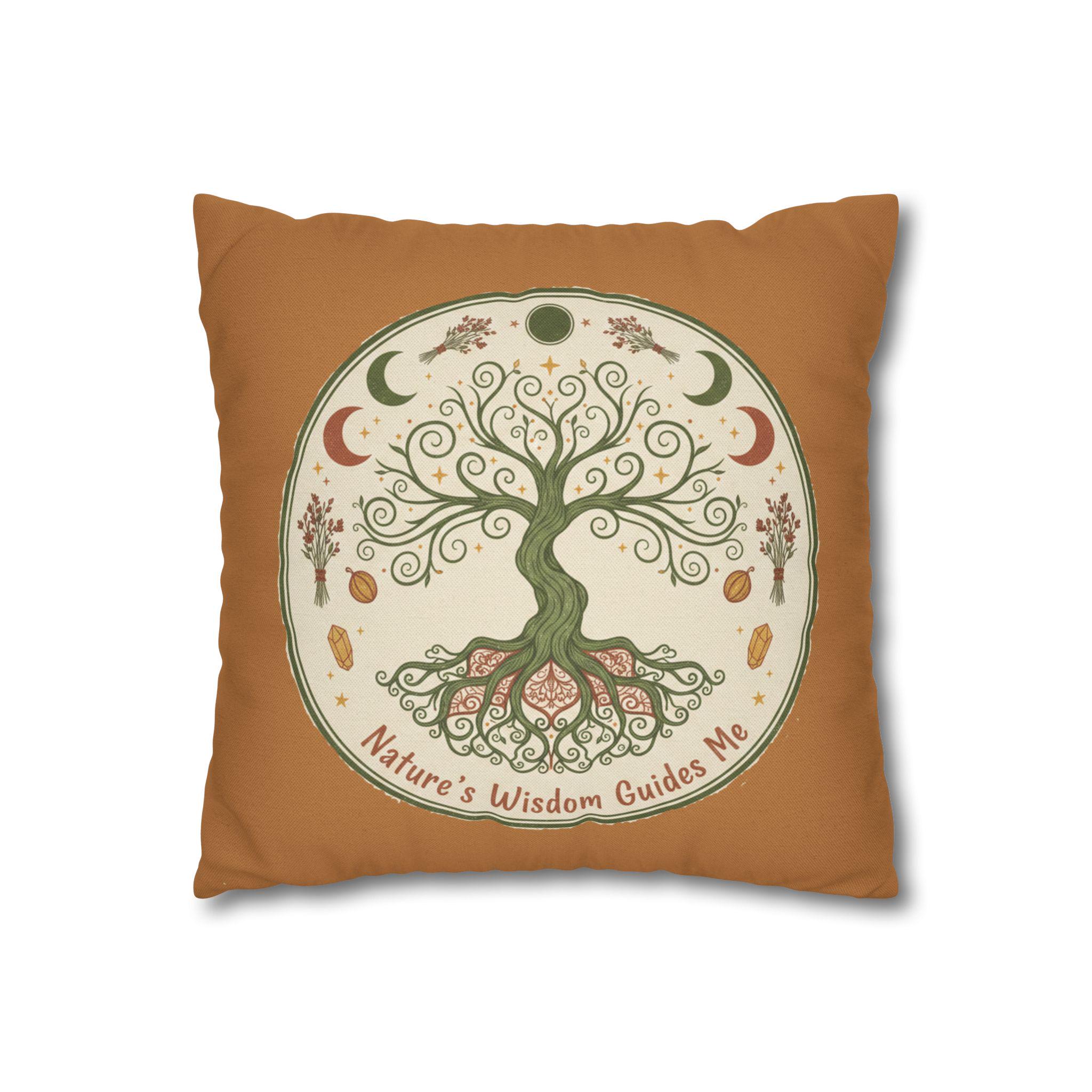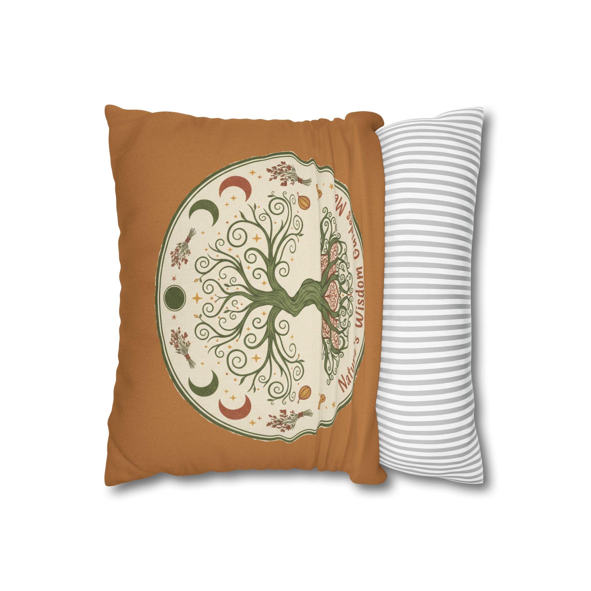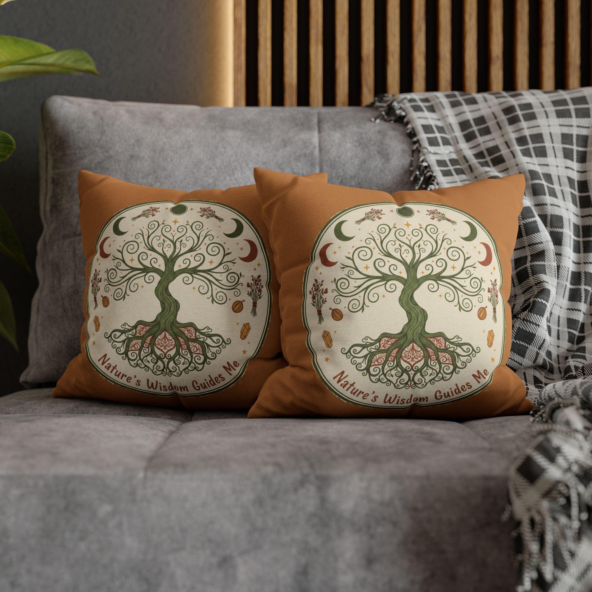 Let this earthy, hand-drawn tree of life bring quiet grounding to your favorite nook. Soft terracotta borders and muted greens create a warm, rustic mood that invites slow mornings, tea-steeped afternoons, and late-night journaling by lamplight. The double-sided print shows the swirling roots and crescent moons in delicate detail, so the design reads beautifully whether the cushion faces out on a cozy chair or tucks into a reading corner. It pairs naturally with linen throws, woven rugs, and a shelf of well-loved nature guides — a little reminder to breathe, listen, and follow the seasons.